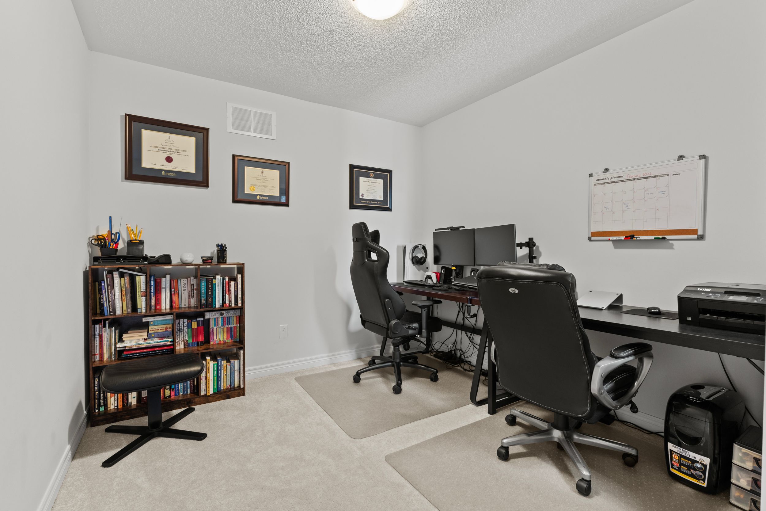 Stunning freehold home offering 4 spacious bedrooms and 3 bathrooms with approximately 1,933 sq. Ft. Of beautifully finished living space. This sought-after mary croft masterpiece (monterey model)showcases premium upgrades throughout, including hardwood flooring on the main level and second-floor hallways, elegant quartz countertops in the kitchen and bathrooms, and smooth ceiling son the main floor. The open-concept family room features a cozy gas fireplace, while 9-foot ceilings on the main level enhance the bright and airy feel of the home. A striking oak staircase with upgraded metal pickets adds architectural interest. The primary ensuite boasts a sleek glass-enclosed shower, completing the home's refined design. Thoughtfully upgraded and meticulously maintained-this exceptional property offers both style and comfort in every detail.