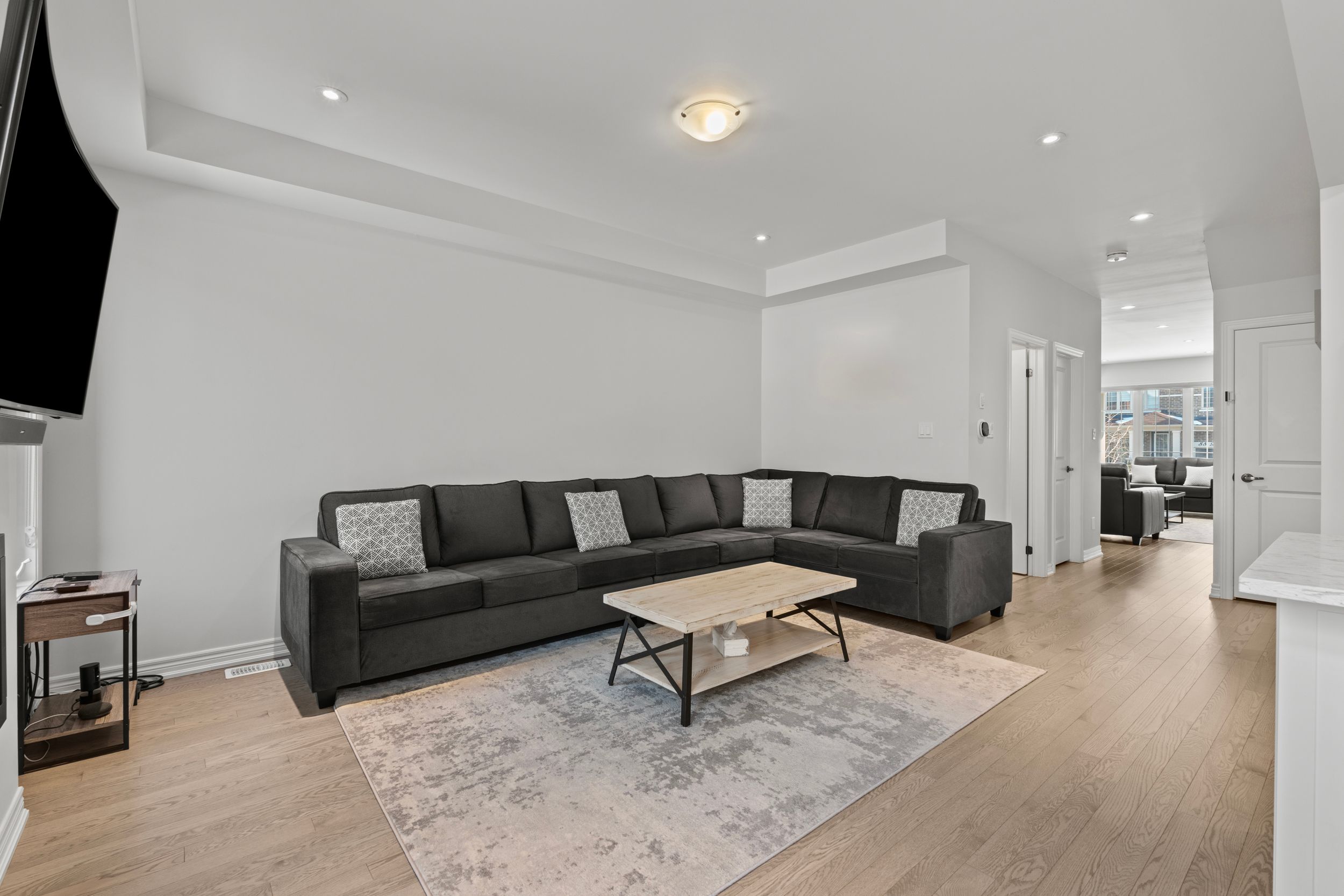 • Open-concept family room with a cozy gas fireplace.