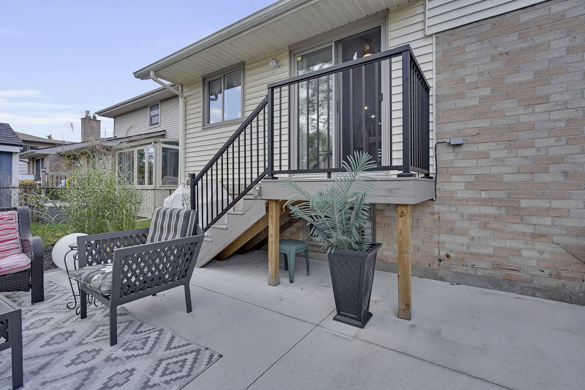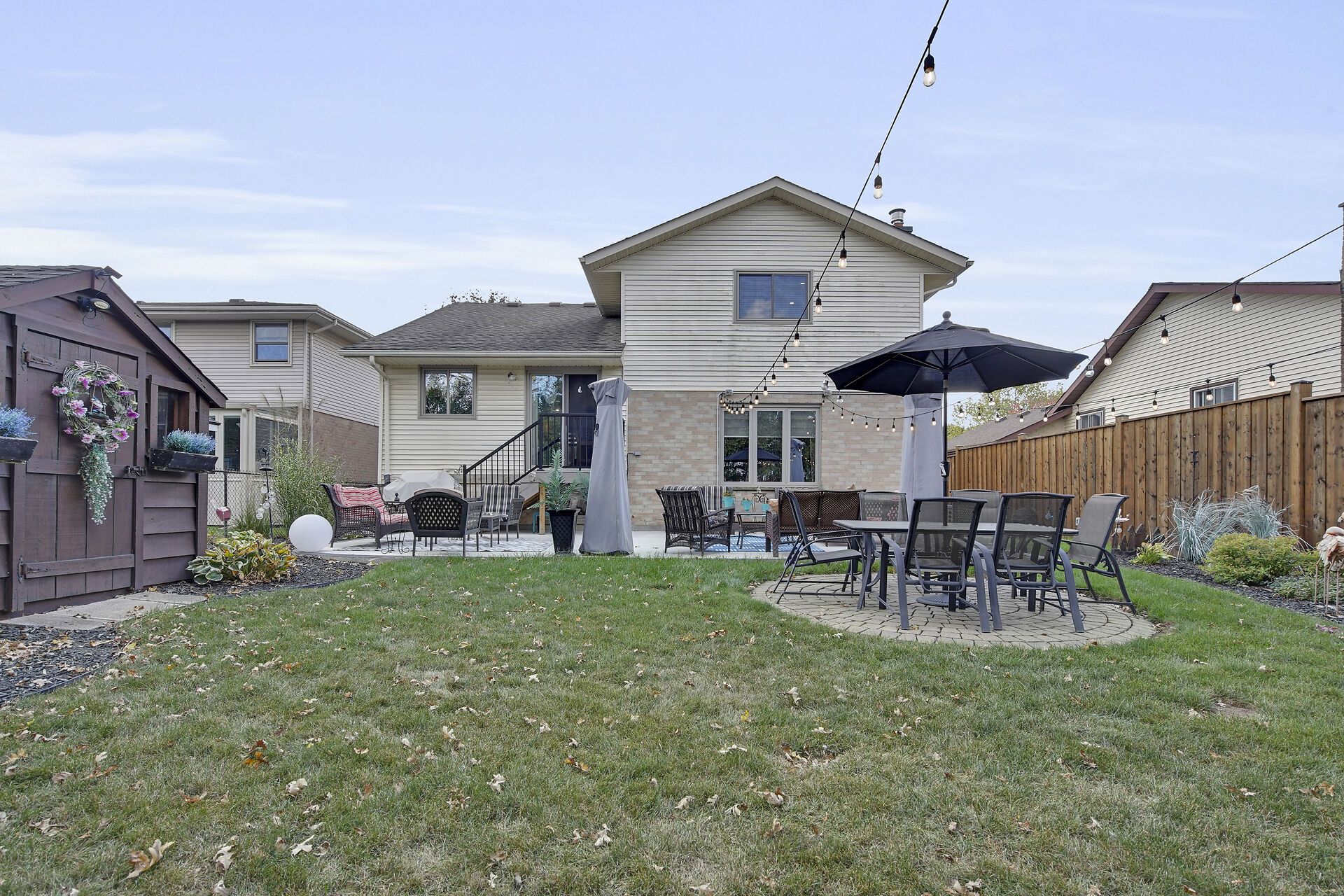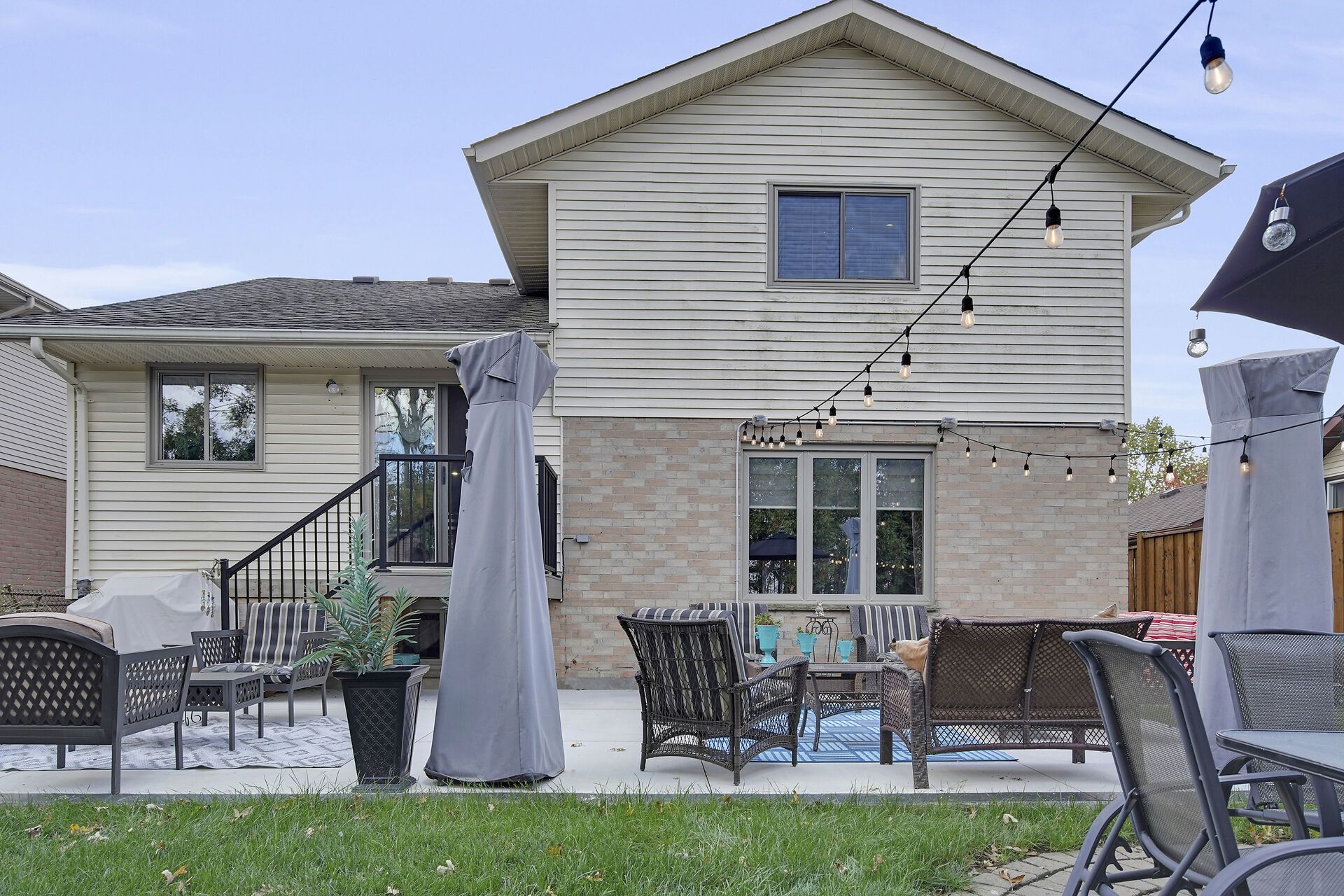 Welcome to this meticulously maintained 5 level side split with double car garage offering the perfect blend of comfort, convenience, and location. Step inside to discover a warm and inviting living space featuring a formal living room and a beautiful dining area perfect for gatherings. The bright eat-in kitchen offers an abundance of cabinetry, newer appliances, and a lovely view overlooking the spacious family room complete with a cozy gas fireplace. The upper level features three generous bedrooms with new flooring, updated closet doors, and a refreshed bathroom with a stylish shower stall. The lower level extends your living space with a second family room, full bathroom, and a versatile office, den, or exercise room. Additional highlights include a two-car garage with newer tile flooring and a high-end wi-fi enabled garage door opener, as well as a pressed concrete driveway. Step outside and enjoy the peace and serenity of the gorgeous backyard, complete with a newer composite deck, large 30x18 concrete patio ideal for entertaining, and a new privacy fence on one side. This home has been freshly painted throughout including all trim and doors and showcases new flooring, carpeting, and updated larger baseboards. Ideally situated on a private crescent in a desirable south-end neighbourhood, you'll appreciate the proximity to excellent schools, shopping, parks, and easy 401 highway access.