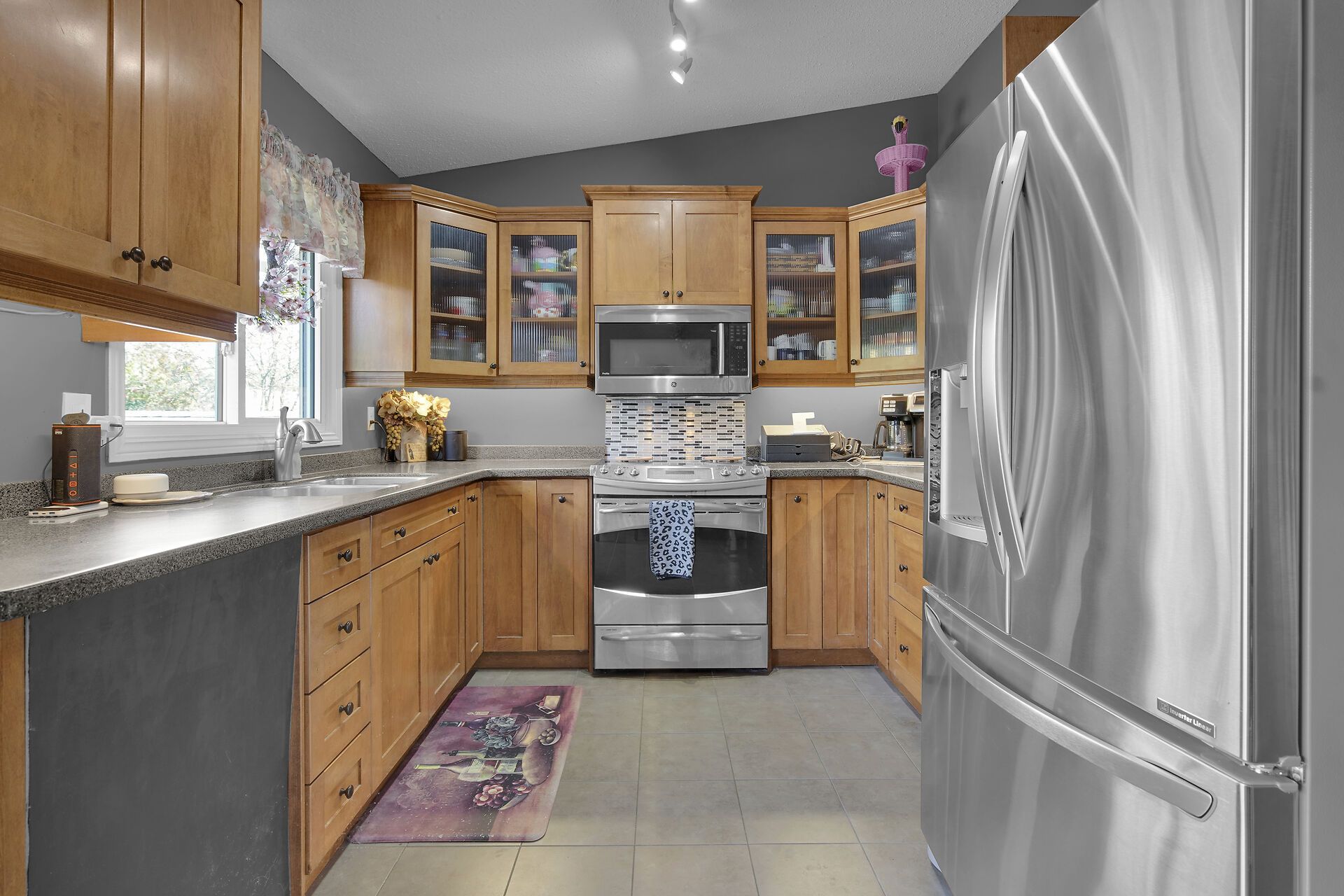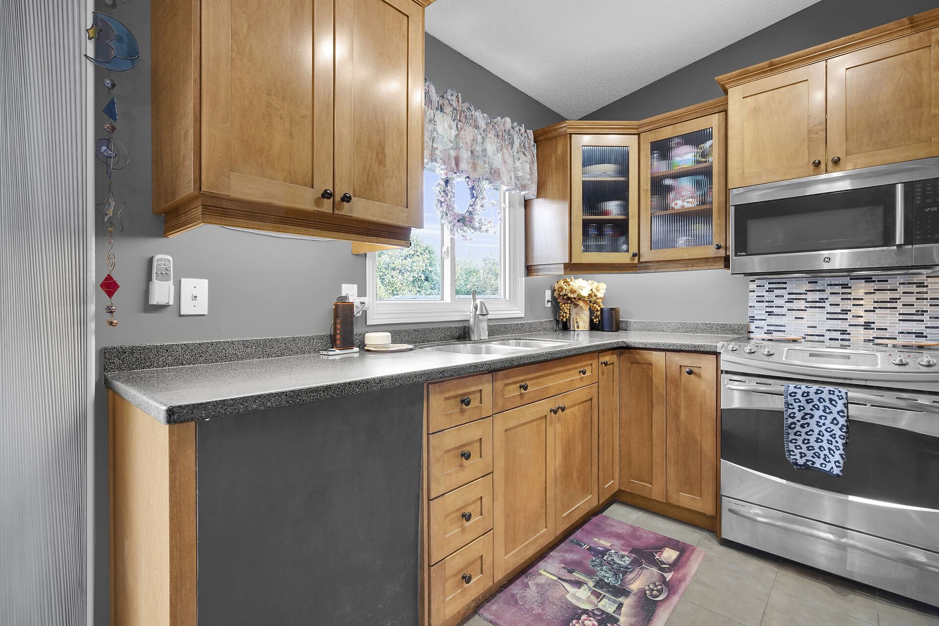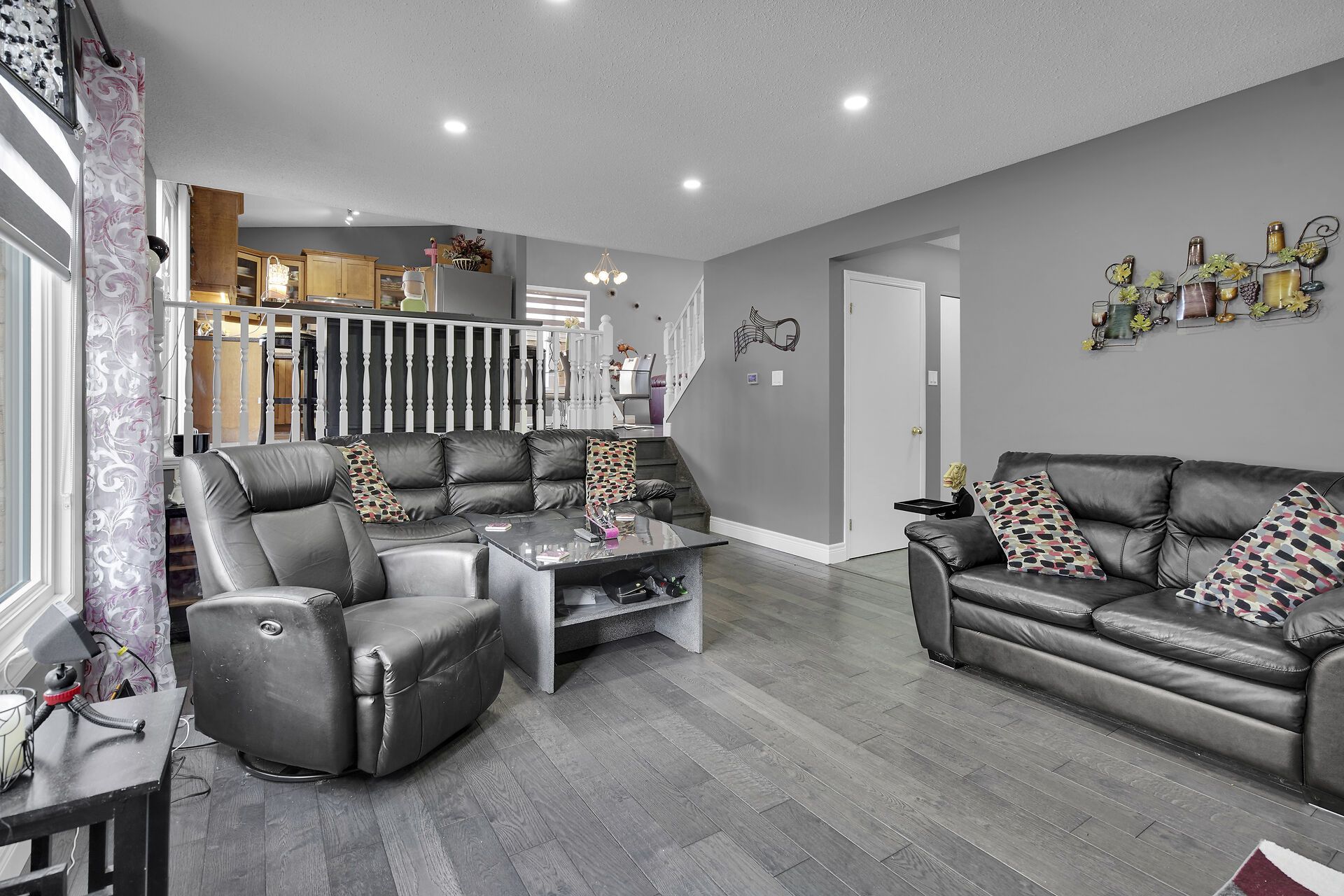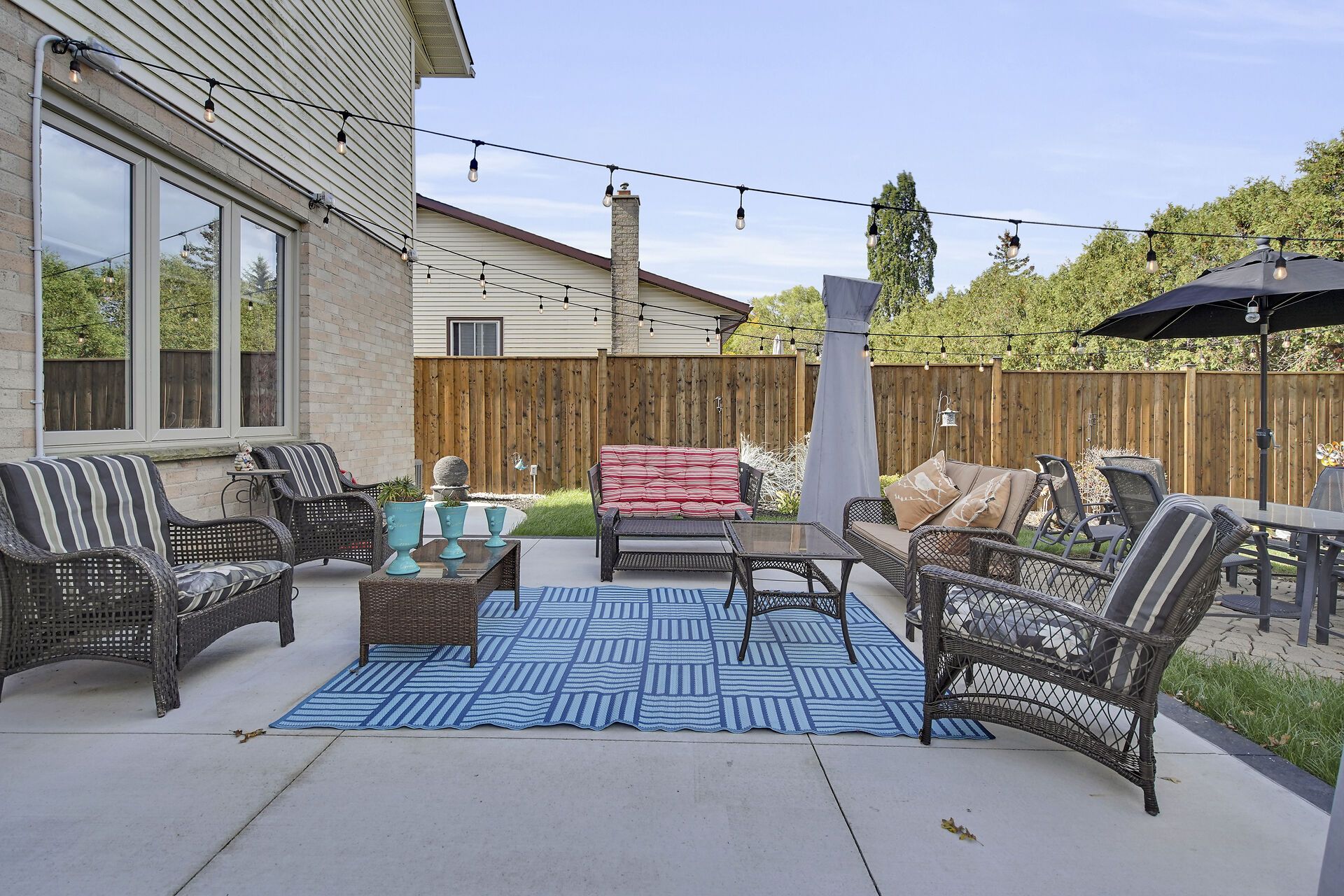 Welcome to this meticulously maintained 5 level side split with double car garage offering the perfect blend of comfort, convenience, and location. Step inside to discover a warm and inviting living space featuring a formal living room and a beautiful dining area perfect for gatherings. The bright eat-in kitchen offers an abundance of cabinetry, newer appliances, and a lovely view overlooking the spacious family room complete with a cozy gas fireplace. The upper level features three generous bedrooms with new flooring, updated closet doors, and a refreshed bathroom with a stylish shower stall. The lower level extends your living space with a second family room, full bathroom, and a versatile office, den, or exercise room. Additional highlights include a two-car garage with newer tile flooring and a high-end wi-fi enabled garage door opener, as well as a pressed concrete driveway. Step outside and enjoy the peace and serenity of the gorgeous backyard, complete with a newer composite deck, large 30x18 concrete patio ideal for entertaining, and a new privacy fence on one side. This home has been freshly painted throughout including all trim and doors and showcases new flooring, carpeting, and updated larger baseboards. Ideally situated on a private crescent in a desirable south-end neighbourhood, you'll appreciate the proximity to excellent schools, shopping, parks, and easy 401 highway access.
