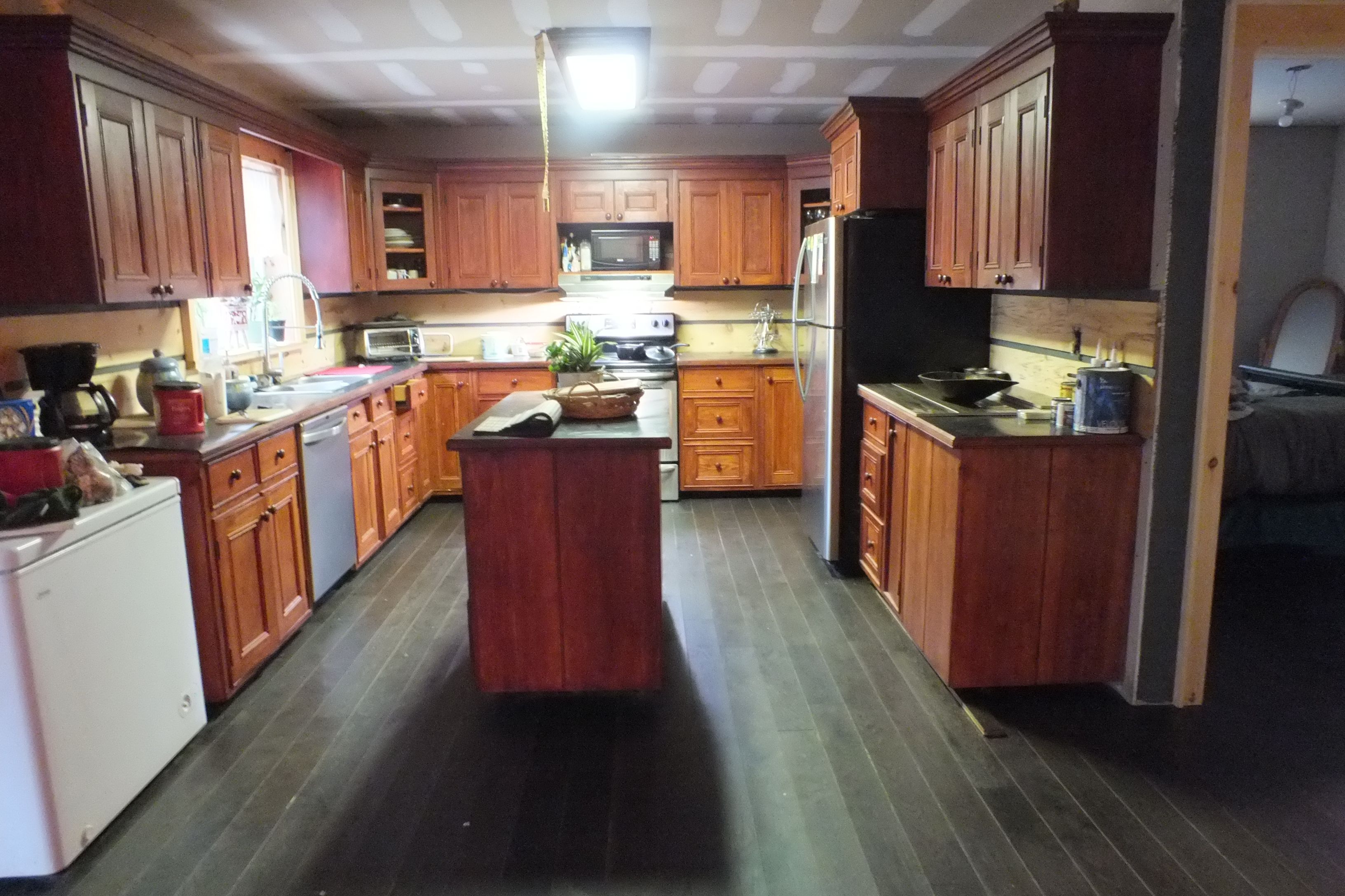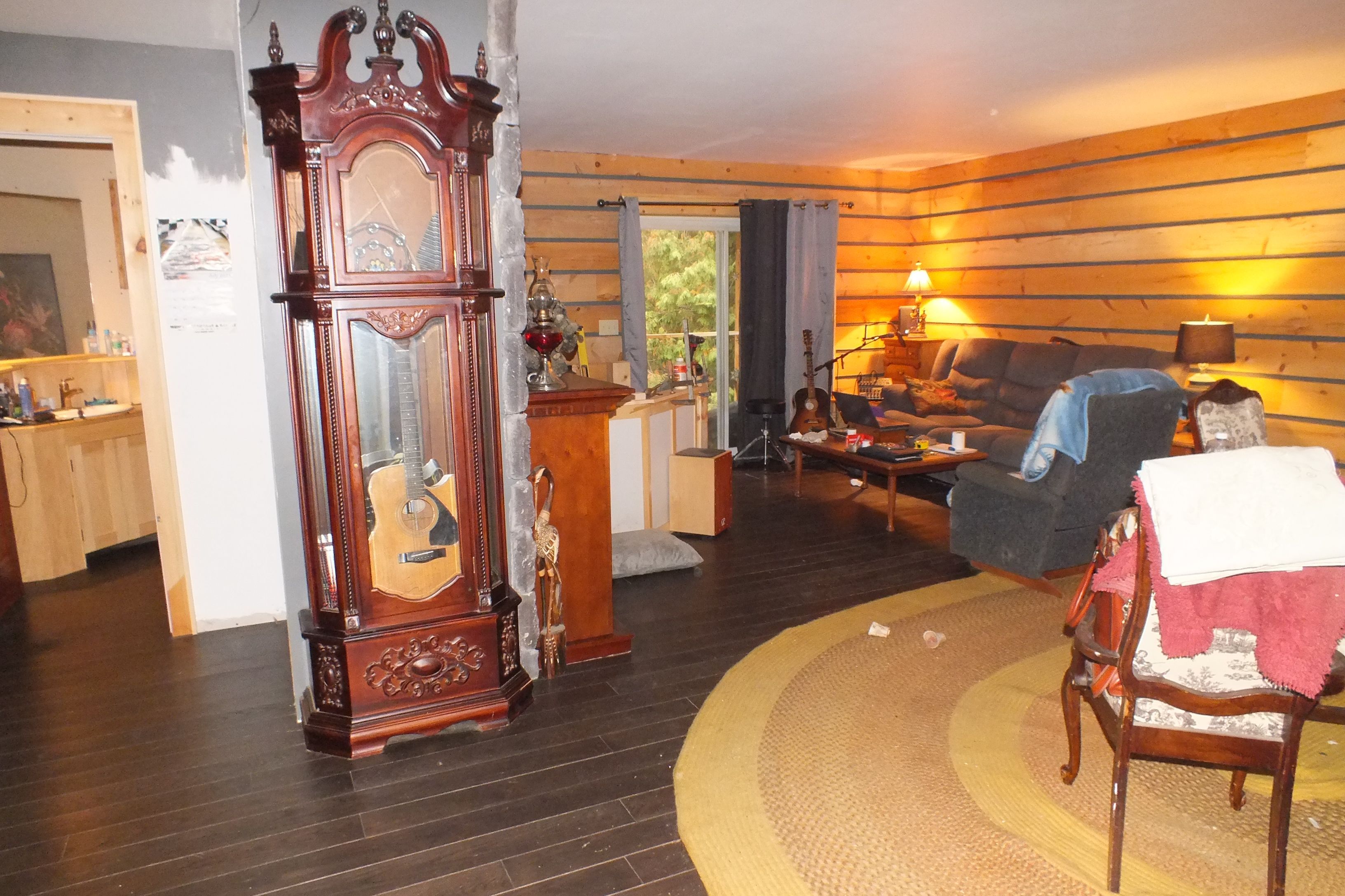 Home on manitoulin island, surrounded by ceder trees, view of farm land. Beautiful kitchen with custom cupboards. Hardwood floors, open concept, w/o to 36 foot deck off living room. W/o basement with in floor heating.