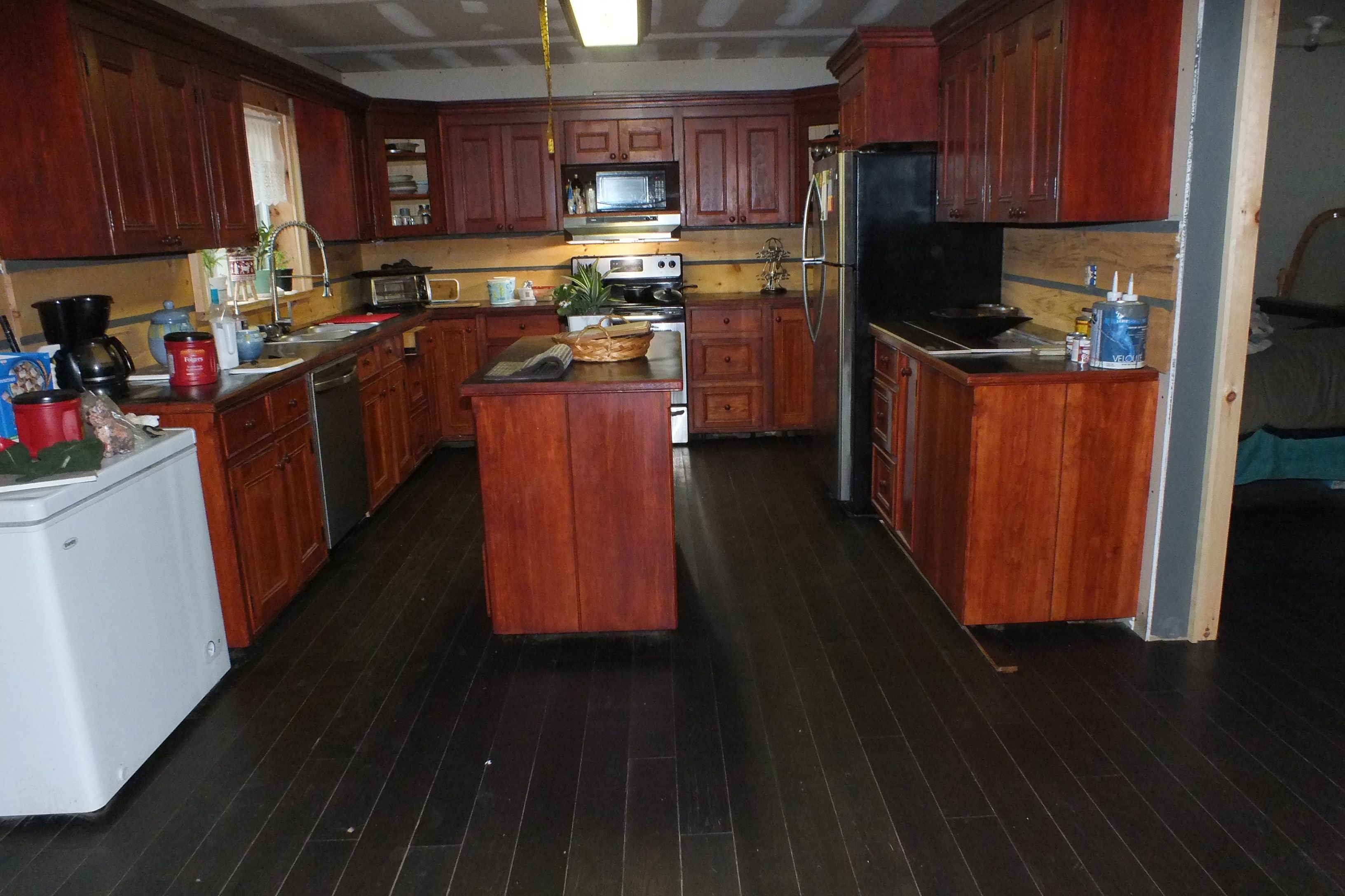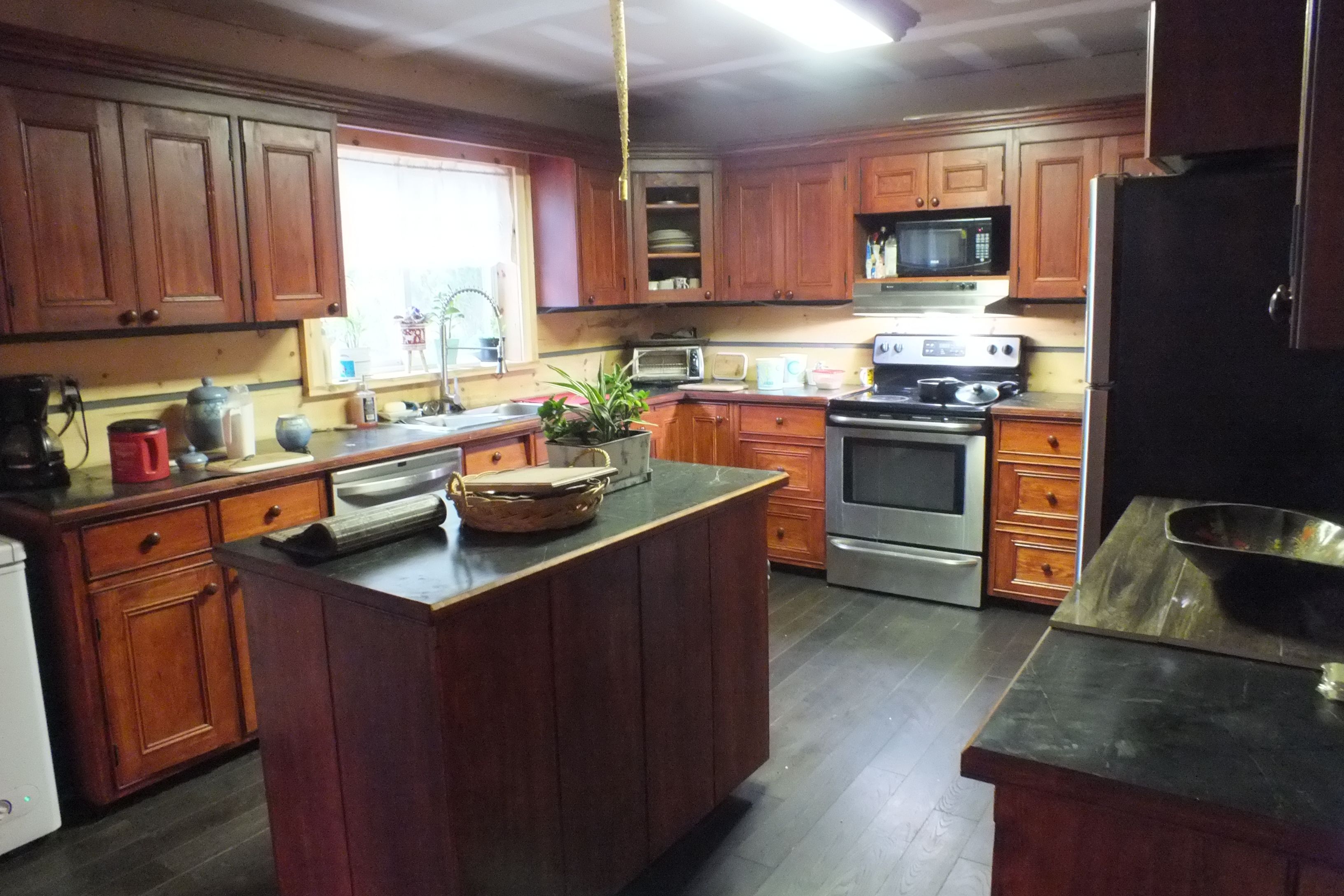 • Beautiful kitchen featuring custom cupboards for added charm.