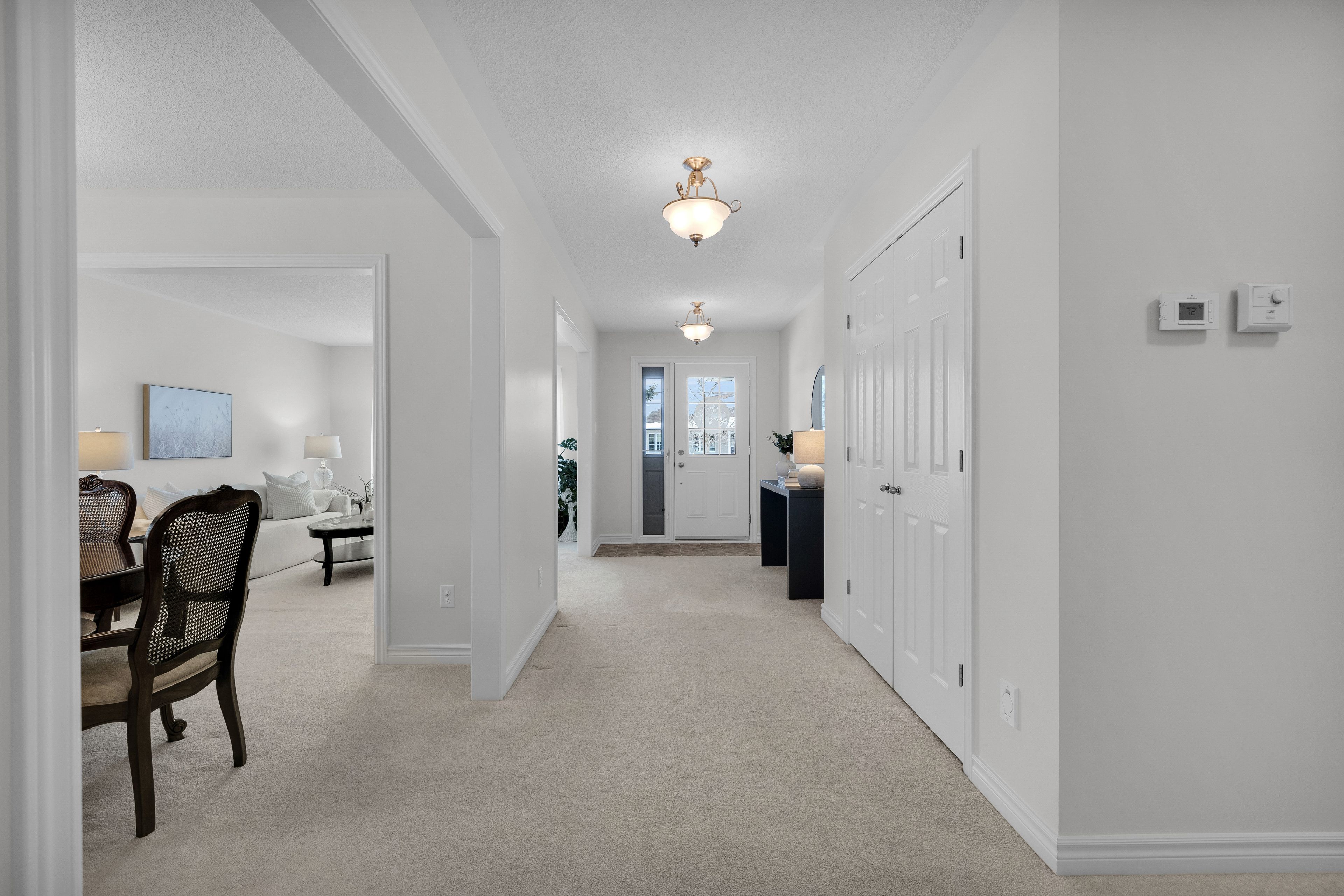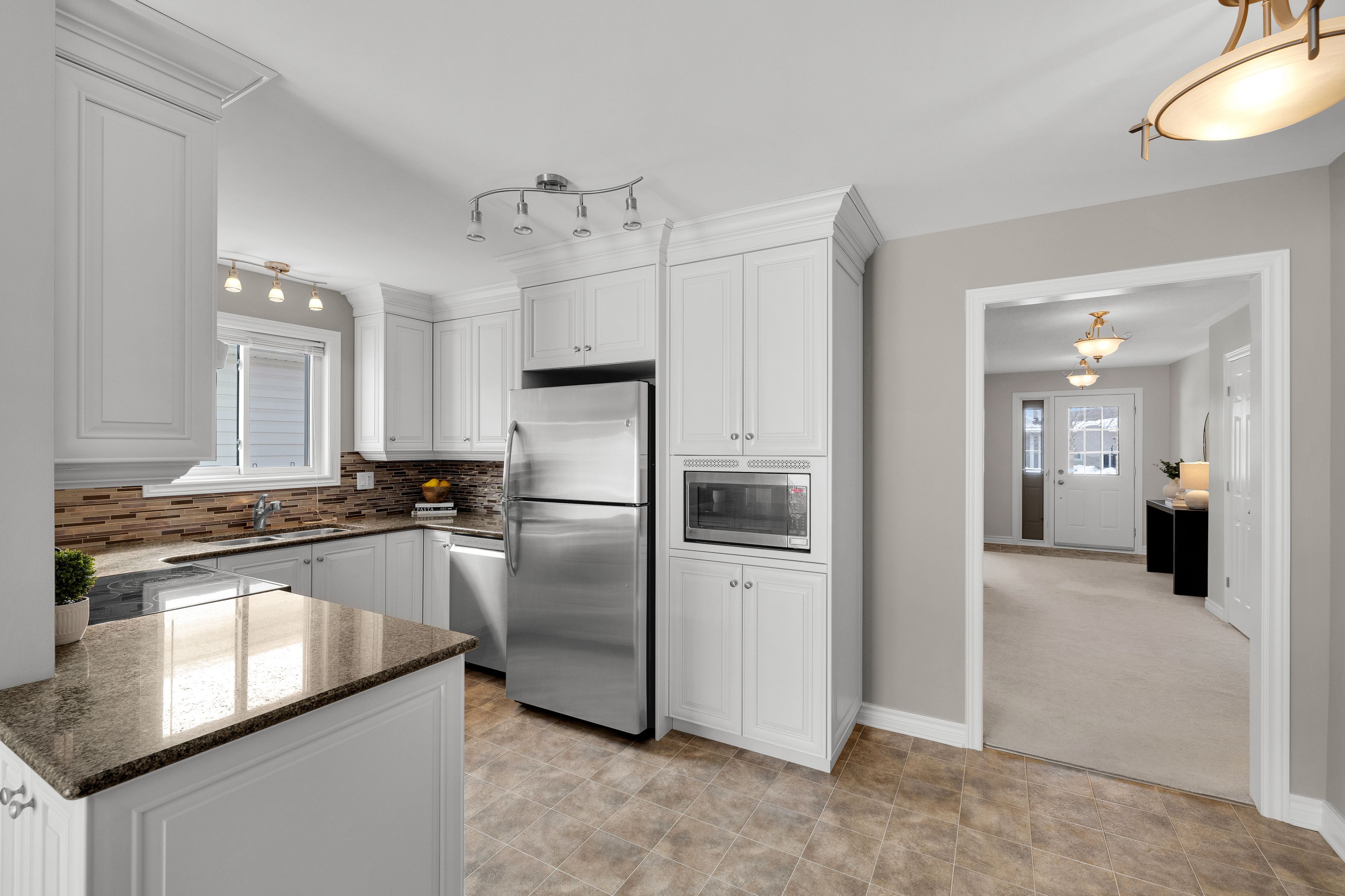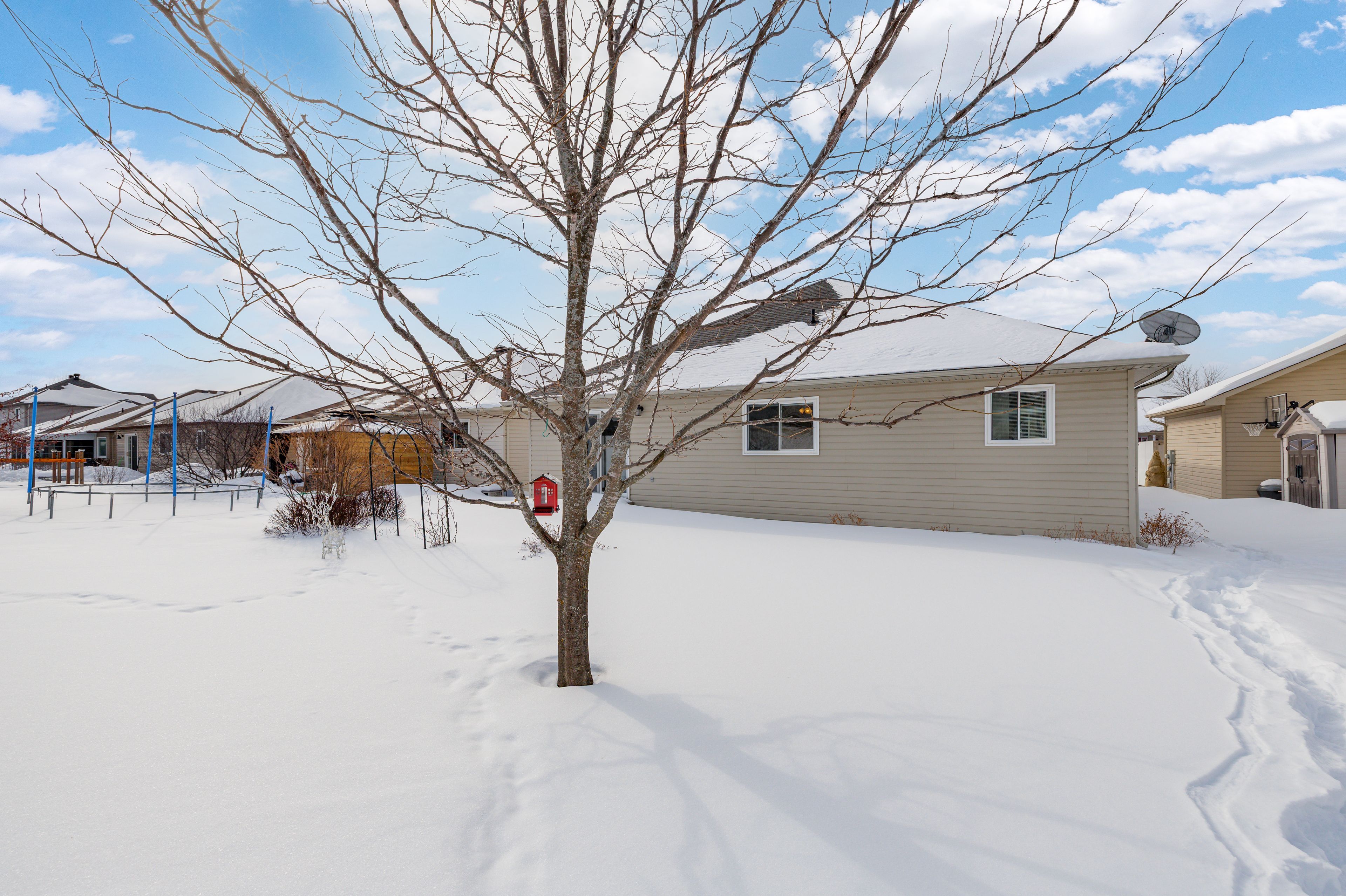 Welcome to riverfront estates, one of almonte's most sought-after neighbourhoods, just steps to the mississippi river & the heart of this charming historic town. This custom detached bungalow offers timeless design, thoughtful craftsmanship & exceptional potential. From the moment you arrive, the spacious entryway sets the tone. To the right a generous formal living room is filled w/ natural light. Adjacent is a well-proportioned dining room, ideal for hosting family gatherings. The heart of the home is the custom kitchen, designed w/ intention & functionality in mind. Solid, well crafted cabinetry maximizes storage & usability, complemented by ss appliances, granite countertops, crown moulding above the cabinets & a charming window over the sink. An eat-in area offers space for casual meals, flowing seamlessly into the adjacent family room, a bright & comfortable space w/ patio doors leading to the backyard, perfect for indoor-outdoor living in warmer months. This main level features 3 bdrms, including a primary suite w/ full ensuite, plus a second full bath. A practical mudroom off the attached 2-car garage includes laundry & closet space, adding everyday convenience. The unfinished lower level is expansive, a true blank canvas w/ endless potential. Offering ample room for additional living space, a home gym, rec room or guest suite, plus a bath rough-in already in place. Outside, the backyard offers a peaceful setting w/ no direct rear neighbours & mature gardens. The front of the home is enhanced by professionally landscaped interlock stone walkway & driveway perimeter (2023), adding excellent curb appeal. Located in the heart of almonte, this home is within walking distance to a highly regarded hospital, r. Tait mckenzie ps, holy name of mary cs, scenic river pathways & the town's vibrant shops, cafés & amenities. Enjoy the ease of small-town living w/ convenient access to major routes, all within a neighbourhood known for pride of ownership & community spirit