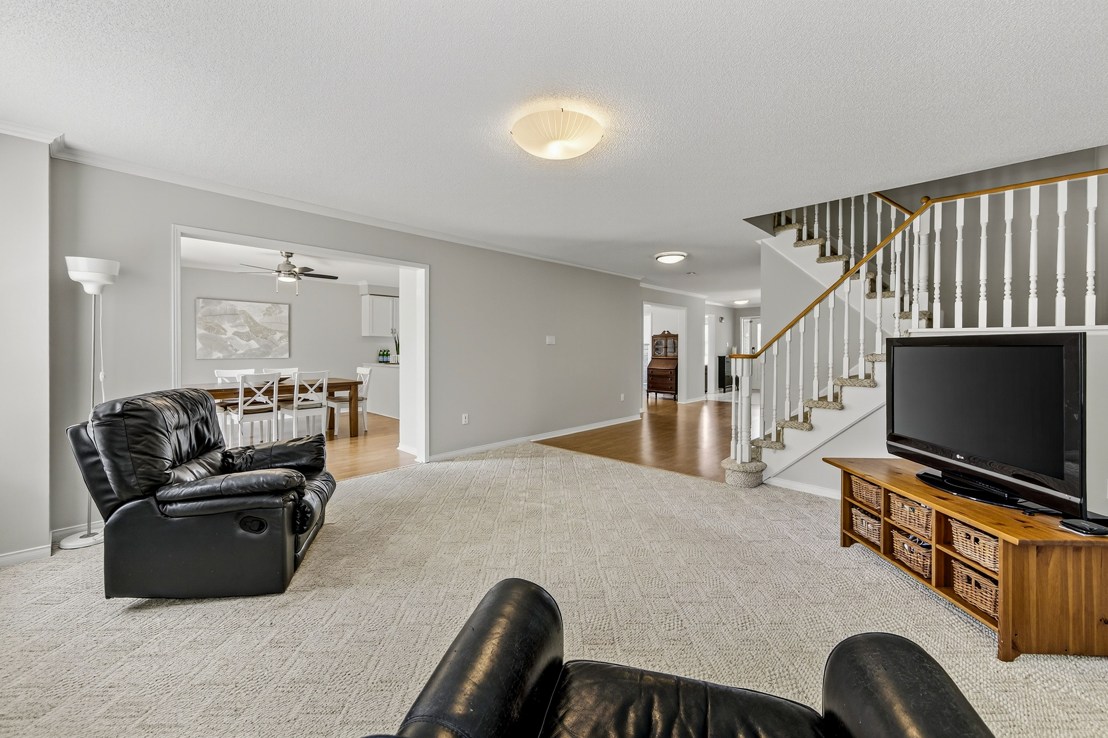 • Bright open-concept layout with a large eat-in kitchen and deck.