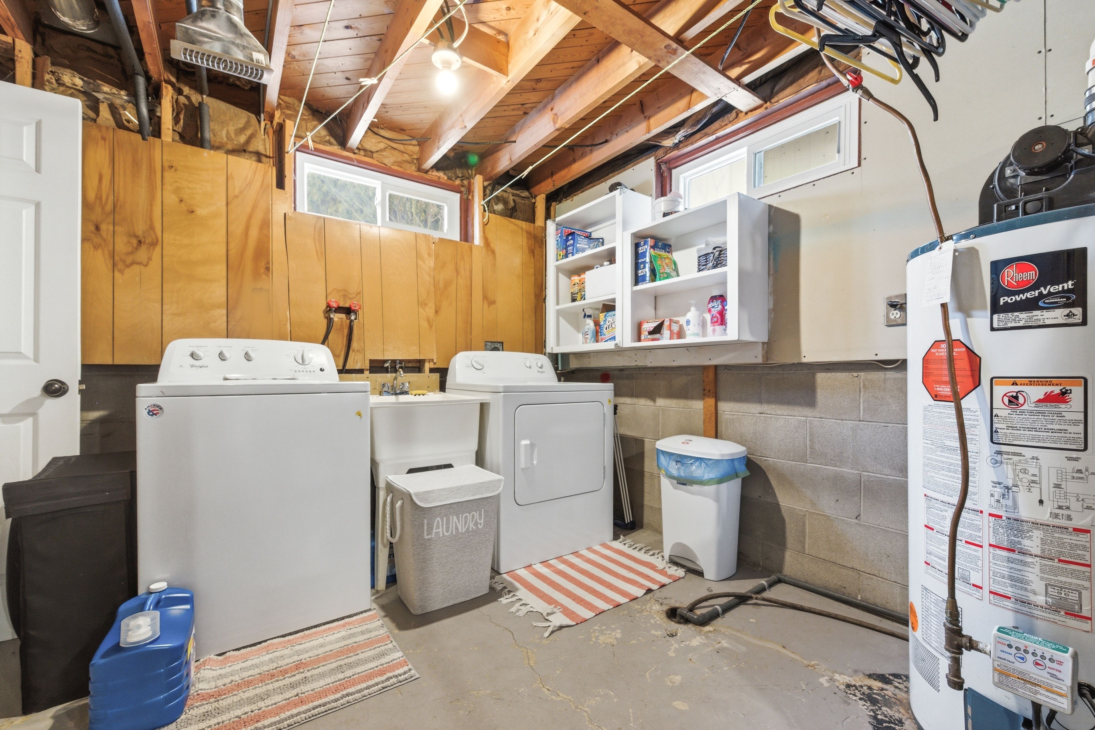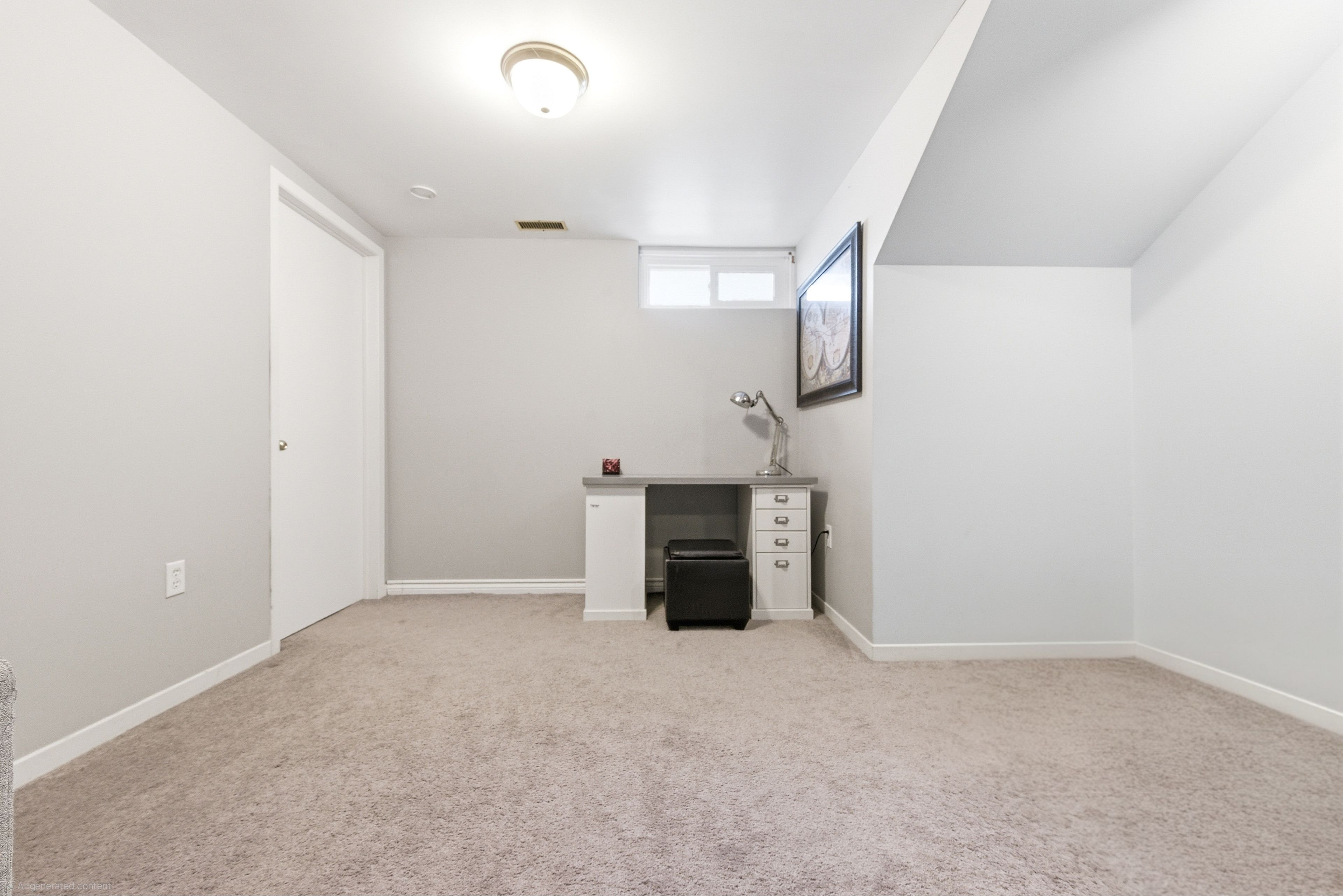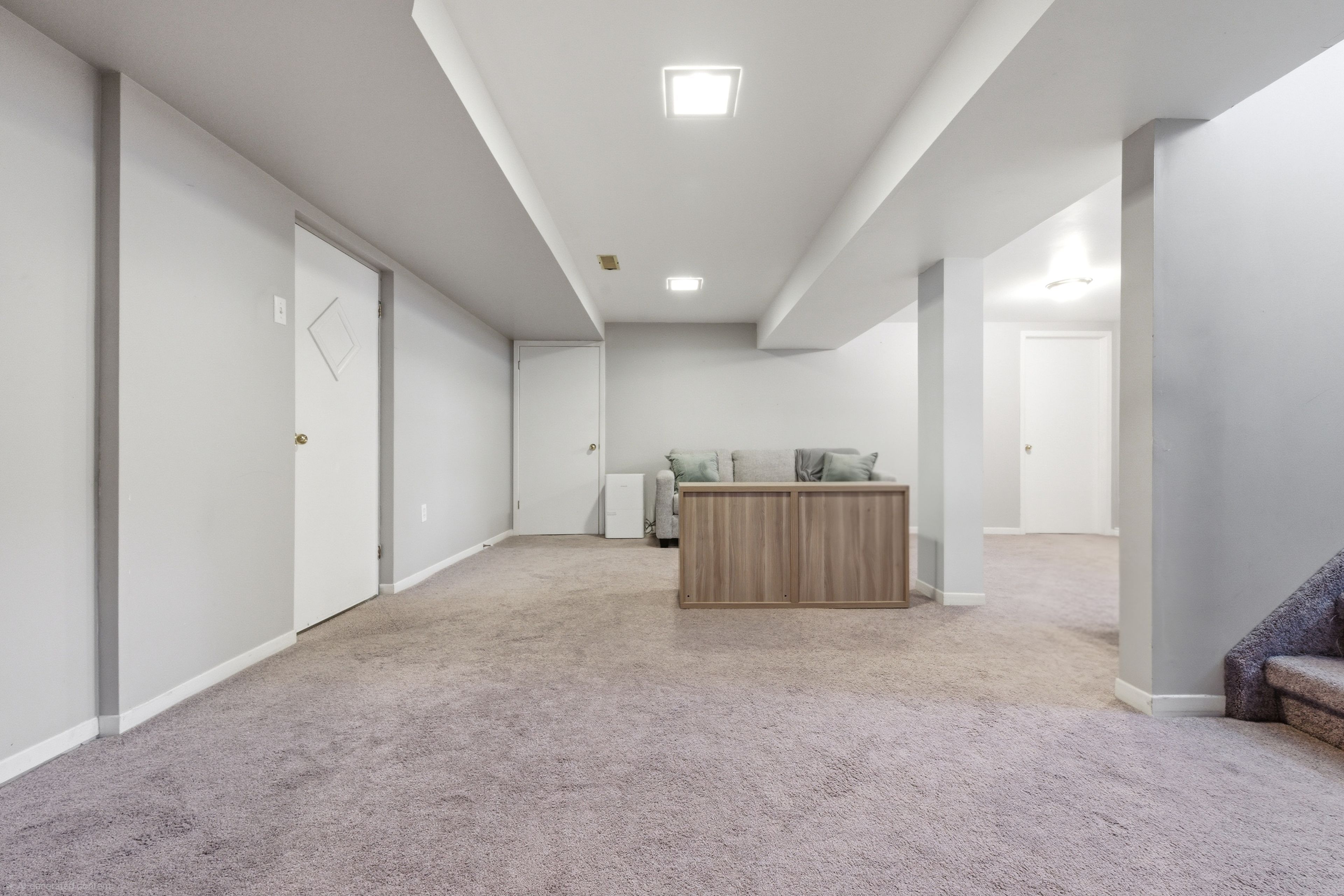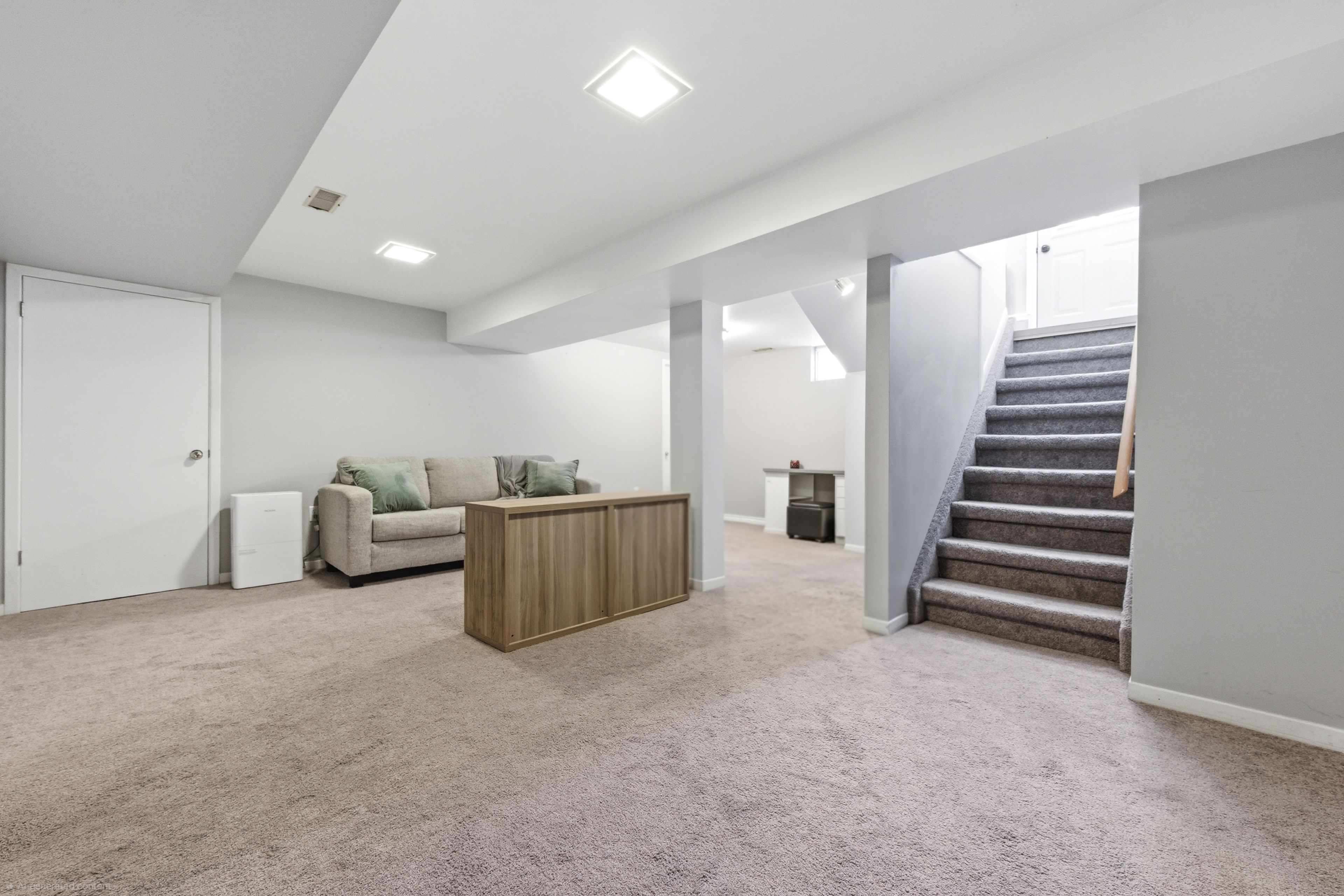 • Lower level includes rec room, storage, utility area, and third bedroom.