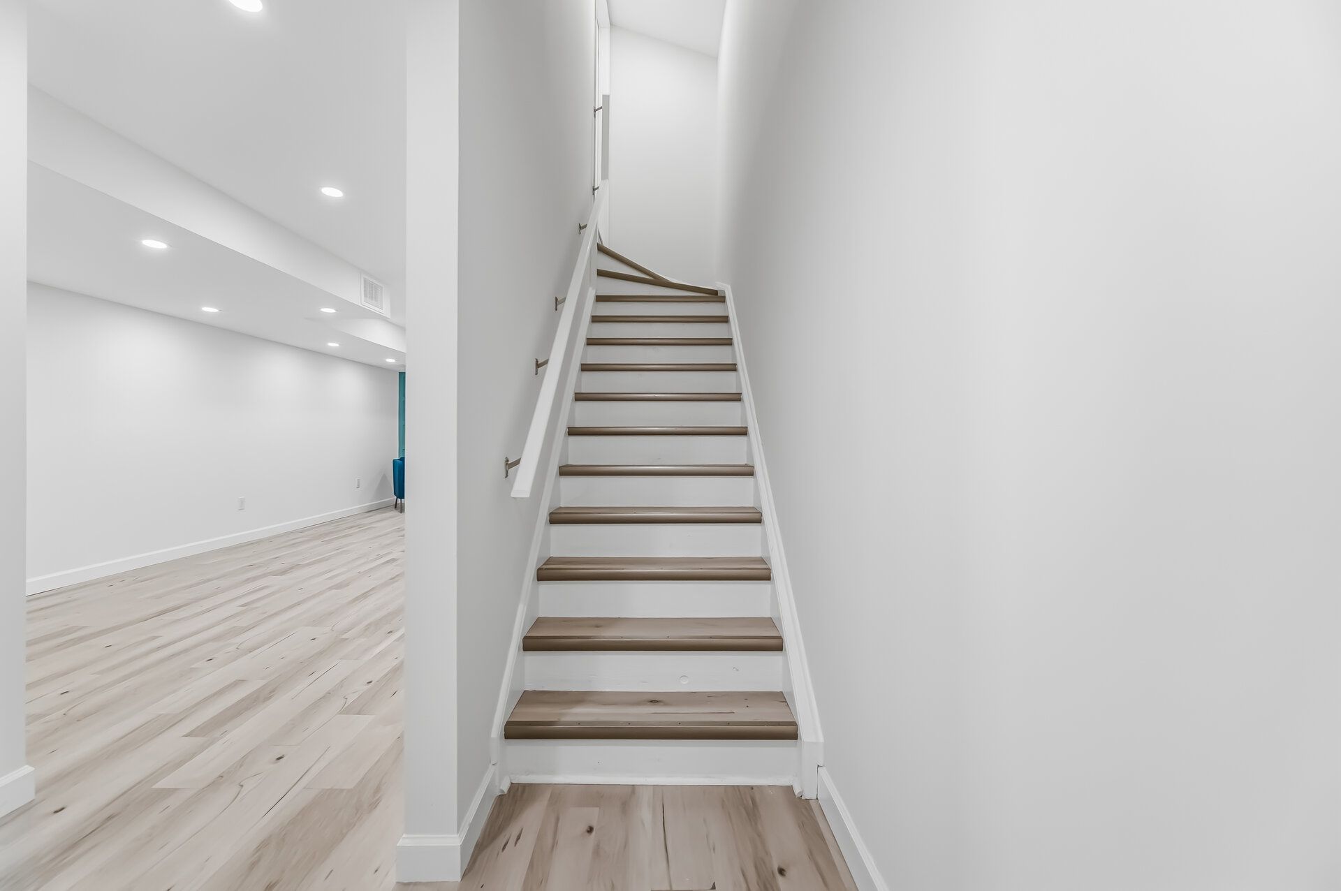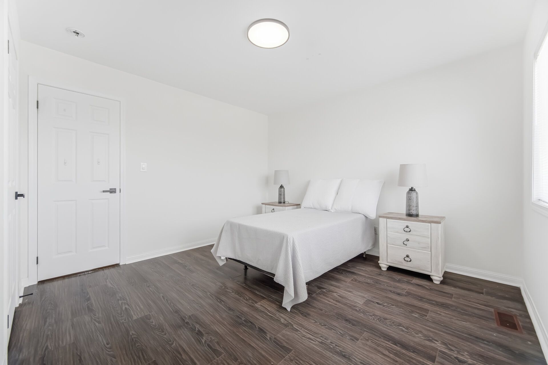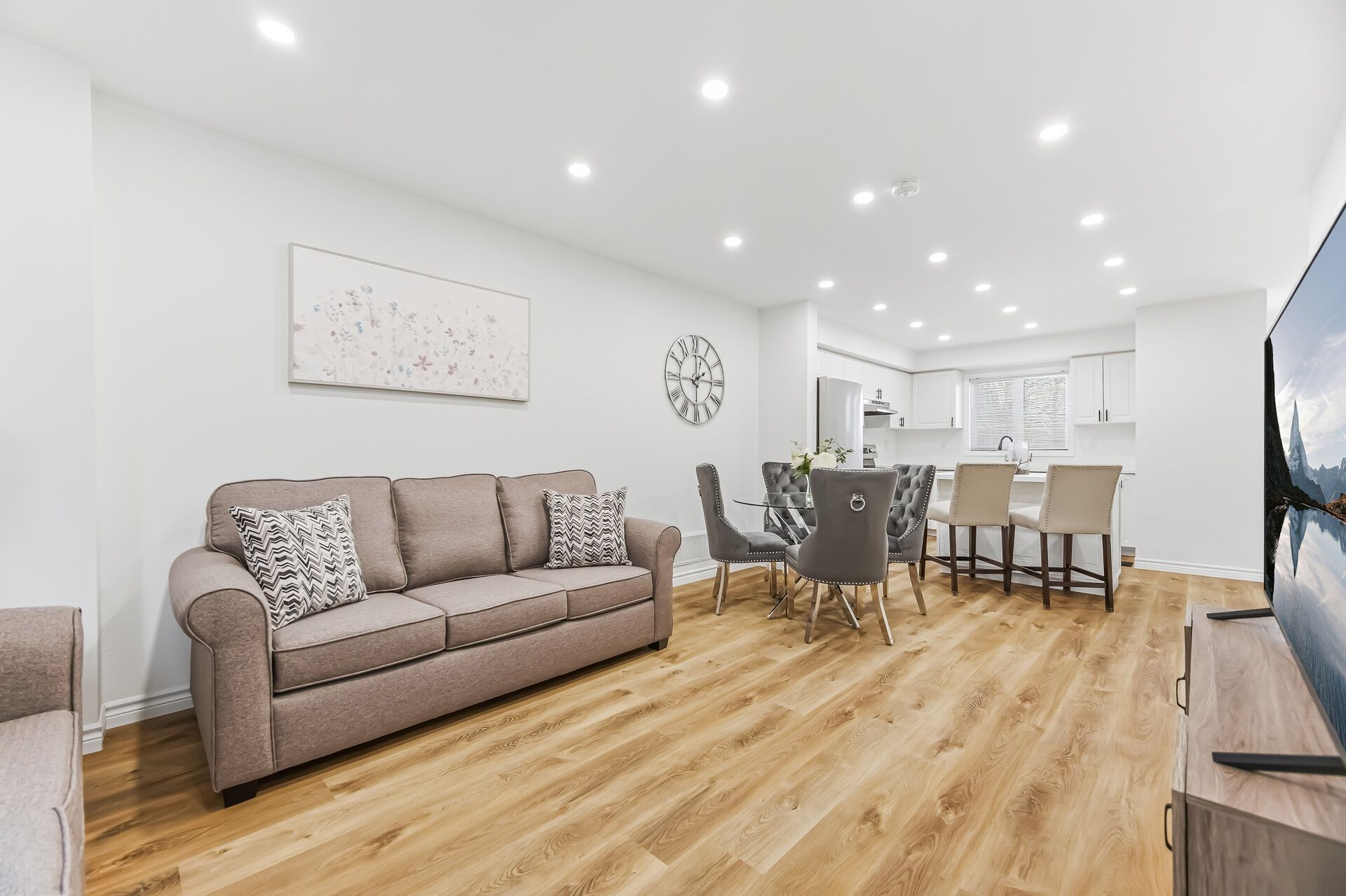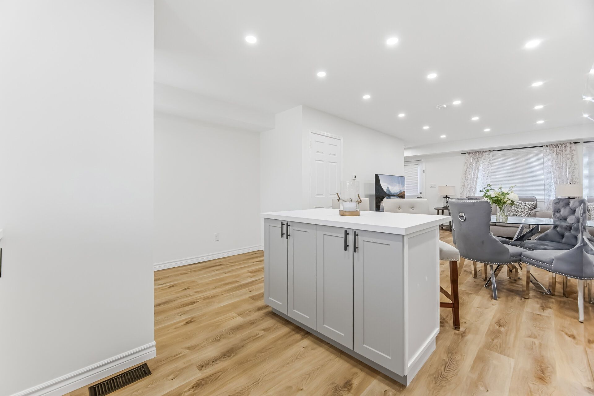 Welcome to your dream home. Rare 4 bedroom, 3 bathroom townhome in desirable location in brampton with nearly 2,000 sqft of finished living space. Renovated throughout, this spacious home is move-in-ready featuring updated flooring and a stylish, upgraded kitchen with quartz countertops, an island am brand new stainless steel appliances, perfect for entertaining or everyday living. The open layout is filled with natural light, creating a warm and inviting atmosphere. The basement is tastefully finished with a 2-piece bath and laundry room. The complex offers plenty of visitor parking. Ideally located beside the newly developed recreation centre and just minutes from brampton go station, downtown brampton, shopping plazas, transit, schools, parks, and major commuter routes, and situated directly on a major bus route, this home delivers outstanding convenience and value. This home truly combines modern upgrades with natural surroundings and everyday conveniences. Don't miss it!