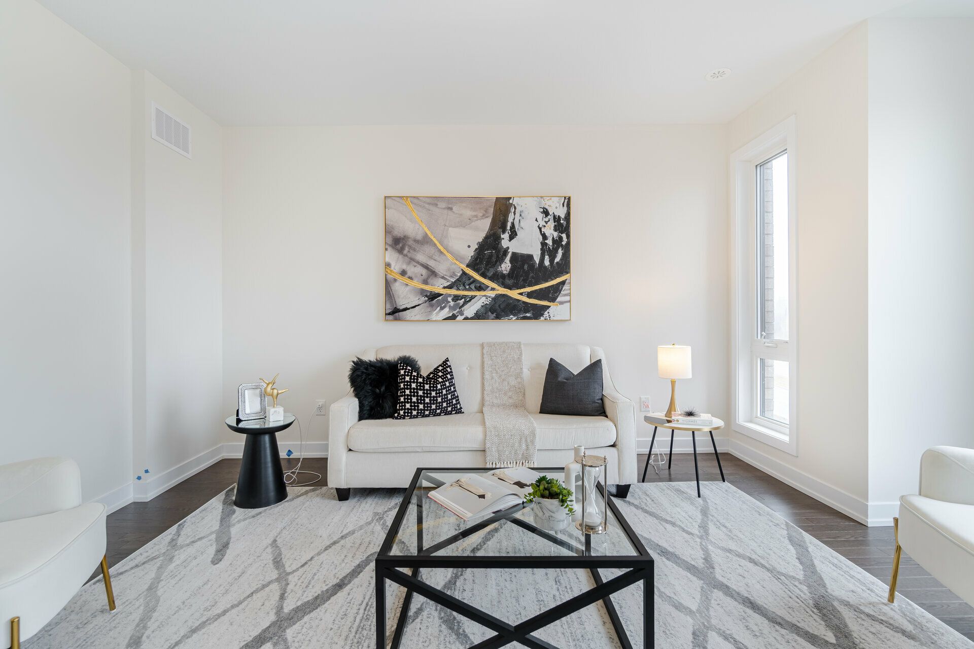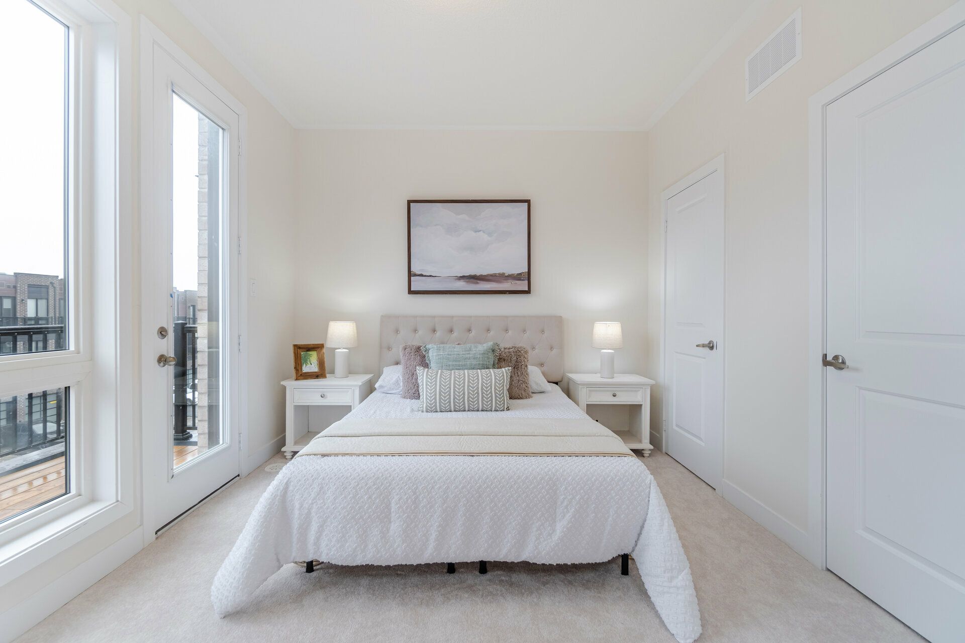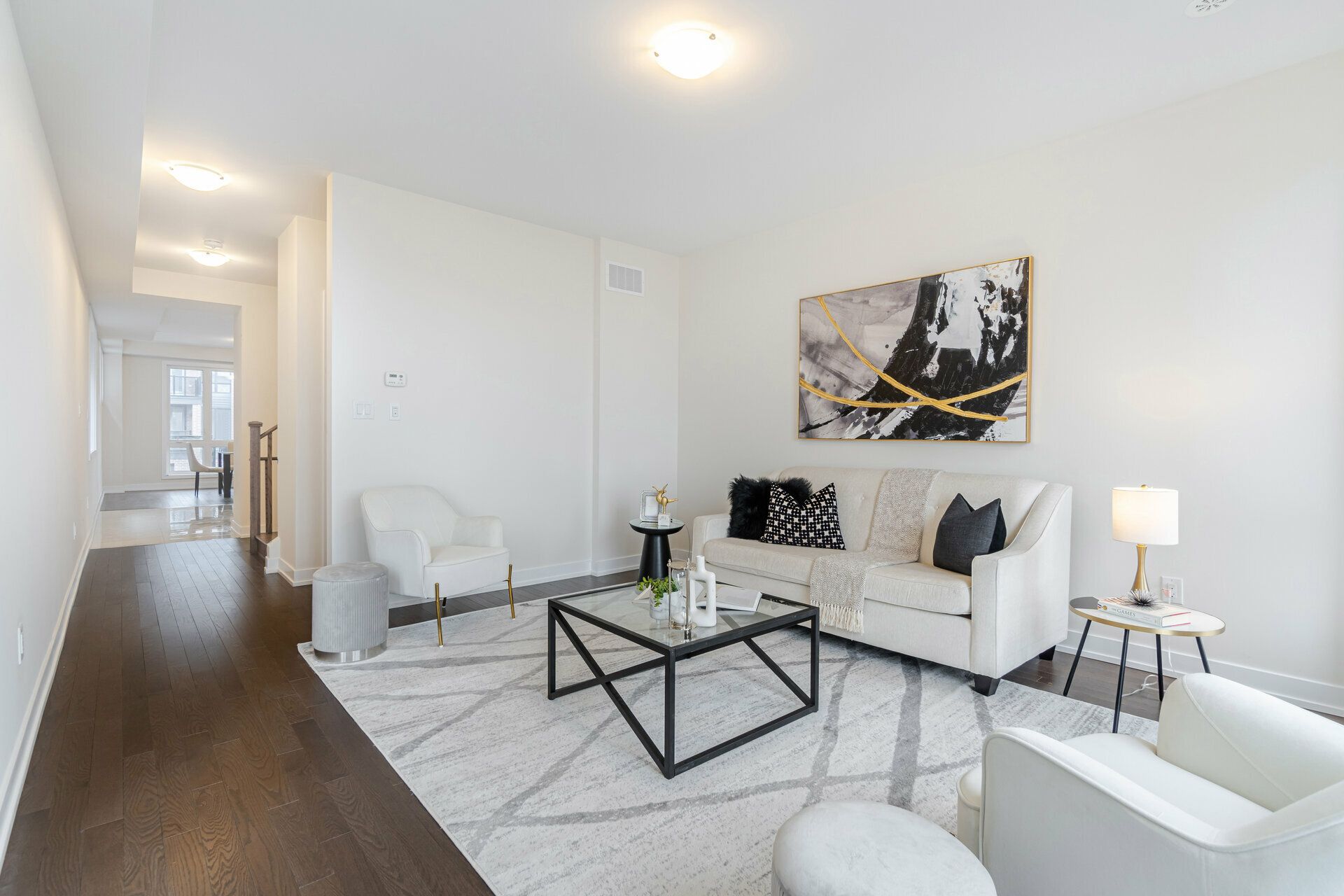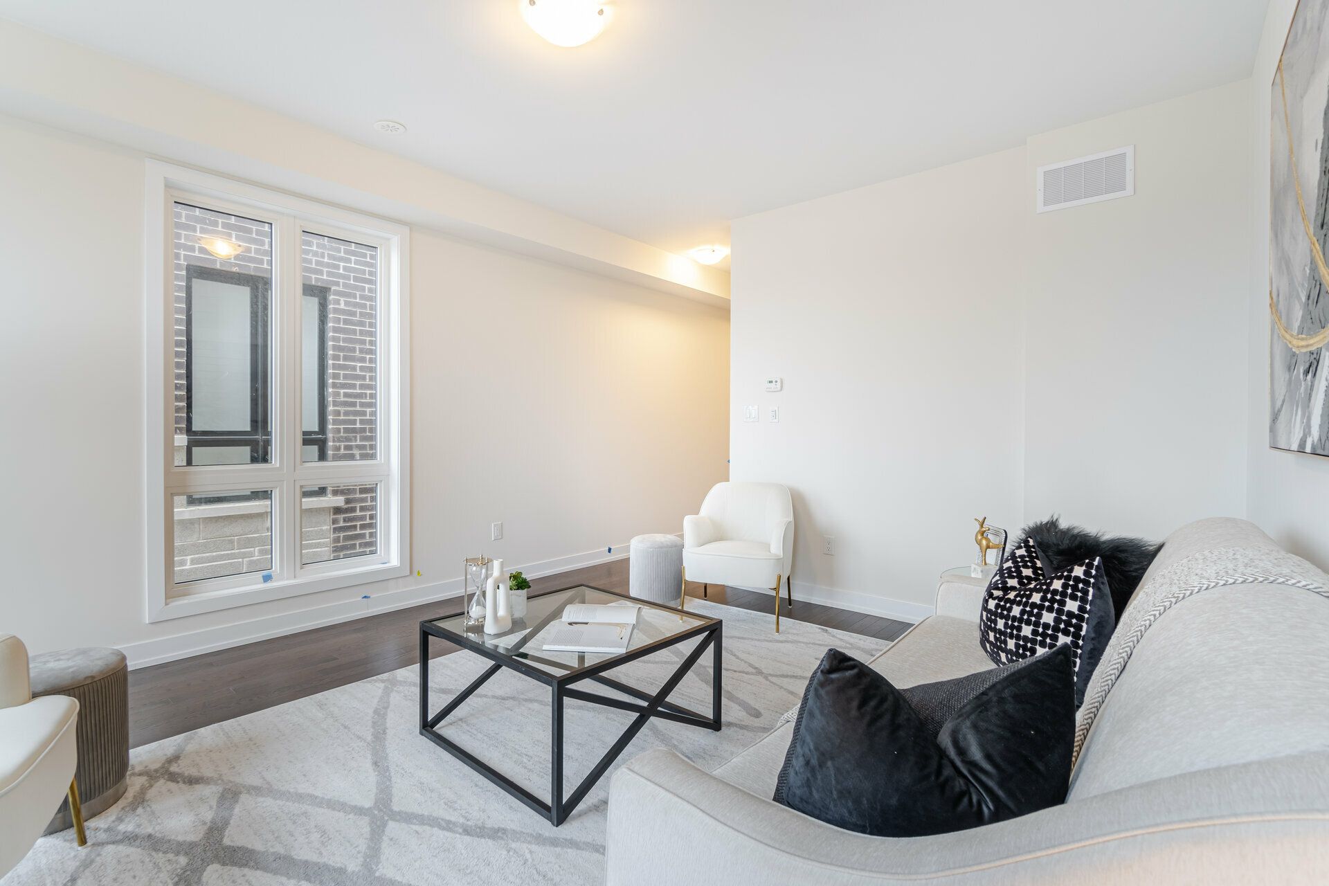 End unit townhouse - cornell community, markham || stunning modern end-unit townhouse by primont homes in the highly sought-after cornell neighbourhood, offering over 2,100 sq. Ft. Of above-grade living space plus a bright lookout basement || this thoughtfully designed home is ideal for modern family living and everyday comfort || enjoy premium exposure overlooking donald cousens parkway, providing open views, added privacy, and abundant natural light || the main floor features an ensuite bedroom and washroom, while the upper levels offer two additional bedrooms and two full bathrooms || two walkout balconies provide perfect outdoor spaces for morning coffee or evening relaxation || the extra-wide 1. 5-car garage offers direct access into the home for convenience || inside, 9-foot ceilings and floor-to-ceiling windows create a bright, airy atmosphere || the upgraded kitchen showcases extended cabinetry, quartz countertops, stylish backsplash, elegant wood flooring, and modern island lighting, blending function with sophistication || stainless steel appliances including fridge, stove, dishwasher, and a side-by-side washer & dryer are included || window coverings and a garage door opener are already installed, making this home move-in ready || the bright lookout basement includes a large above-grade window, ideal for a recreation room, home office, gym, or potential in-law suite || conveniently located near parks, schools, shopping, markham stouffville hospital, highway 7, highway 407, public transit, and the cornell community centre & library || this property combines luxury, location, and lifestyle || key features include total 4 bedrooms, 3. 5 bathrooms, main floor ensuite, lookout basement, two walkout balconies, extra-wide 1. 5-car garage, upgraded kitchen with quartz countertops, 9-foot ceilings, floor-to-ceiling windows, and move-in ready condition with appliances and window coverings included ||