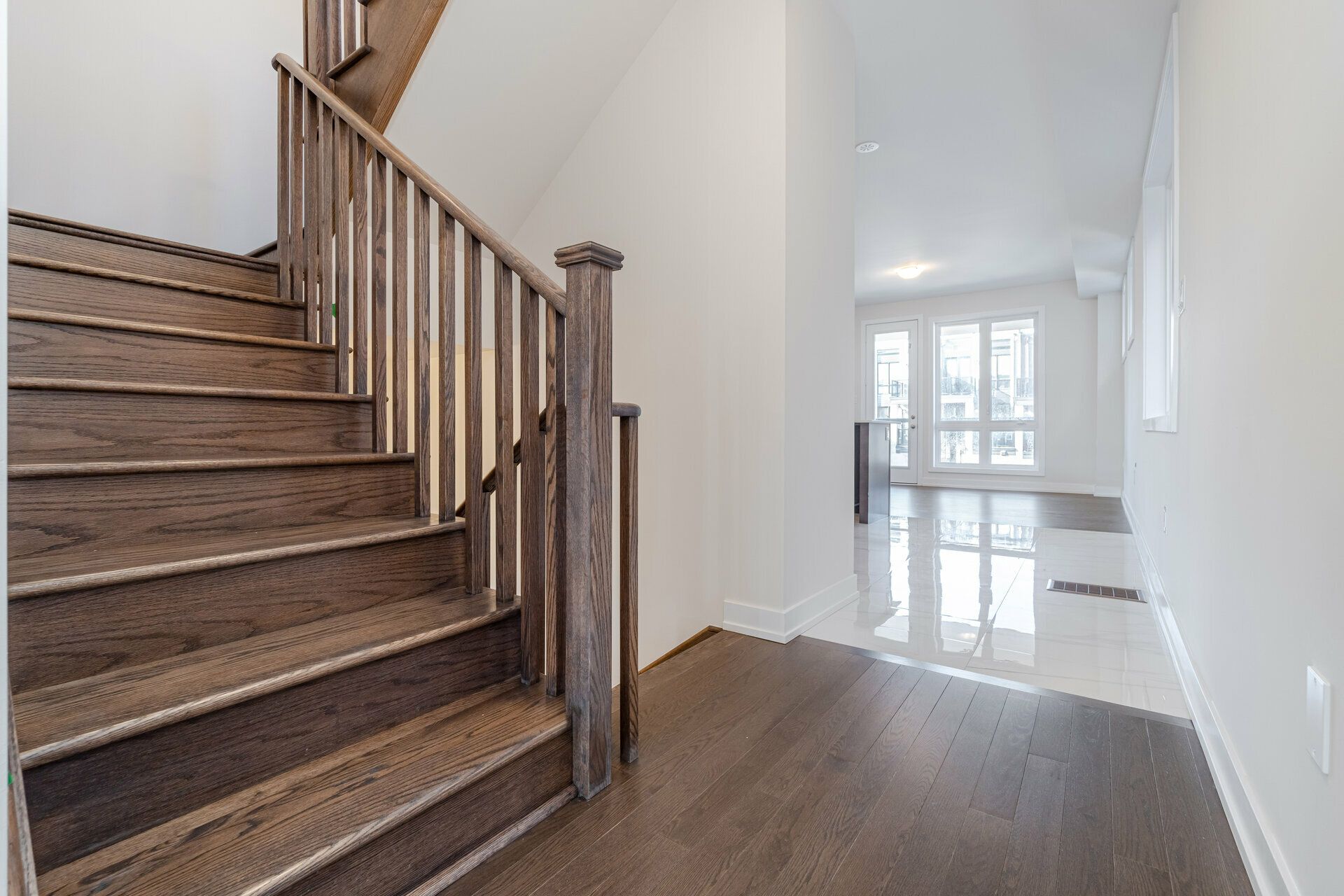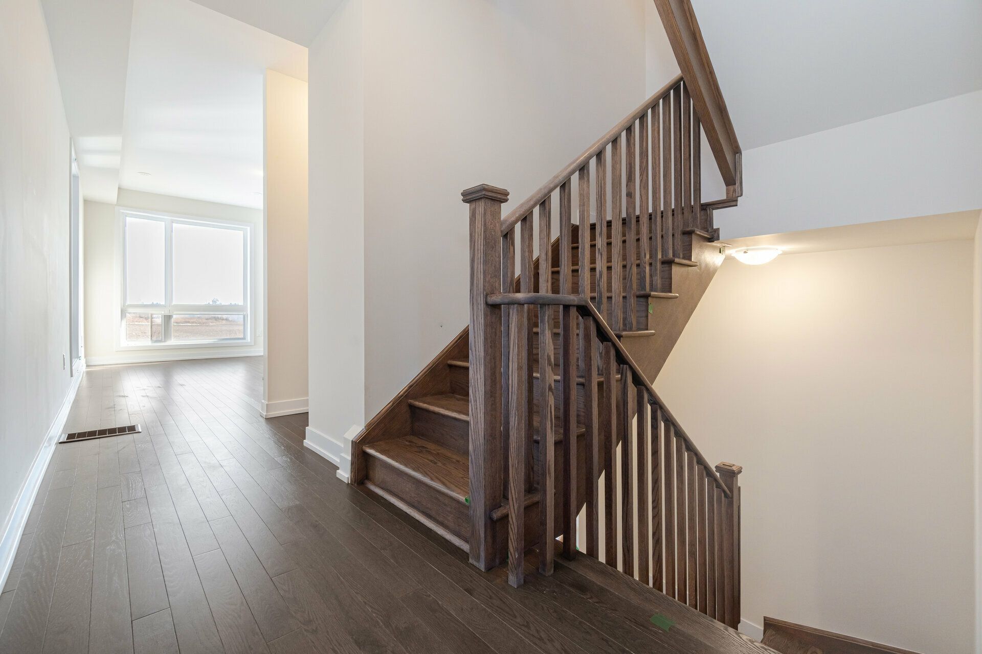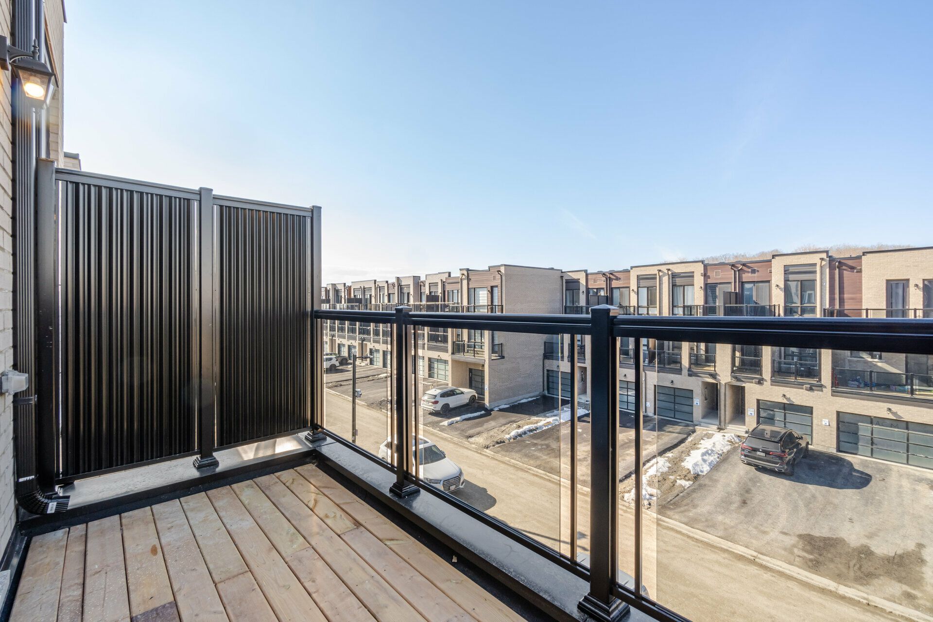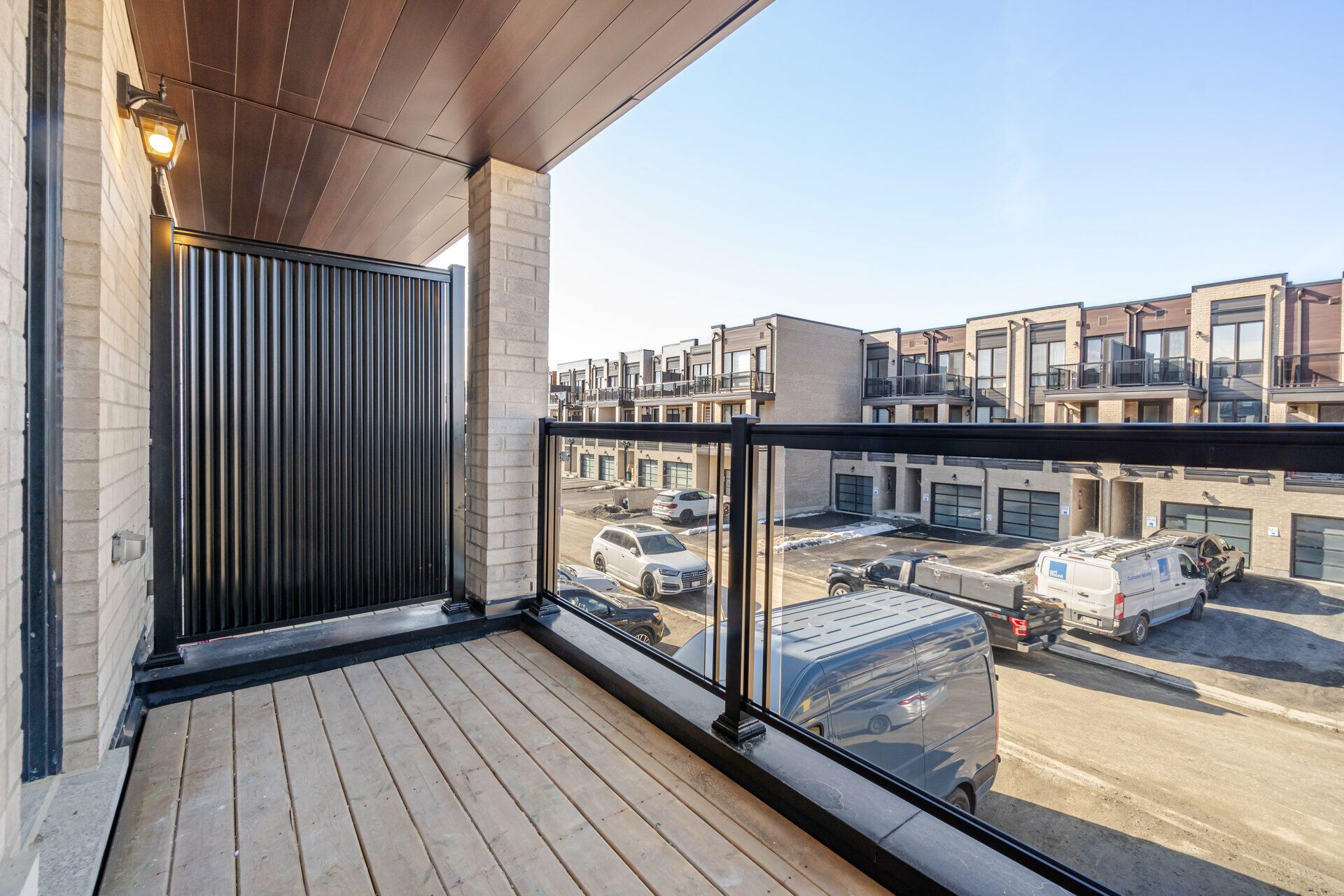 End unit townhouse - cornell community, markham || stunning modern end-unit townhouse by primont homes in the highly sought-after cornell neighbourhood, offering over 2,100 sq. Ft. Of above-grade living space plus a bright lookout basement || this thoughtfully designed home is ideal for modern family living and everyday comfort || enjoy premium exposure overlooking donald cousens parkway, providing open views, added privacy, and abundant natural light || the main floor features an ensuite bedroom and washroom, while the upper levels offer two additional bedrooms and two full bathrooms || two walkout balconies provide perfect outdoor spaces for morning coffee or evening relaxation || the extra-wide 1. 5-car garage offers direct access into the home for convenience || inside, 9-foot ceilings and floor-to-ceiling windows create a bright, airy atmosphere || the upgraded kitchen showcases extended cabinetry, quartz countertops, stylish backsplash, elegant wood flooring, and modern island lighting, blending function with sophistication || stainless steel appliances including fridge, stove, dishwasher, and a side-by-side washer & dryer are included || window coverings and a garage door opener are already installed, making this home move-in ready || the bright lookout basement includes a large above-grade window, ideal for a recreation room, home office, gym, or potential in-law suite || conveniently located near parks, schools, shopping, markham stouffville hospital, highway 7, highway 407, public transit, and the cornell community centre & library || this property combines luxury, location, and lifestyle || key features include total 4 bedrooms, 3. 5 bathrooms, main floor ensuite, lookout basement, two walkout balconies, extra-wide 1. 5-car garage, upgraded kitchen with quartz countertops, 9-foot ceilings, floor-to-ceiling windows, and move-in ready condition with appliances and window coverings included ||