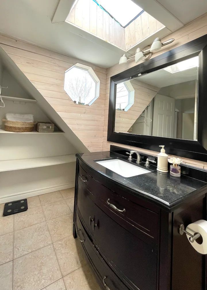 • Private backyard oasis with a hot tub and panoramic lake views.