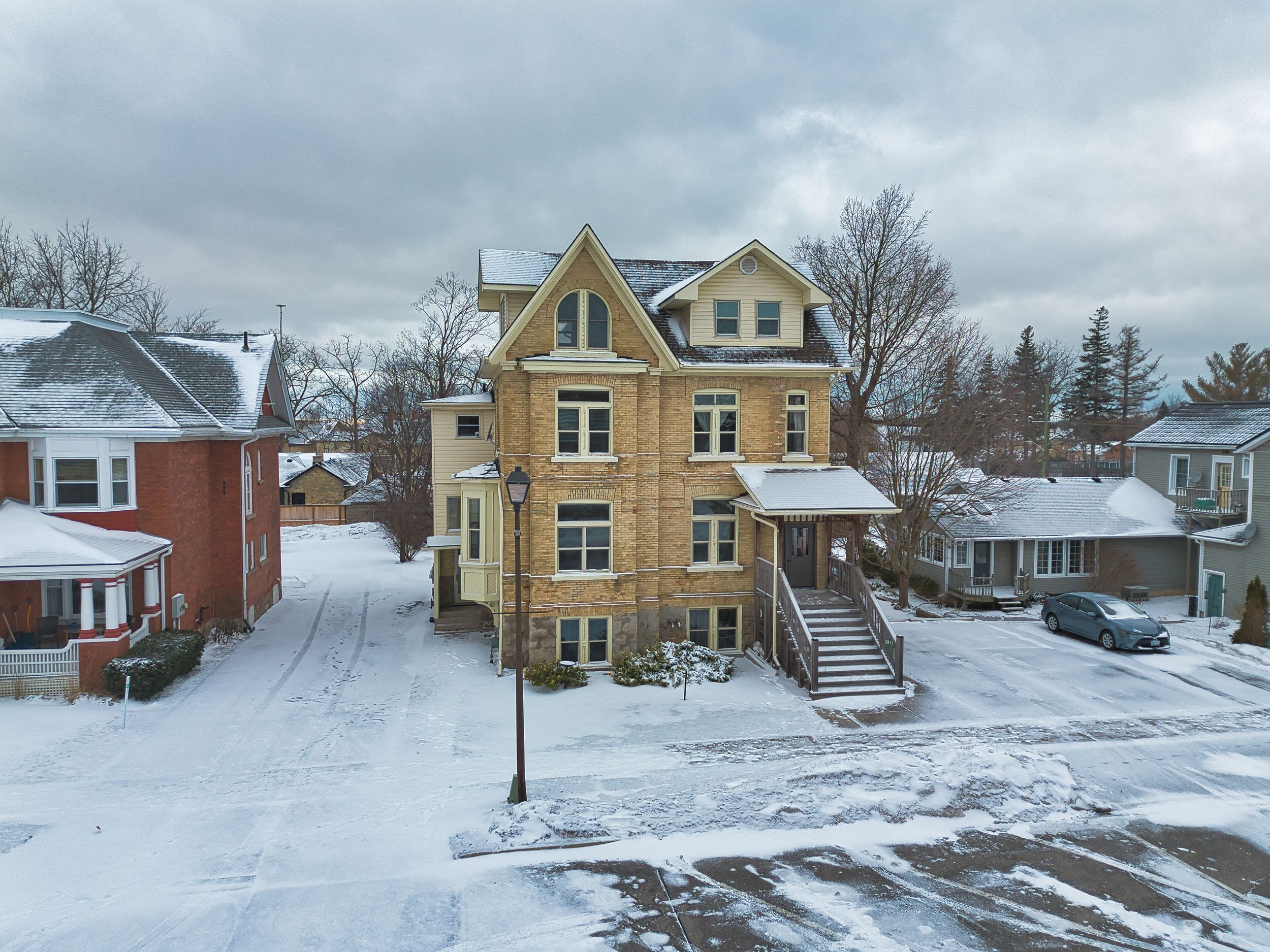 Welcome to 59 north street, a well-maintained and updated six-unit residential investment property ideally located in the heart of downtown goderich, known as canada's prettiest town. This prime location offers close proximity to the historic town square, lake huron's beaches, and a full range of amenities. The property consists of five one-bedroom units and one two-bedroom unit, all of which are separately metered. Extensive renovations have been completed, and the building is fully compliant with current fire code requirements, offering peace of mind for investors. Additional features include a spacious rear yard and a storage shed, providing added functionality for tenants and owners alike. This property presents excellent income potential with flexible options: owner-occupy one unit while generating rental income from the remaining units, or fully lease the building for maximum return. A solid, turnkey investment opportunity in a highly desirable and walkable lakefront community.
