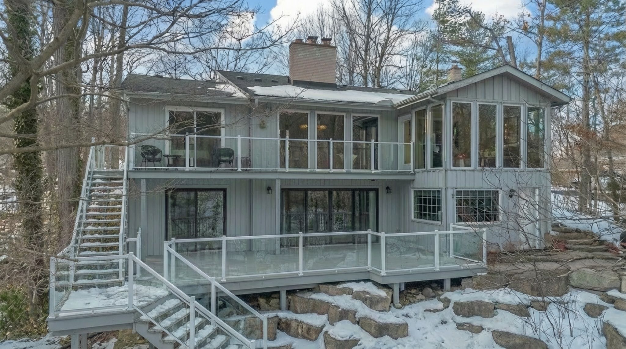 Tucked into the forest and backing directly onto the bruce trail and grimsby bench nature preserve, this architecturally distinctive retreat offers a rare opportunity to live completely immersed in nature - without sacrificing proximity to town, restaurants, and highway access. Designed for those who value complete privacy, tranquility, and character over cookie-cutter living, every window frames a different woodland view, creating a true storybook setting throughout. A vaulted foyer welcomes you into a dramatic main living space featuring a striking three-way stone wood-burning fireplace, brazilian hardwood floors, and walls of windows that blur the line between indoors and out. The thoughtfully designed kitchen balances everyday function with elevated entertaining, offering soapstone countertops, a 10-foot island with prep sink, custom detailing, and premium appliances including a thermador gas range and steam oven, flowing seamlessly into a glass-enclosed sunroom and expansive balcony that stretches along the back of the home among the treetops. The upper level serves as a private primary retreat with balcony access, an oversized windowed dressing closet, and a spa-inspired bath featuring a jetted tub and infrared heat lamp for year-round comfort. The lower level provides exceptional flexibility with a spacious recreation room anchored by a second wood-burning fireplace, two additional bedrooms, a full bath, and a dedicated office with walk-out access ideal for remote work or guest accommodation. Outdoors, terraced stone landscaping, a pizza oven, hot tub, and direct forest access create a secluded escape, while an eight-car driveway and garage with inside entry add everyday convenience. This one-of-a-kind property is perfectly suited for buyers seeking a refined woodland lifestyle in one of grimsby's most desirable locations. Rsa