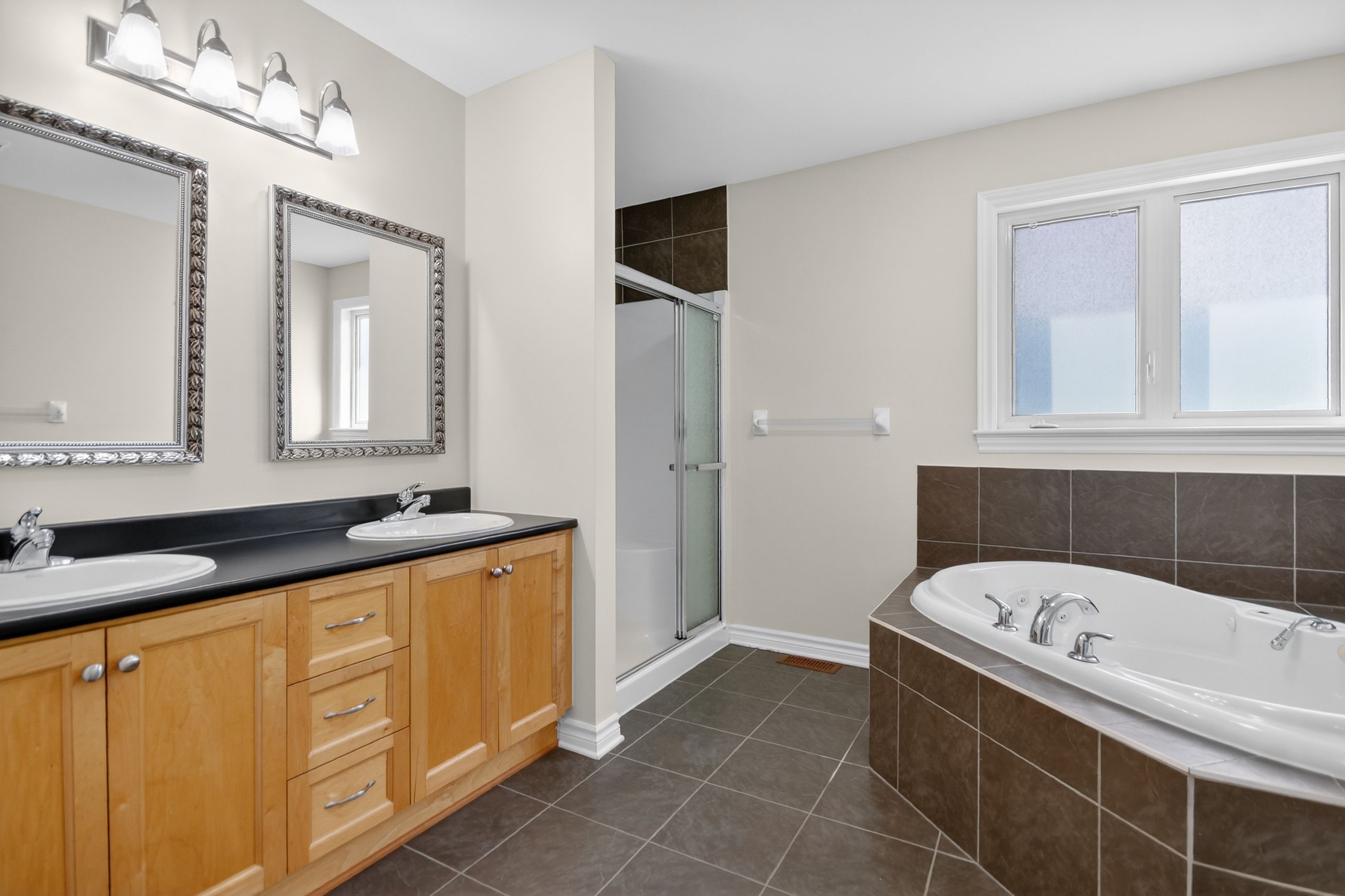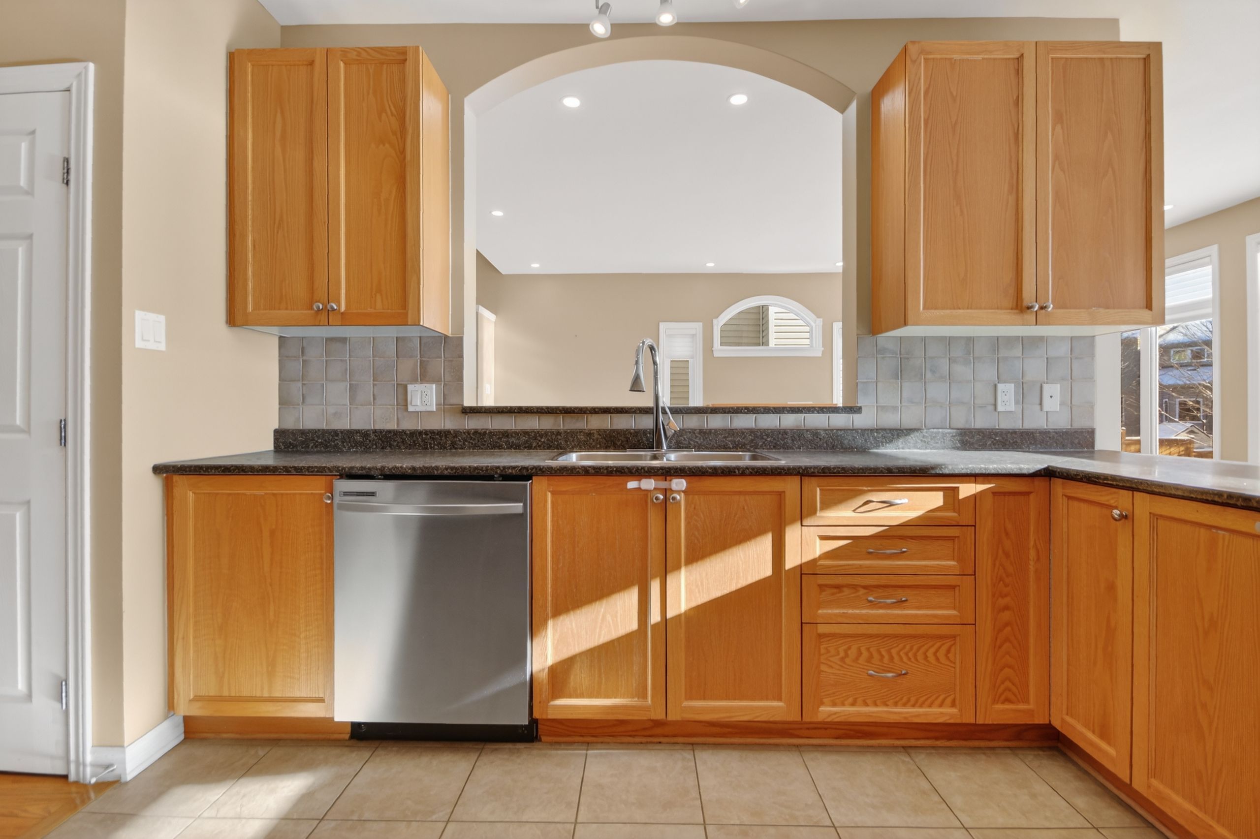 Well-maintained family home. This 4-bed, 3. 5-bath home is on a spacious fenced lot with a walk-out basement. Hardwood floor extends across both the main and second levels. Spacious light-filled living room with a gas fireplace and a pass-through to the kitchen creating an openness and functionality. Well designed kitchen with generous counter space, pots-and-pans drawers, and a wall of pantry cabinets. Eating area with patio doors to the deck that leads to the rear yard. Convenient main floor laundry room off the kitchen leads to the heated insulated garage. Generous primary bedroom boasts cathedral ceilings, large walk-in closet with a window, and a 5 piece ensuite bathroom. The finished walk-out basement is complete with a bright family rom, den with large window, 3pc bathroom, and 7'3" ceilings. Other features include: irrigation system (as-is, winterized but was not used by current owner), ac 17', roof 20', rented hwt 16', c-vac. Generator hook up in garage, gas bbq hook-up, shed, minutes to the scenic trans canada trail. Some photos have been virtually staged. 24 hour irrevocable on all offers.