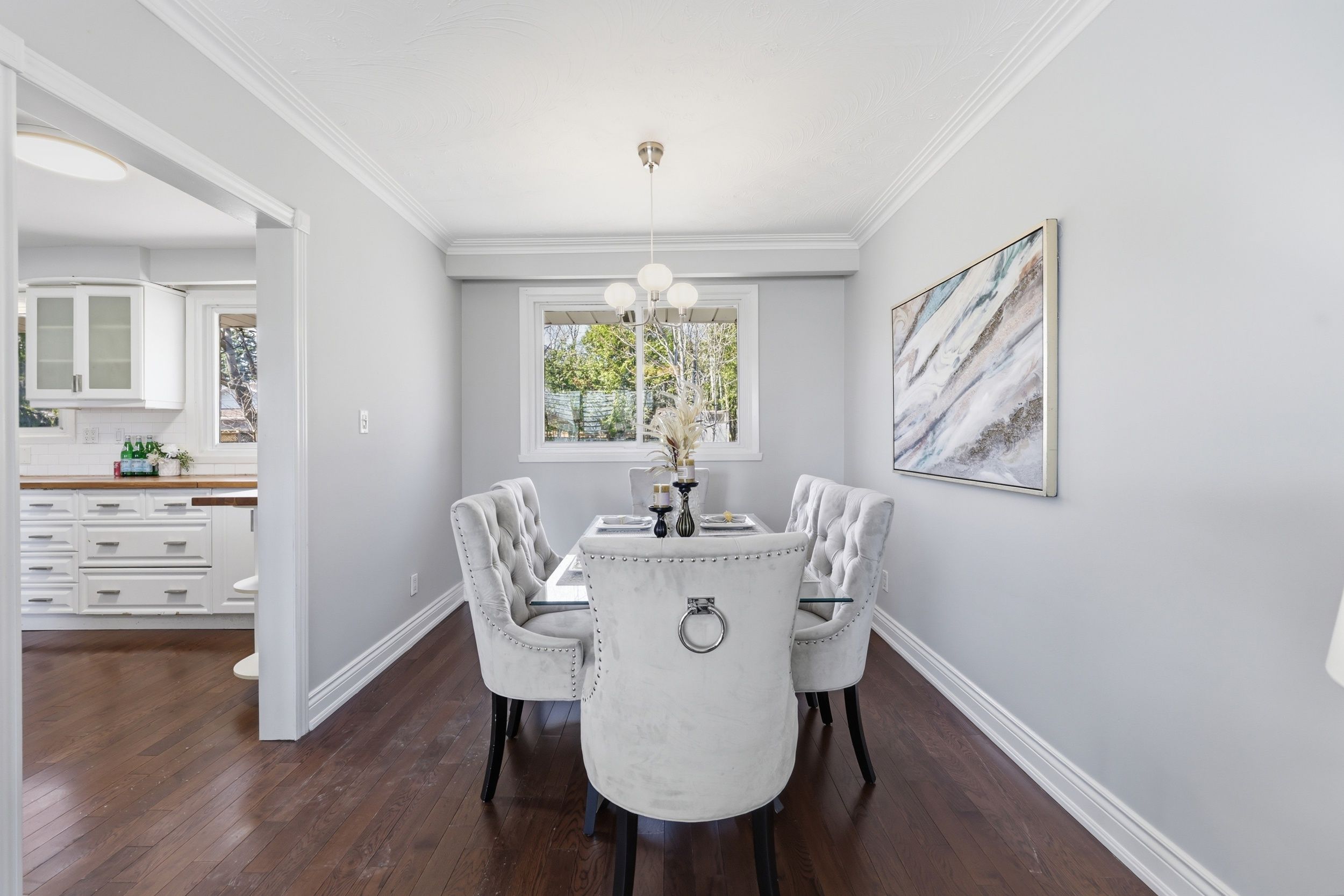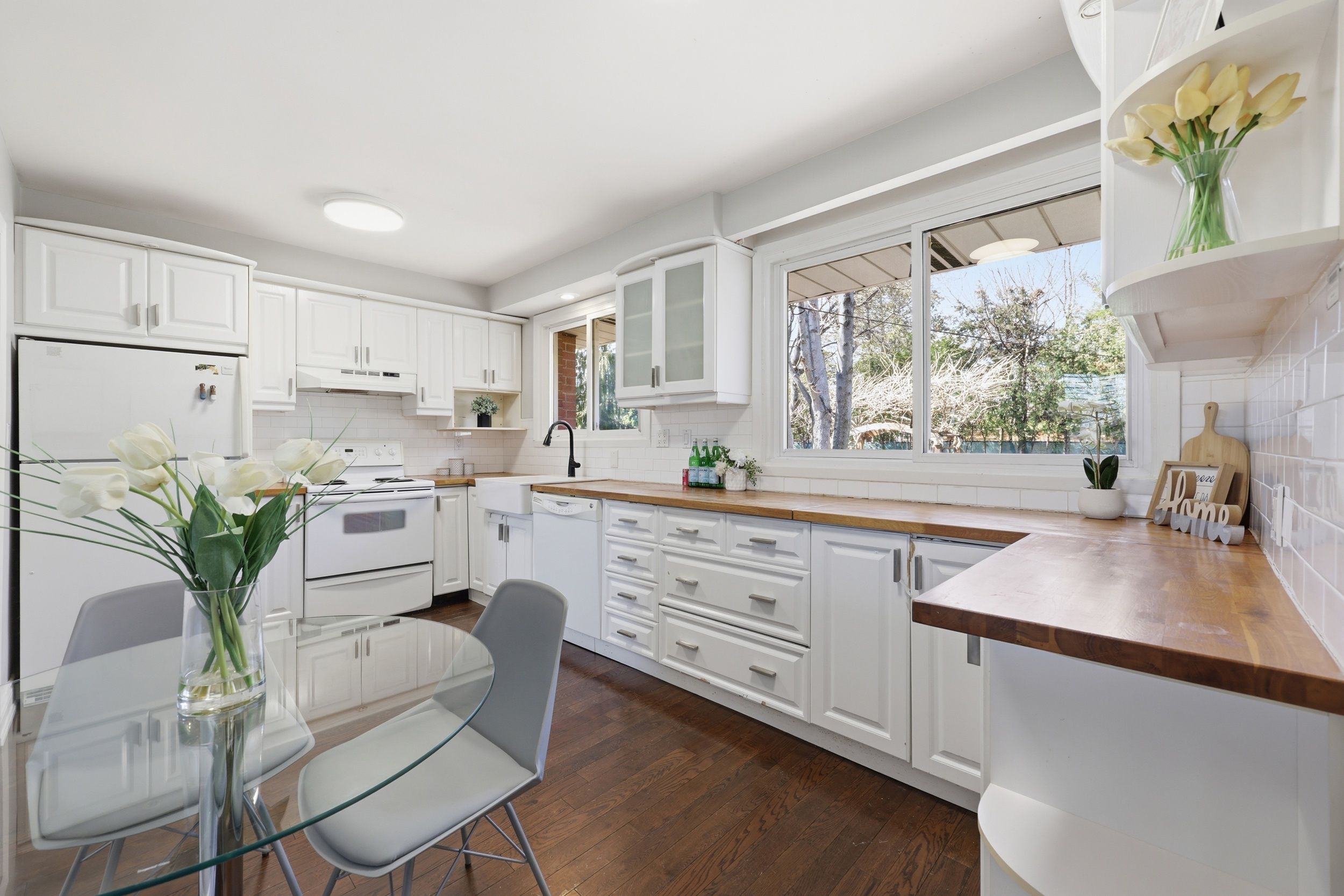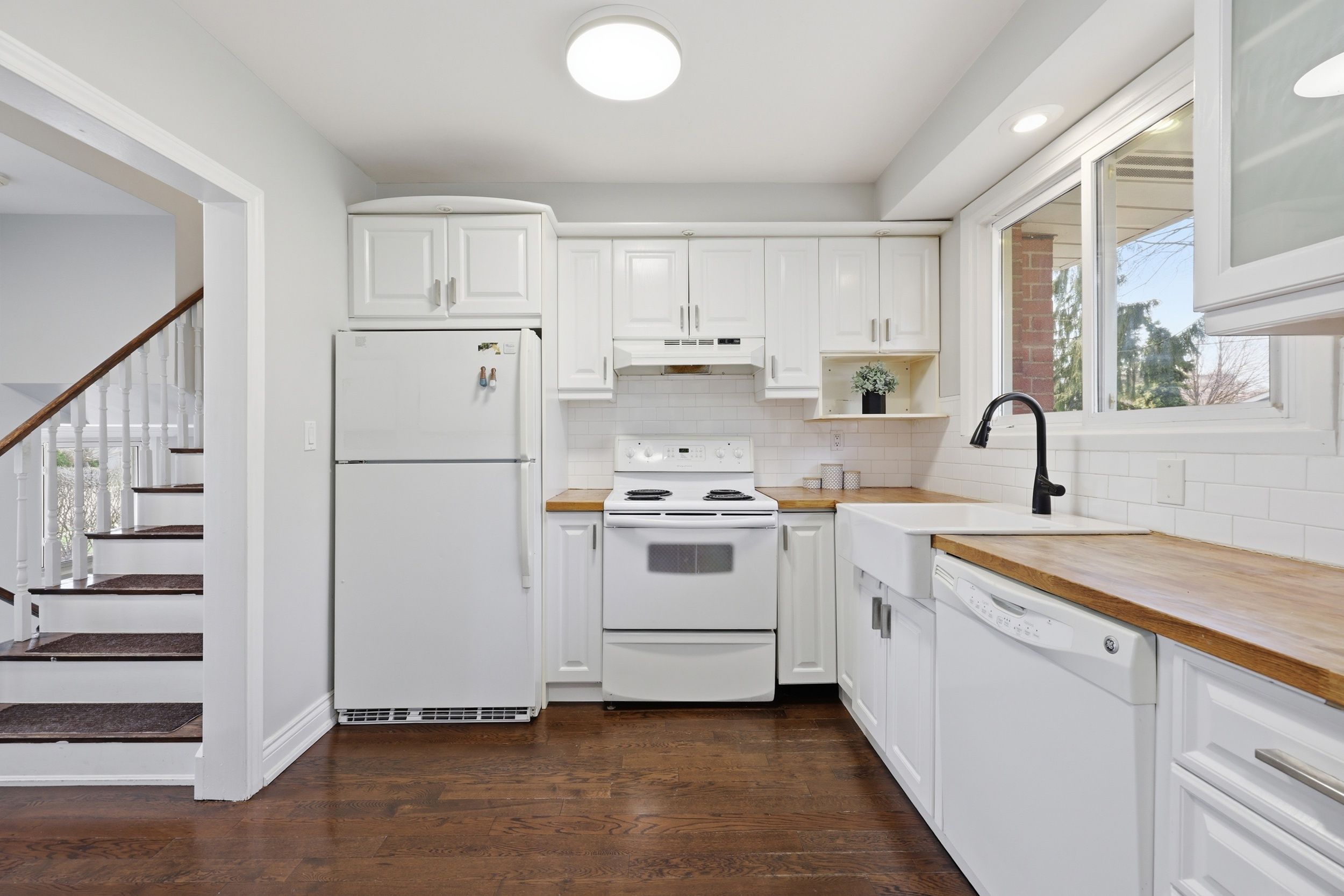 Well-kept and inviting home with hardwood and ceramic flooring throughout. Bright, upgraded kitchen with breakfast bar and ample space for family living. Mudroom includes a sleek french pocket door for added function. Private, tree-lined backyard perfect for entertaining, featuring a large deck and gas bbq connection. Fantastic location close to highly rated schools, parks, trails, shopping, and convenient highway and transit access.