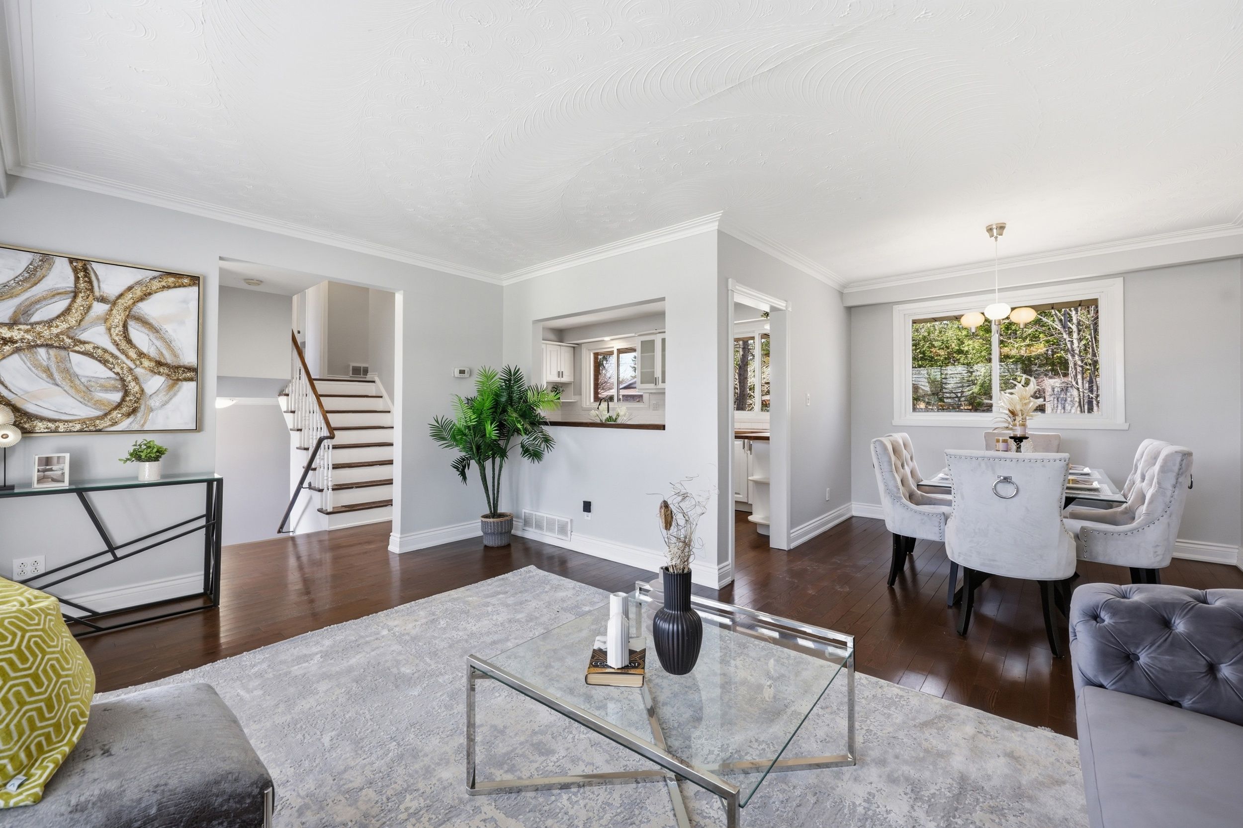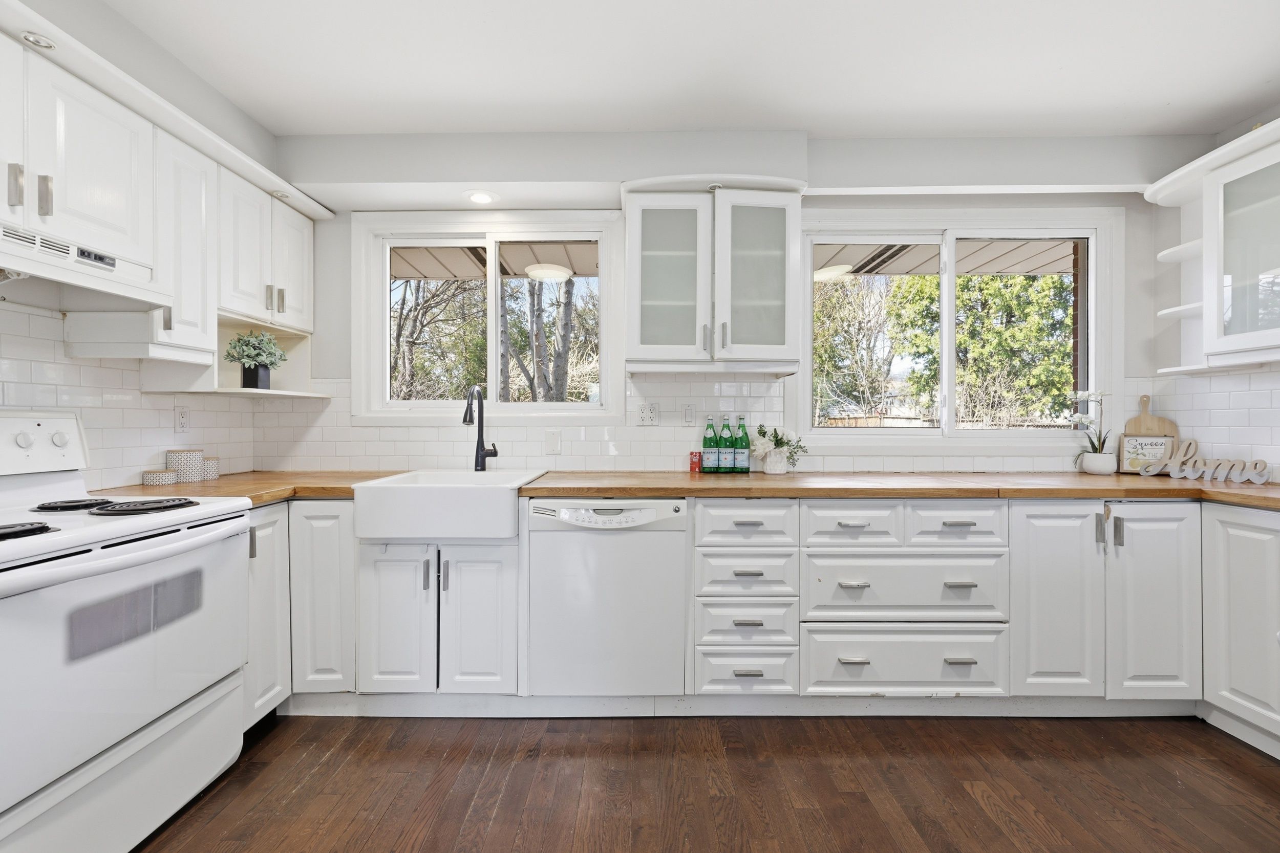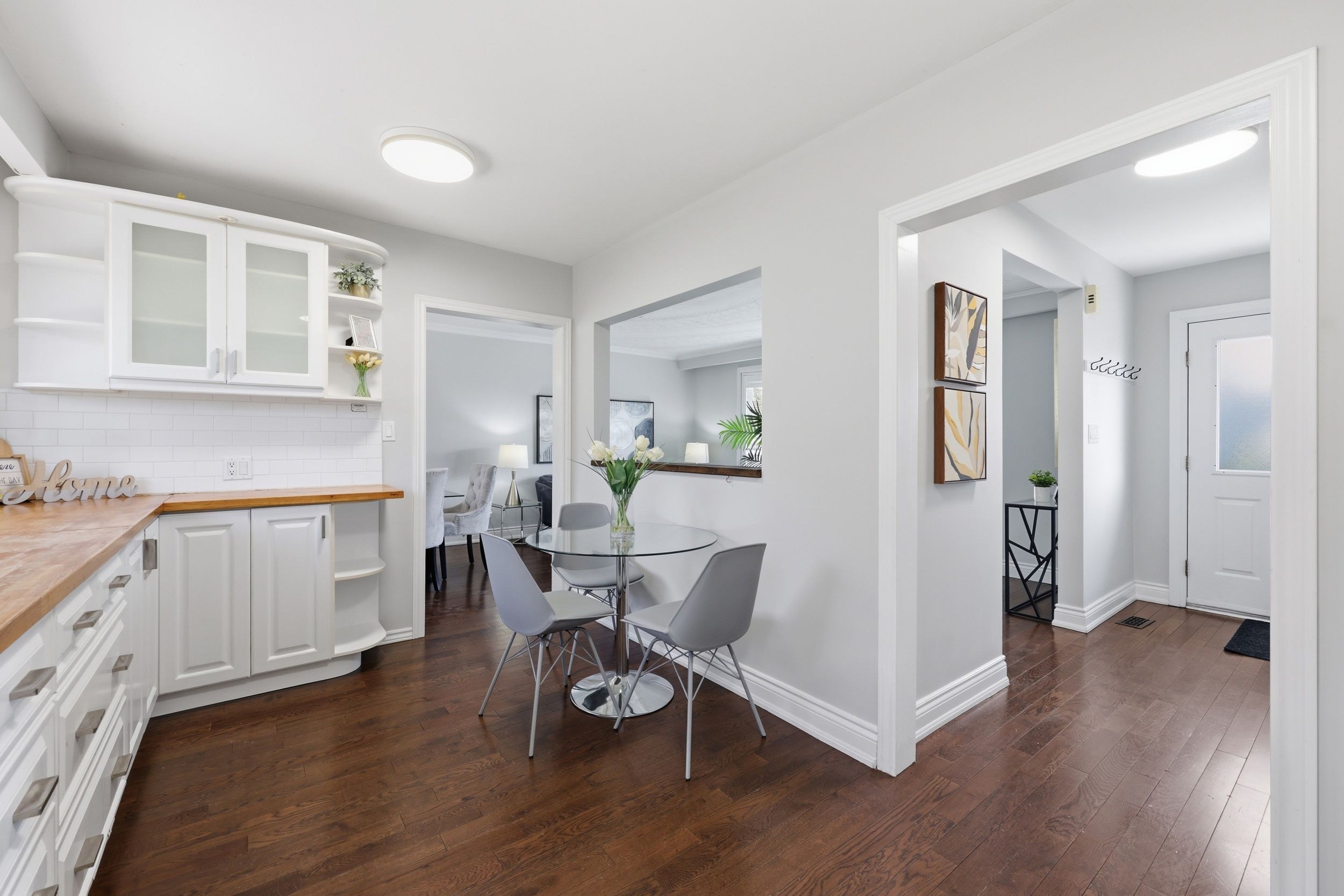 Well-kept and inviting home with hardwood and ceramic flooring throughout. Bright, upgraded kitchen with breakfast bar and ample space for family living. Mudroom includes a sleek french pocket door for added function. Private, tree-lined backyard perfect for entertaining, featuring a large deck and gas bbq connection. Fantastic location close to highly rated schools, parks, trails, shopping, and convenient highway and transit access.
