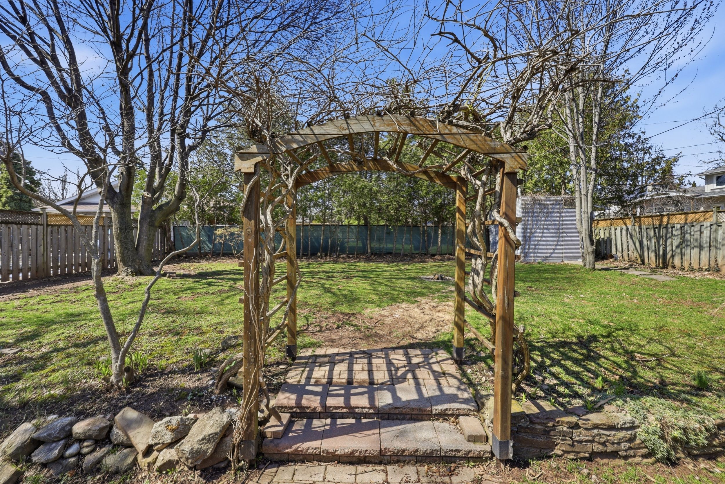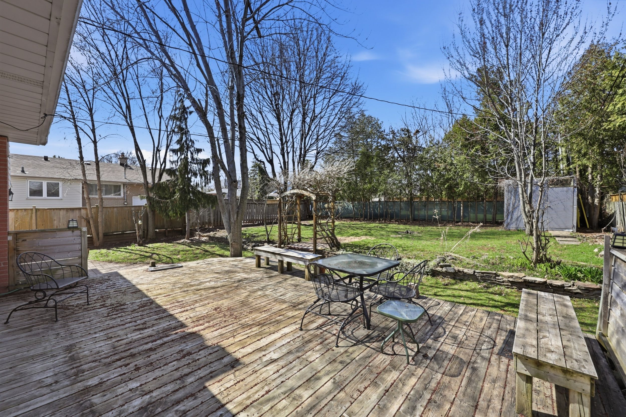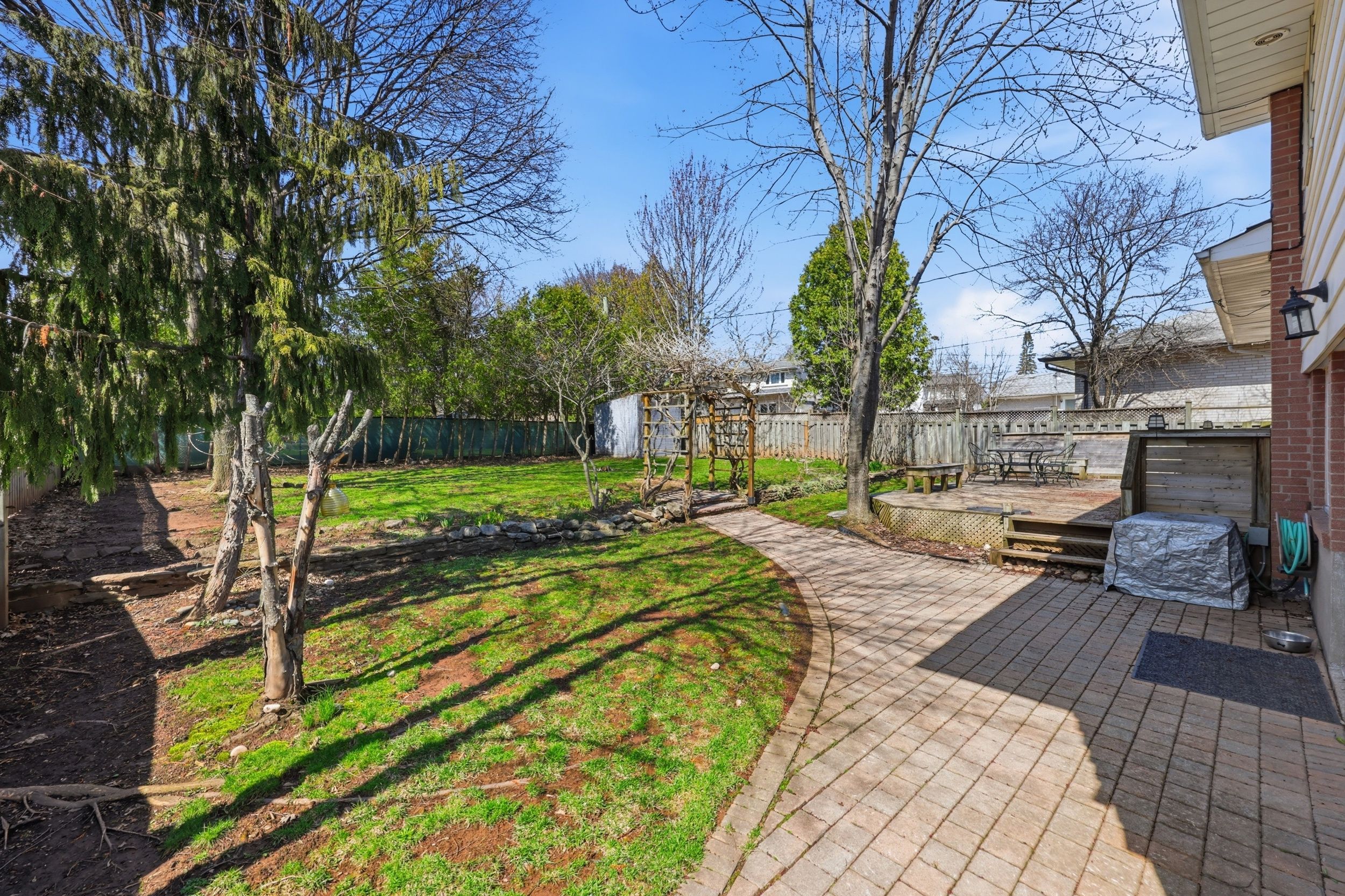 • Private tree-lined backyard with a large deck for entertaining.