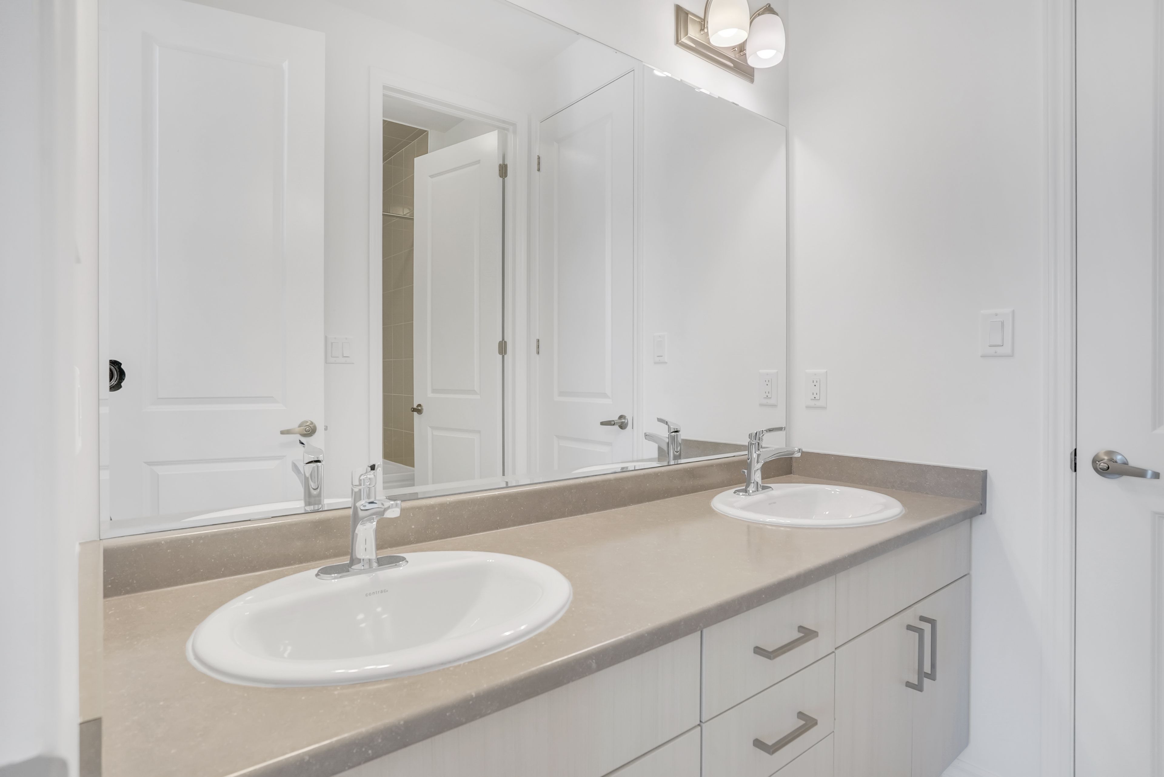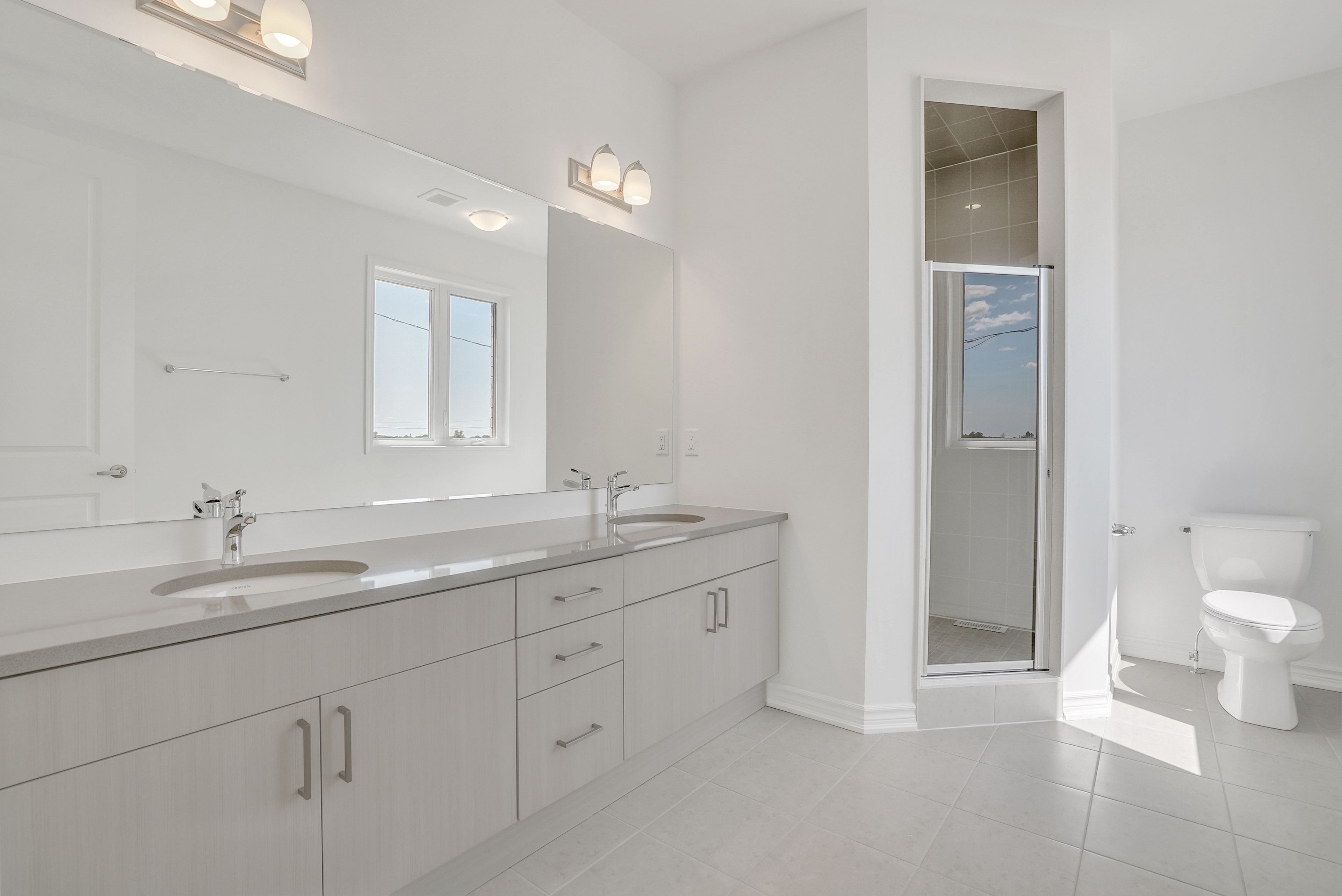 • Primary suite features dual sinks, walk-in shower, and luxury elements.
