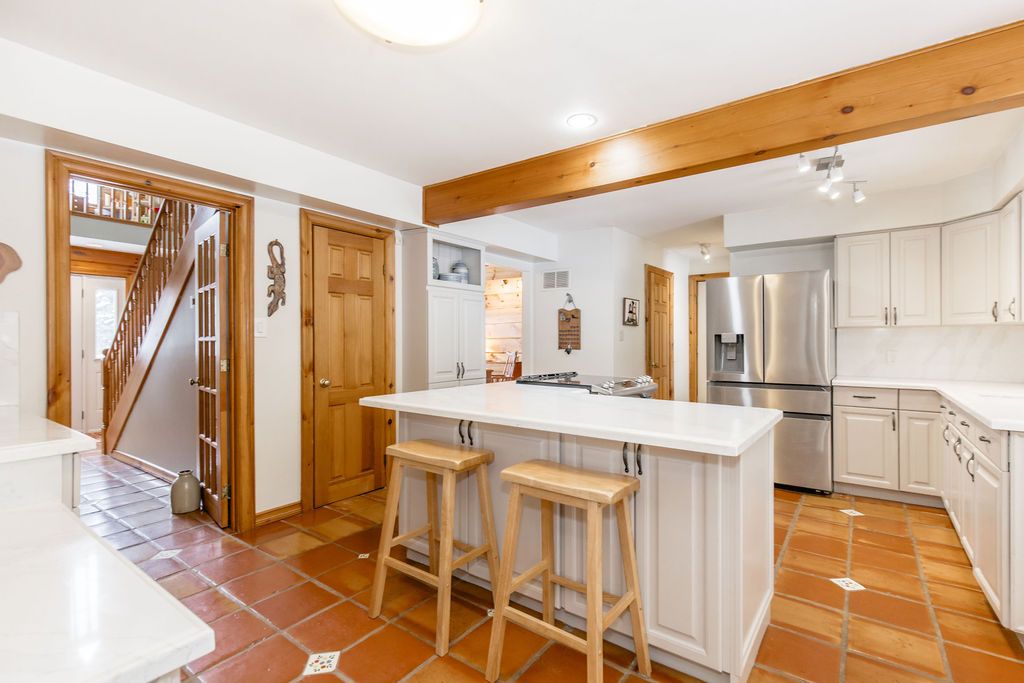 • Spacious living area with updated kitchen featuring quartz countertops and new appliances.