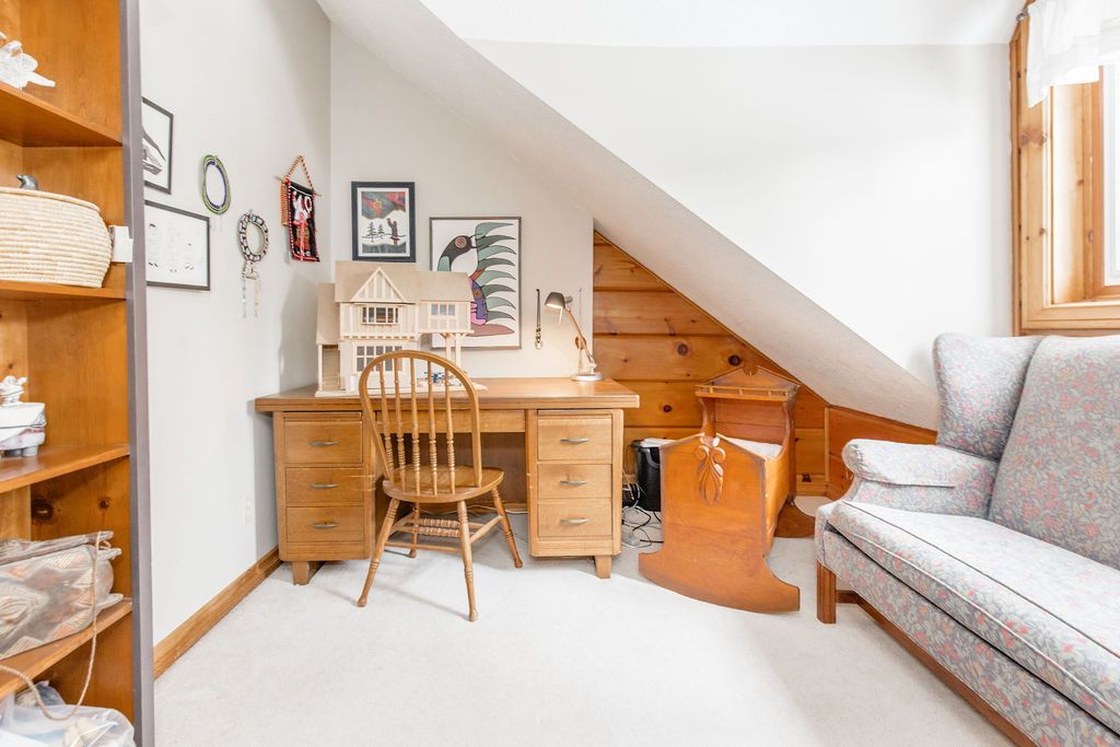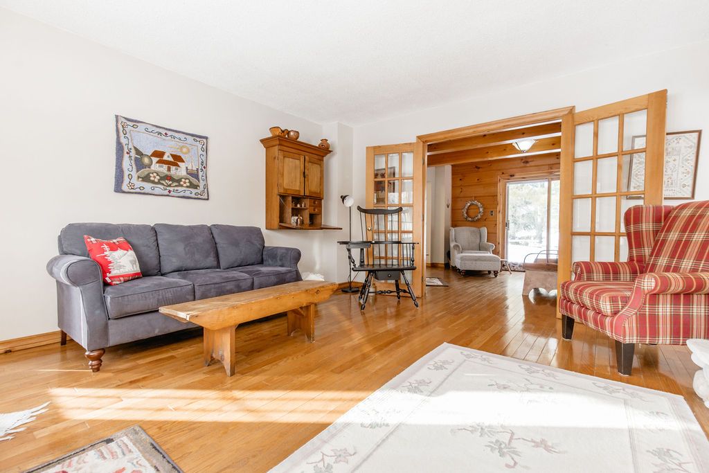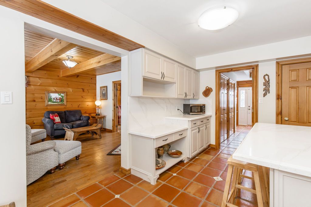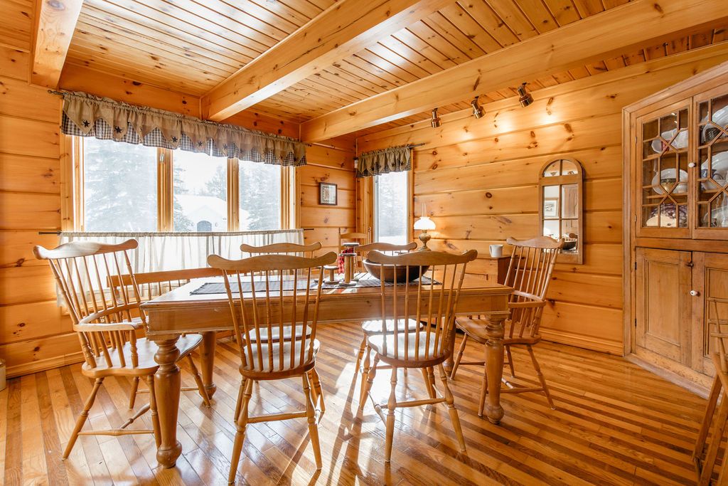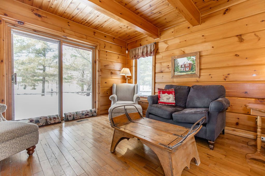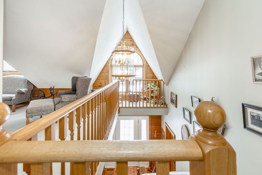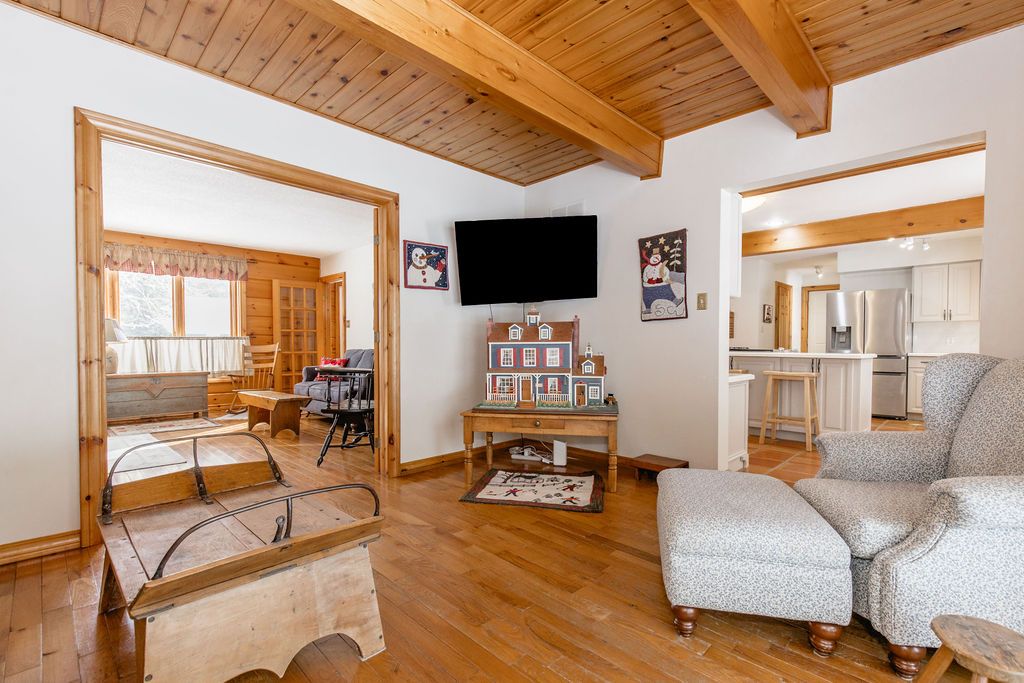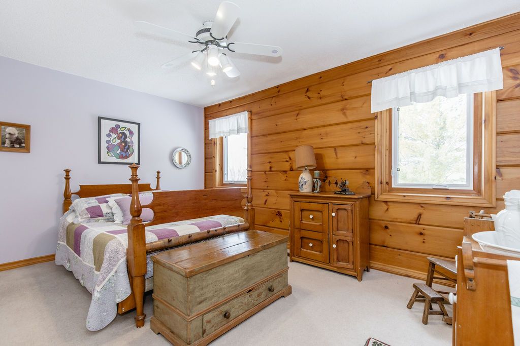Stunning log home nestled on a large, private lot in a sought-after estate community, surrounded by mature trees and natural beauty in every season. Built in 1989, this warm and inviting home offers 3 bedrooms, 2 full bathrooms plus a powder room, and approximately 2,371 sq ft of finished living space, with an additional 260 sq ft of finished space above the garage. This is the kind of home where winter evenings are spent watching the snow fall through the trees, getting cozy by the gas fireplace after a day of skiing or snowshoeing, and summer nights are made for long walks through the quiet estate neighbourhood. A true four-season lifestyle. The updated kitchen features new quartz countertops and all new stainless steel appliances, including top-of-the-line fridge and stove just two years old. The primary bedroom includes an updated ensuite with soaker tub, separate shower, and modern vanity. The main floor is designed for connection, with hardwood flooring throughout the living room, family room, and formal dining room, and durable tile in the kitchen, hallway, powder room, and laundry room. Enjoy a gas fireplace with stone surround and wood beam mantle, a family room with sliding doors to the backyard, and french doors opening into the living room. Main-floor laundry includes washer, dryer, hot water tank, and direct access to the backyard. Upstairs, an open loft provides extra space for a home office or reading nook, along with two oversized bedrooms with double closets and a spacious primary bedroom. Additional features include, furnace- two years old - serviced annually, 200-amp electrical panel, owned water softener, reverse osmosis system, alarm system, irrigation system, 18 new windows, new front door, cedar shake roof, large rear deck, shed, double car garage with inside entry, garage door openers, and driveway parking for four vehicles. Move north to a beautiful lifestyle.