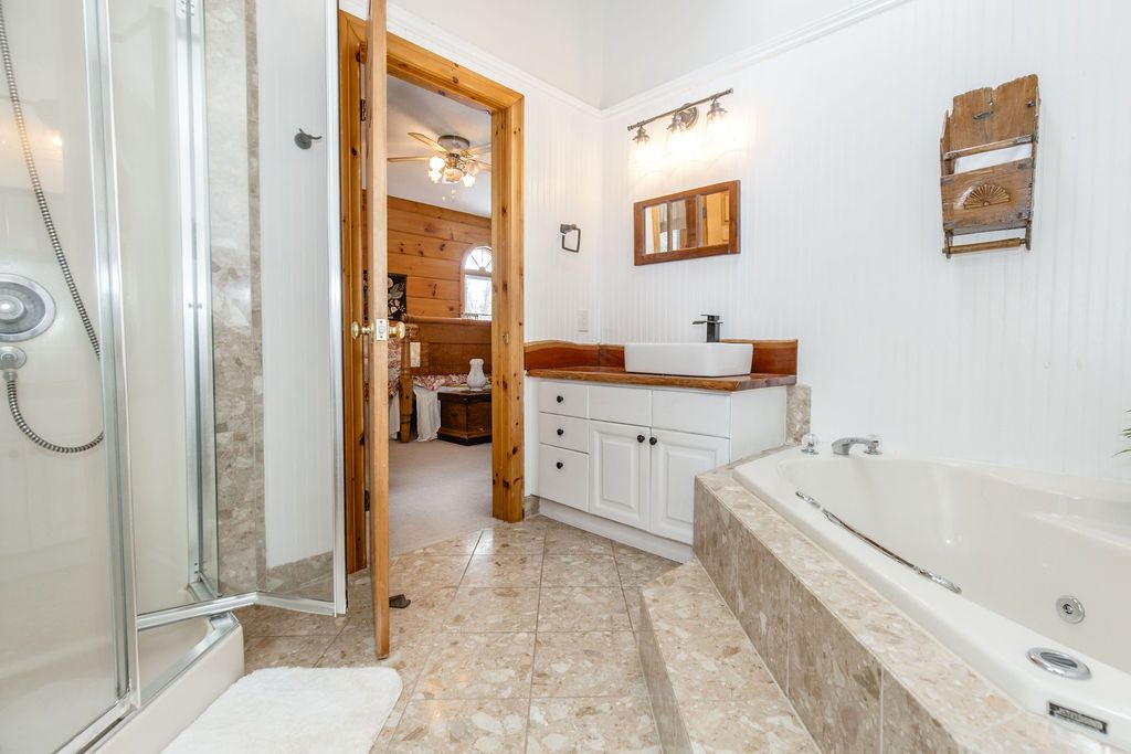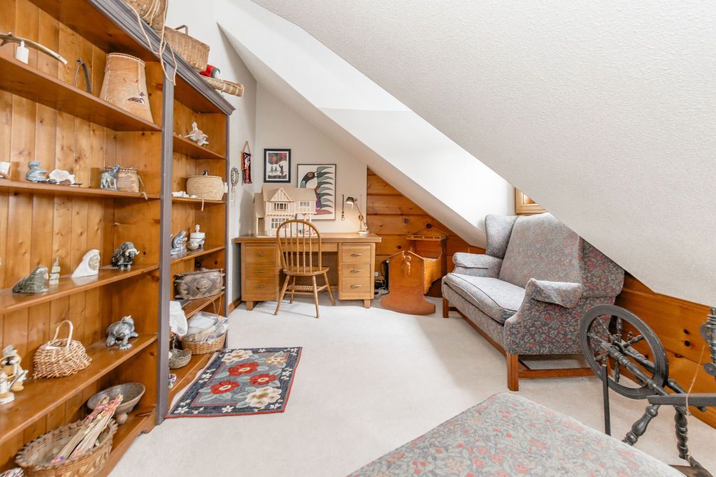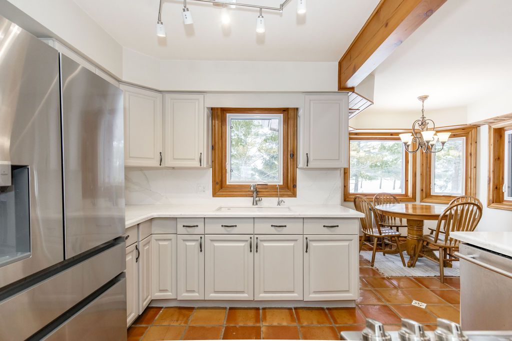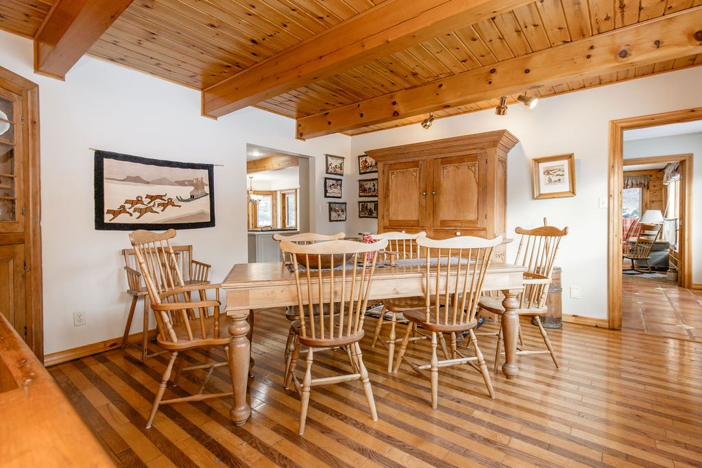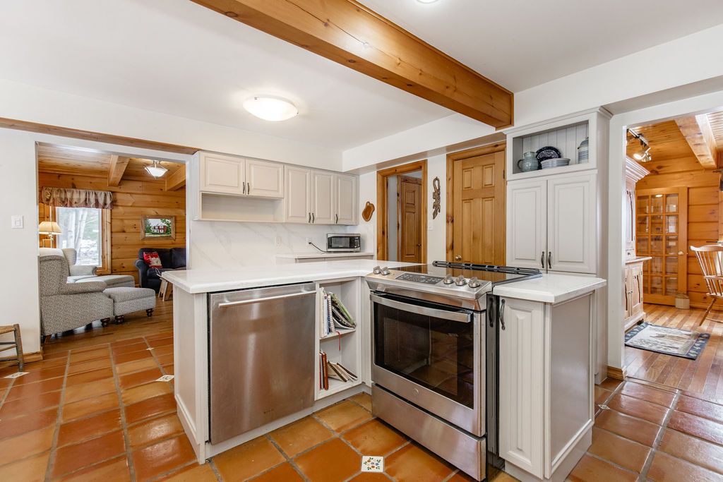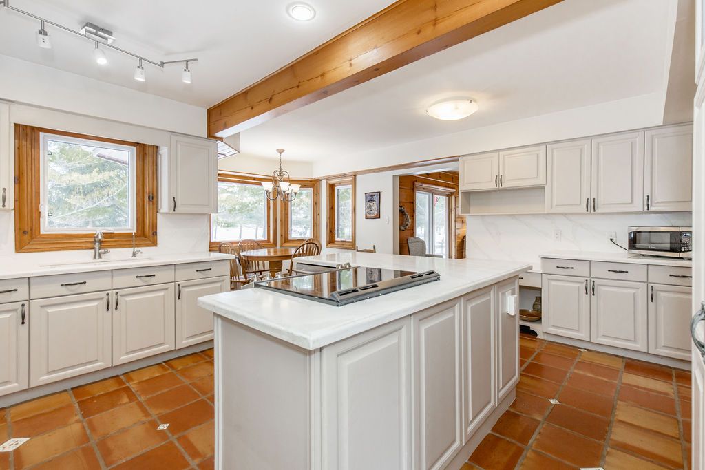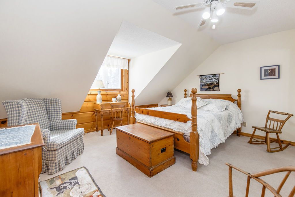 Stunning log home nestled on a large, private lot in a sought-after estate community, surrounded by mature trees and natural beauty in every season. Built in 1989, this warm and inviting home offers 3 bedrooms, 2 full bathrooms plus a powder room, and approximately 2,371 sq ft of finished living space, with an additional 260 sq ft of finished space above the garage. This is the kind of home where winter evenings are spent watching the snow fall through the trees, getting cozy by the gas fireplace after a day of skiing or snowshoeing, and summer nights are made for long walks through the quiet estate neighbourhood. A true four-season lifestyle. The updated kitchen features new quartz countertops and all new stainless steel appliances, including top-of-the-line fridge and stove just two years old. The primary bedroom includes an updated ensuite with soaker tub, separate shower, and modern vanity. The main floor is designed for connection, with hardwood flooring throughout the living room, family room, and formal dining room, and durable tile in the kitchen, hallway, powder room, and laundry room. Enjoy a gas fireplace with stone surround and wood beam mantle, a family room with sliding doors to the backyard, and french doors opening into the living room. Main-floor laundry includes washer, dryer, hot water tank, and direct access to the backyard. Upstairs, an open loft provides extra space for a home office or reading nook, along with two oversized bedrooms with double closets and a spacious primary bedroom. Additional features include, furnace- two years old - serviced annually, 200-amp electrical panel, owned water softener, reverse osmosis system, alarm system, irrigation system, 18 new windows, new front door, cedar shake roof, large rear deck, shed, double car garage with inside entry, garage door openers, and driveway parking for four vehicles. Move north to a beautiful lifestyle.