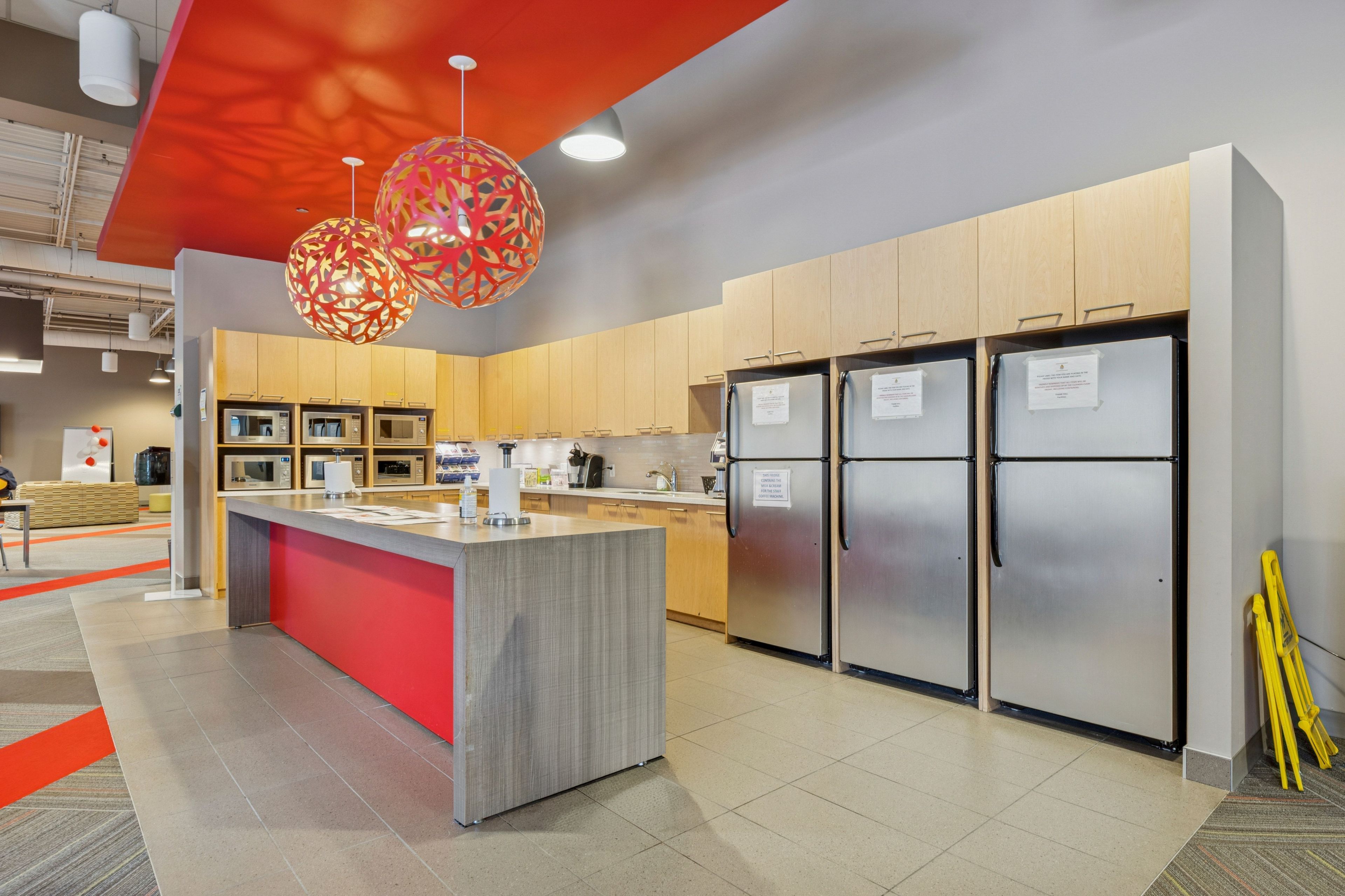 • Large kitchen/cafeteria perfect for team gatherings and events.