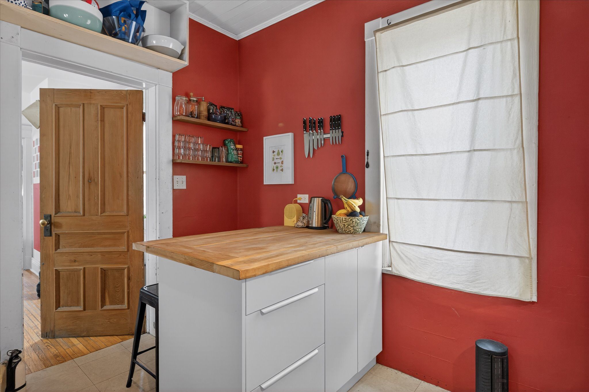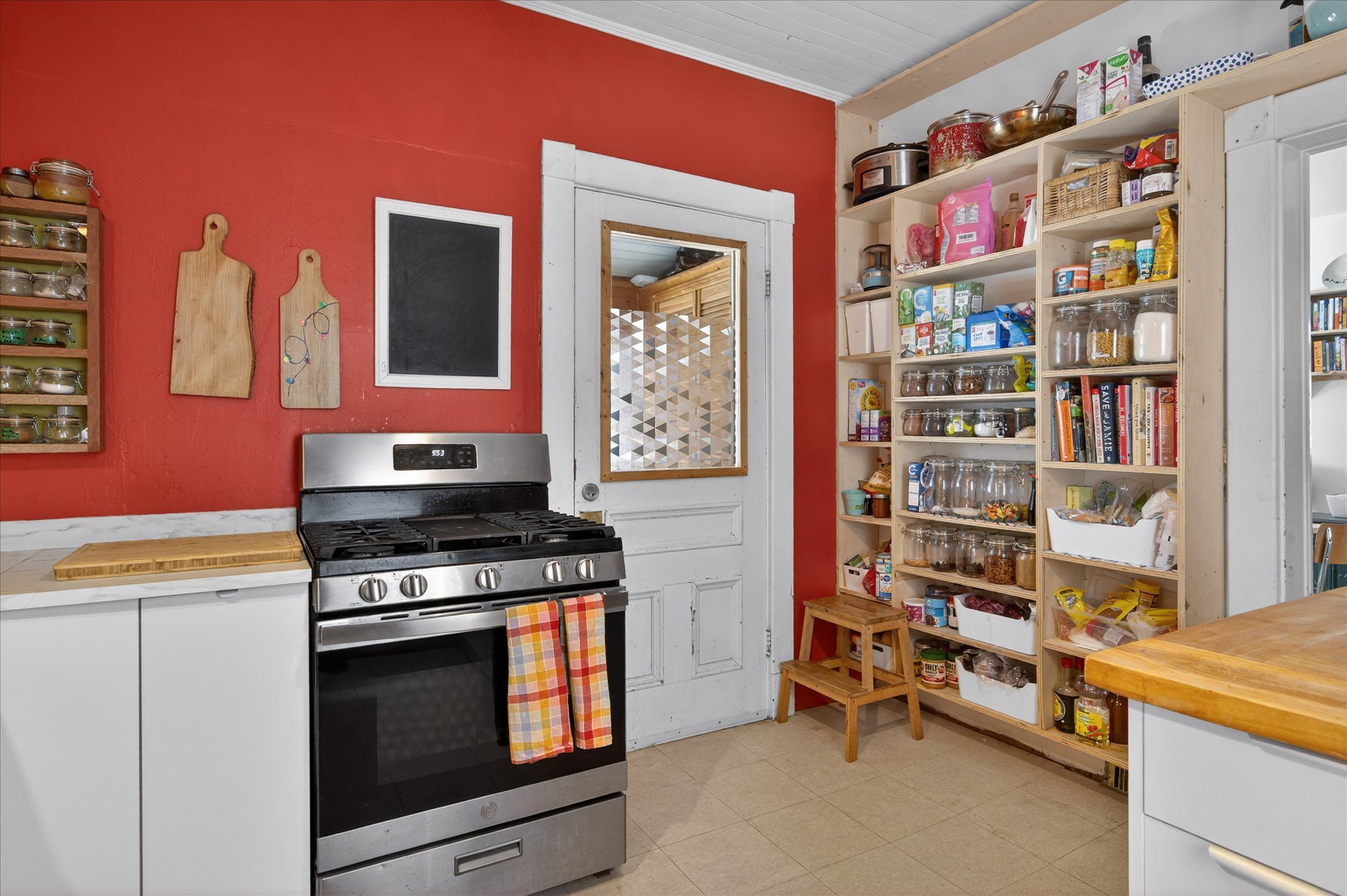 • Spacious kitchen with ample cupboard space and pantry access.