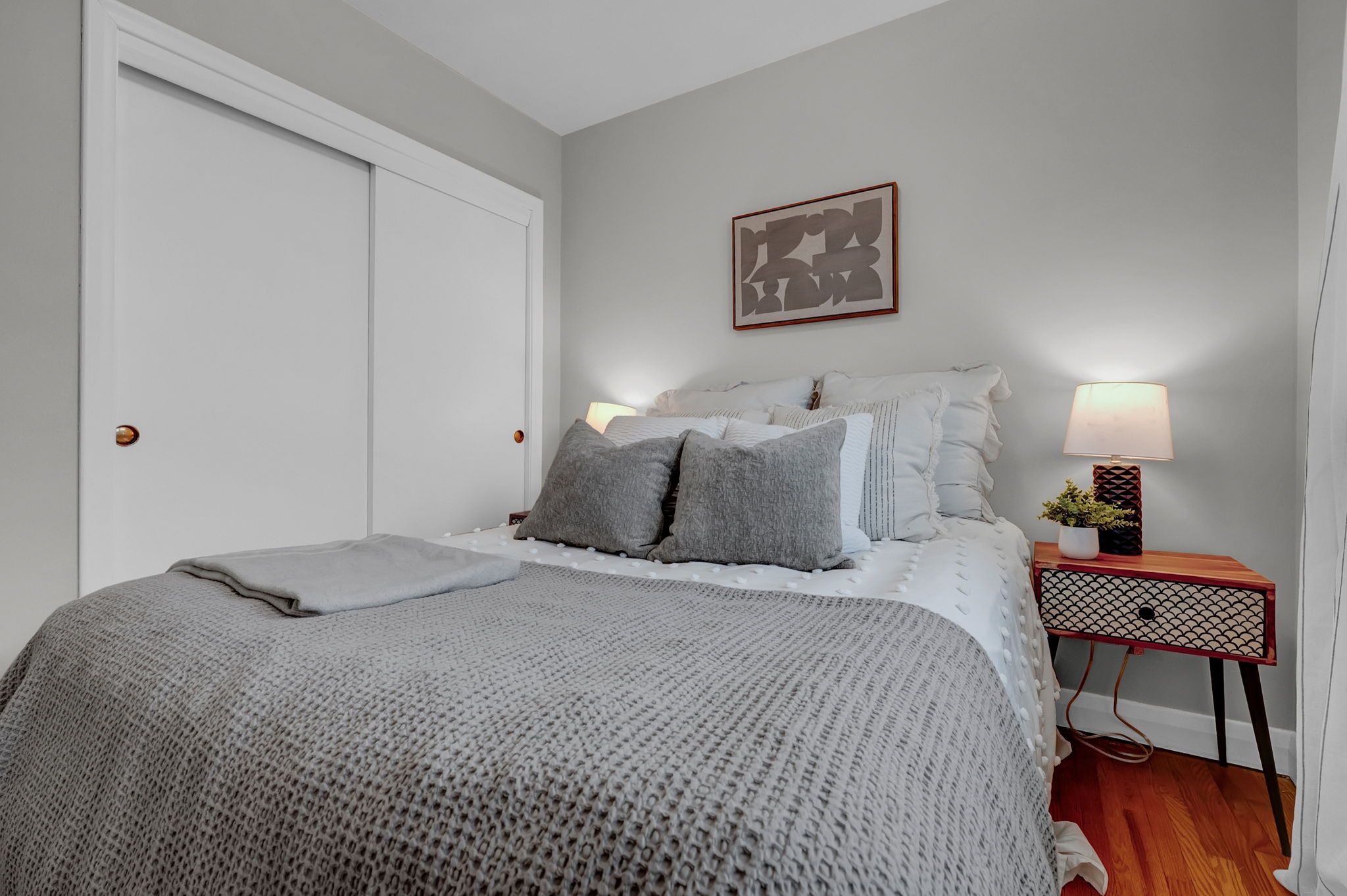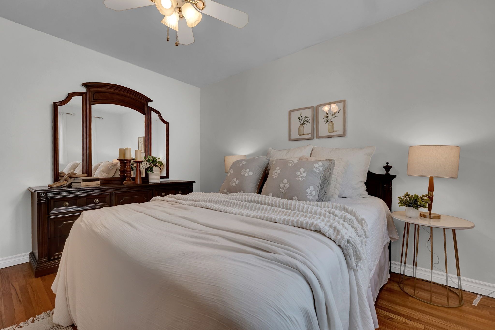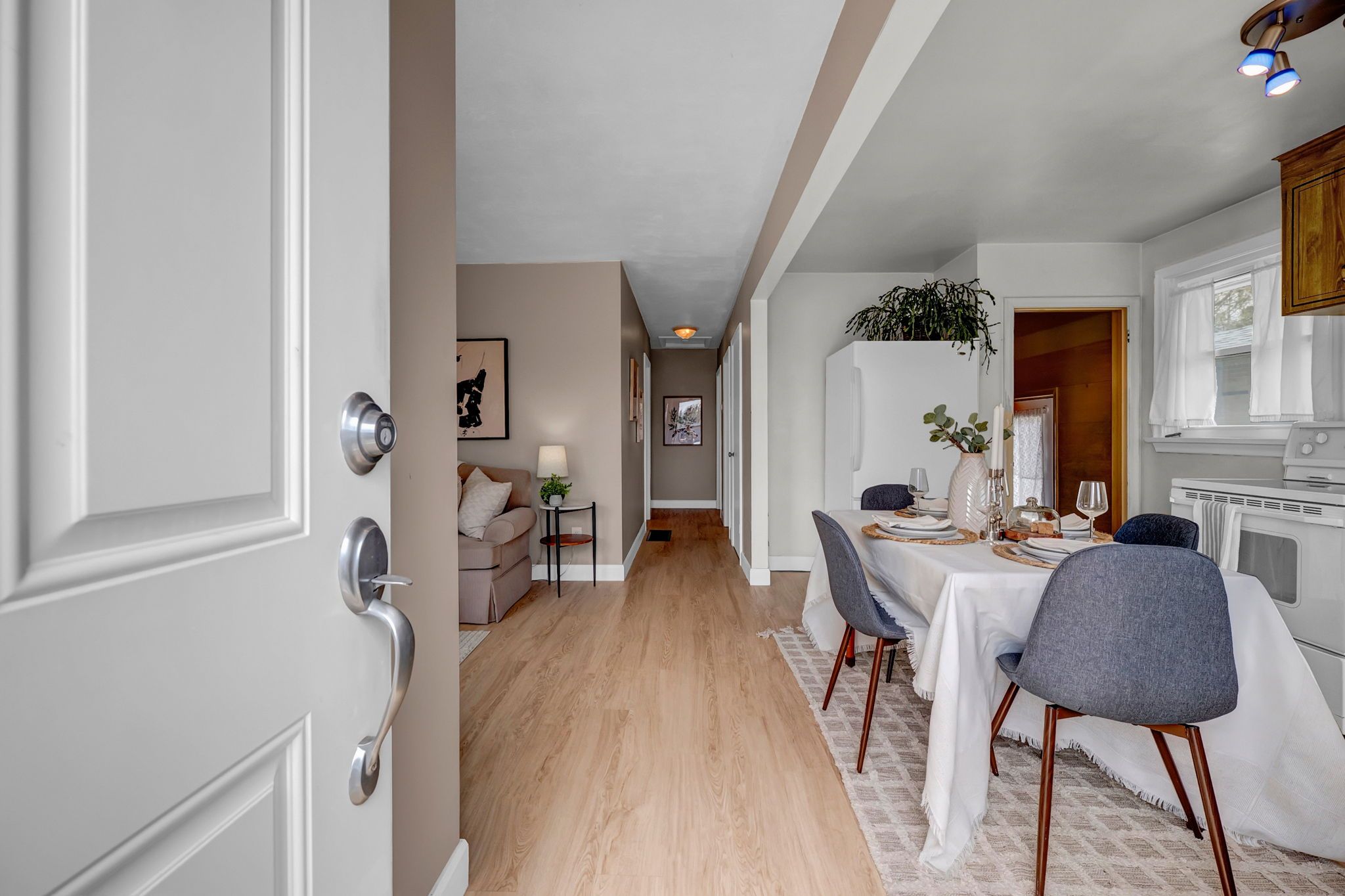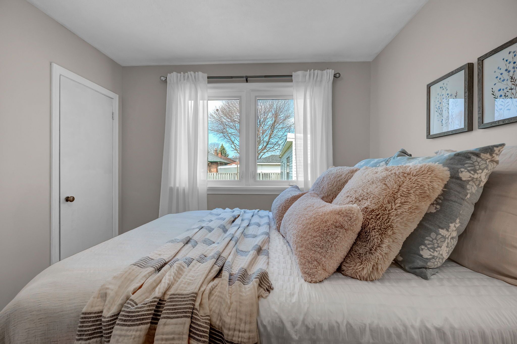 • Bright main floor layout with large windows and classic bathroom.