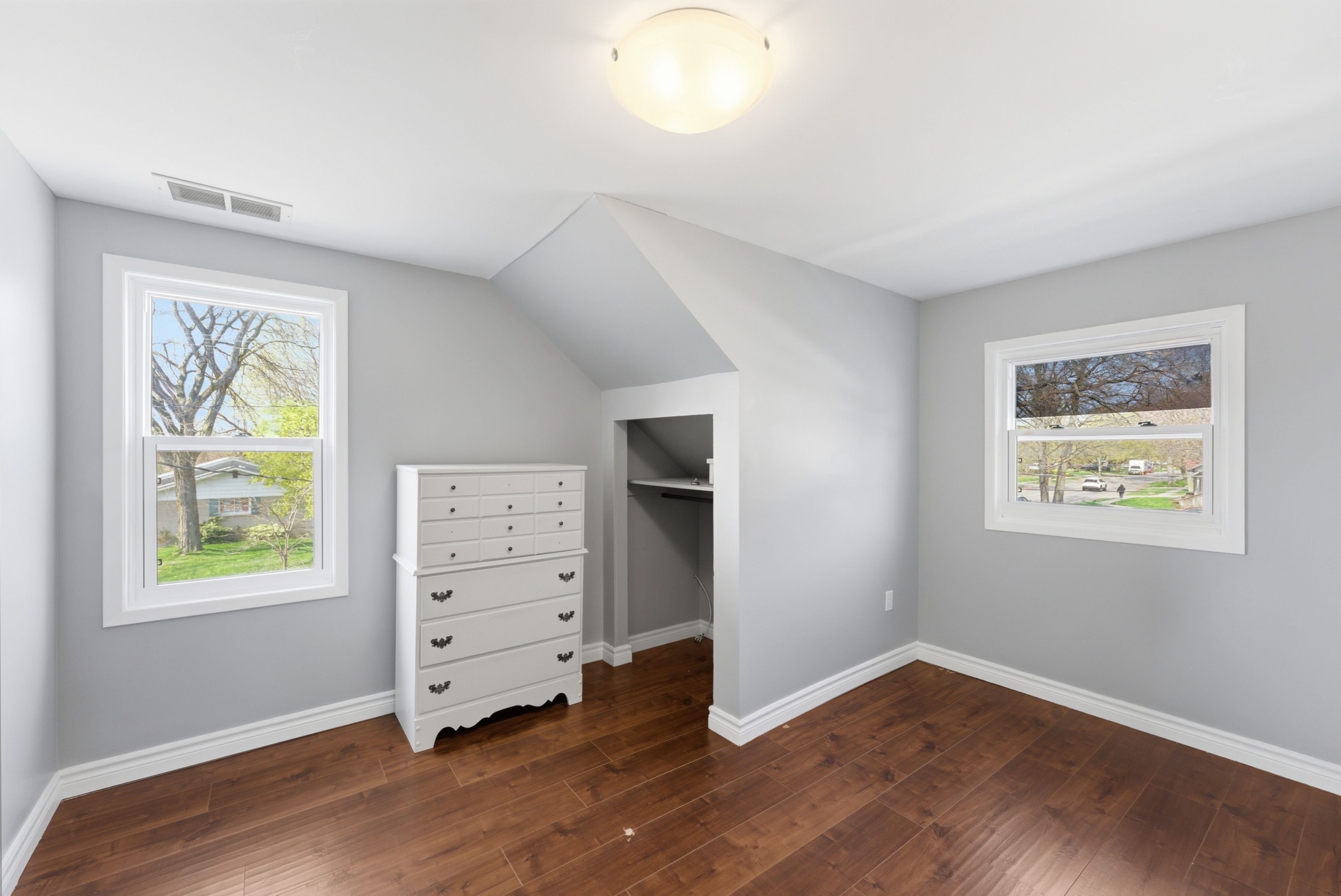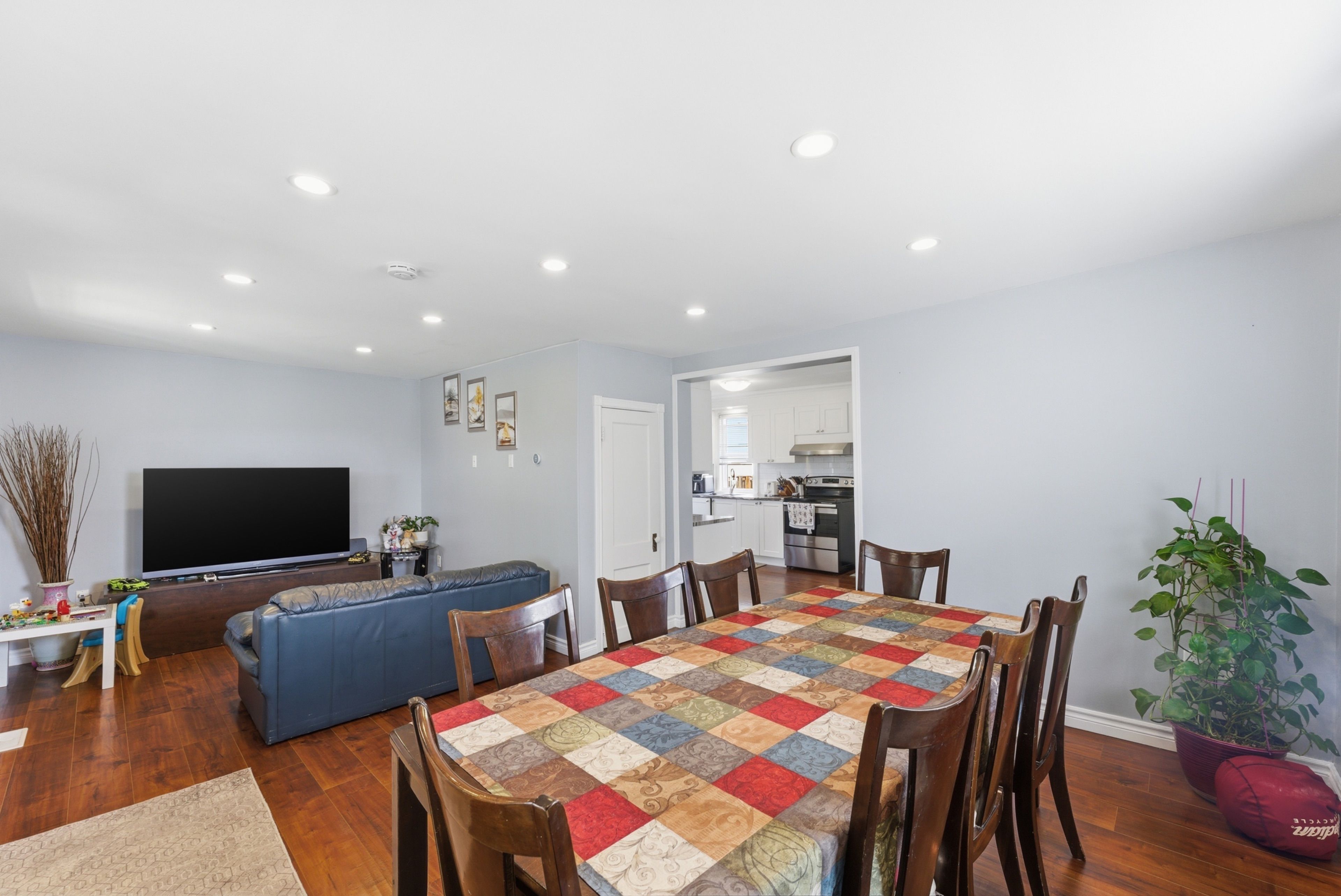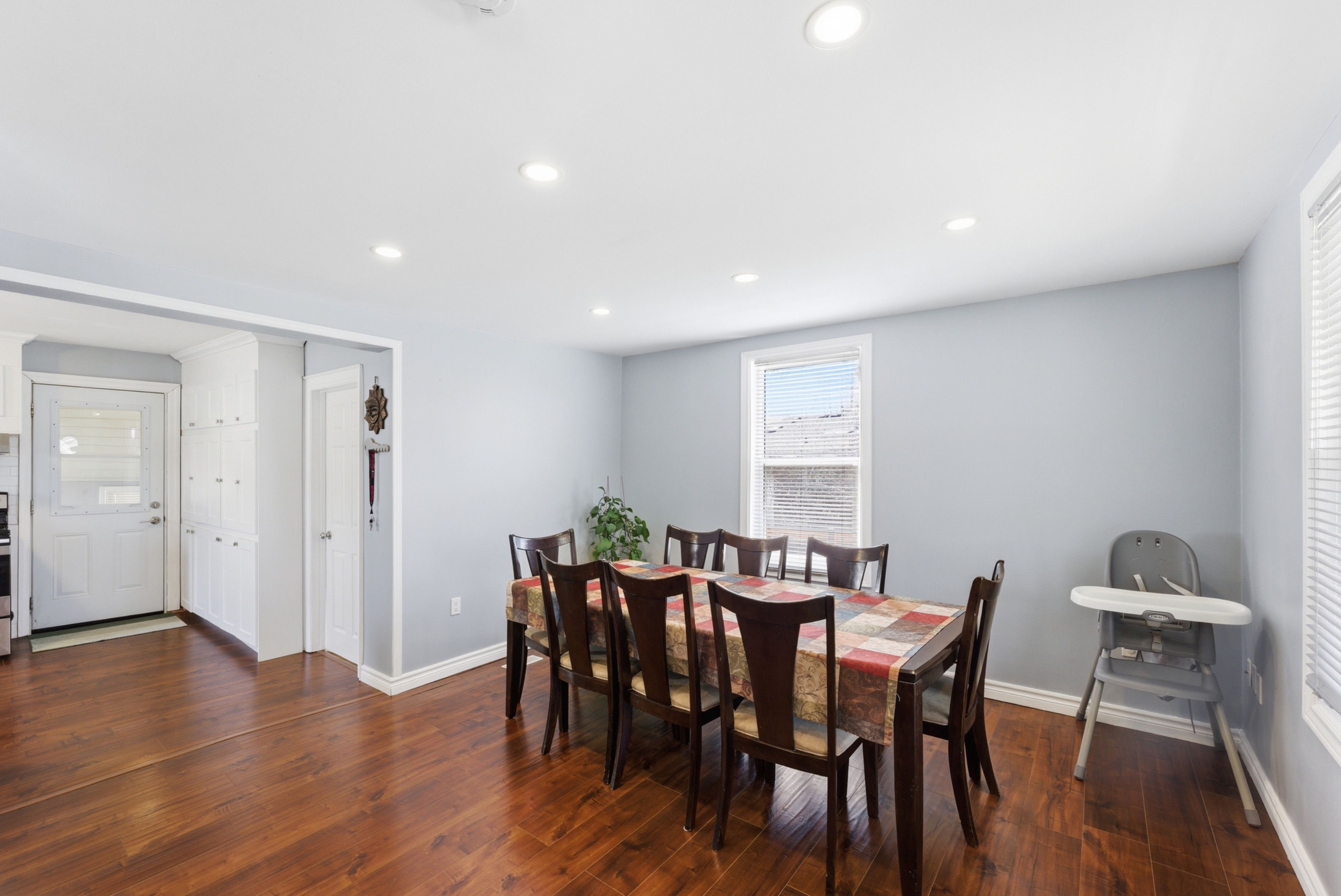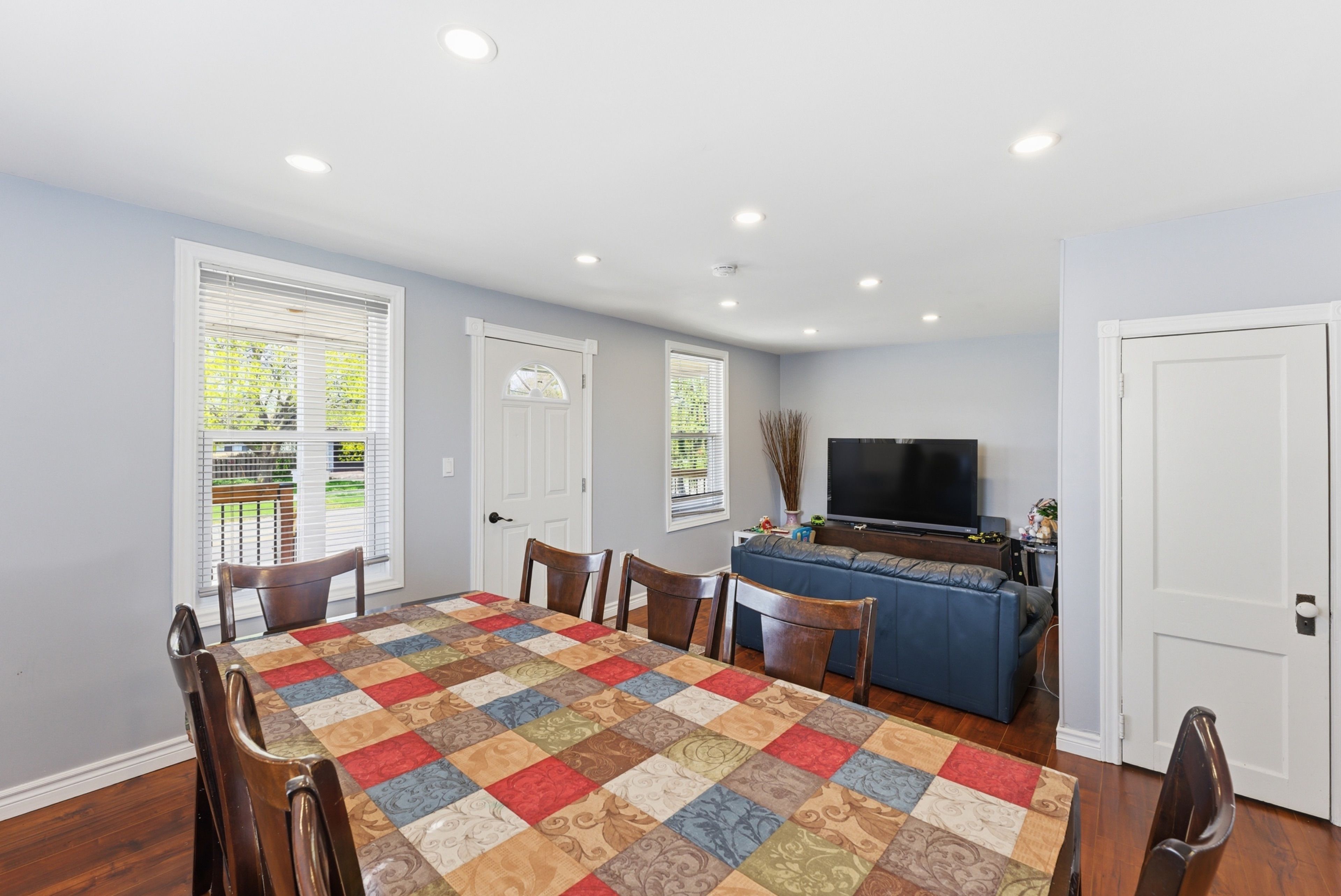 • Bright living and dining area with fresh paint for a clean feel.