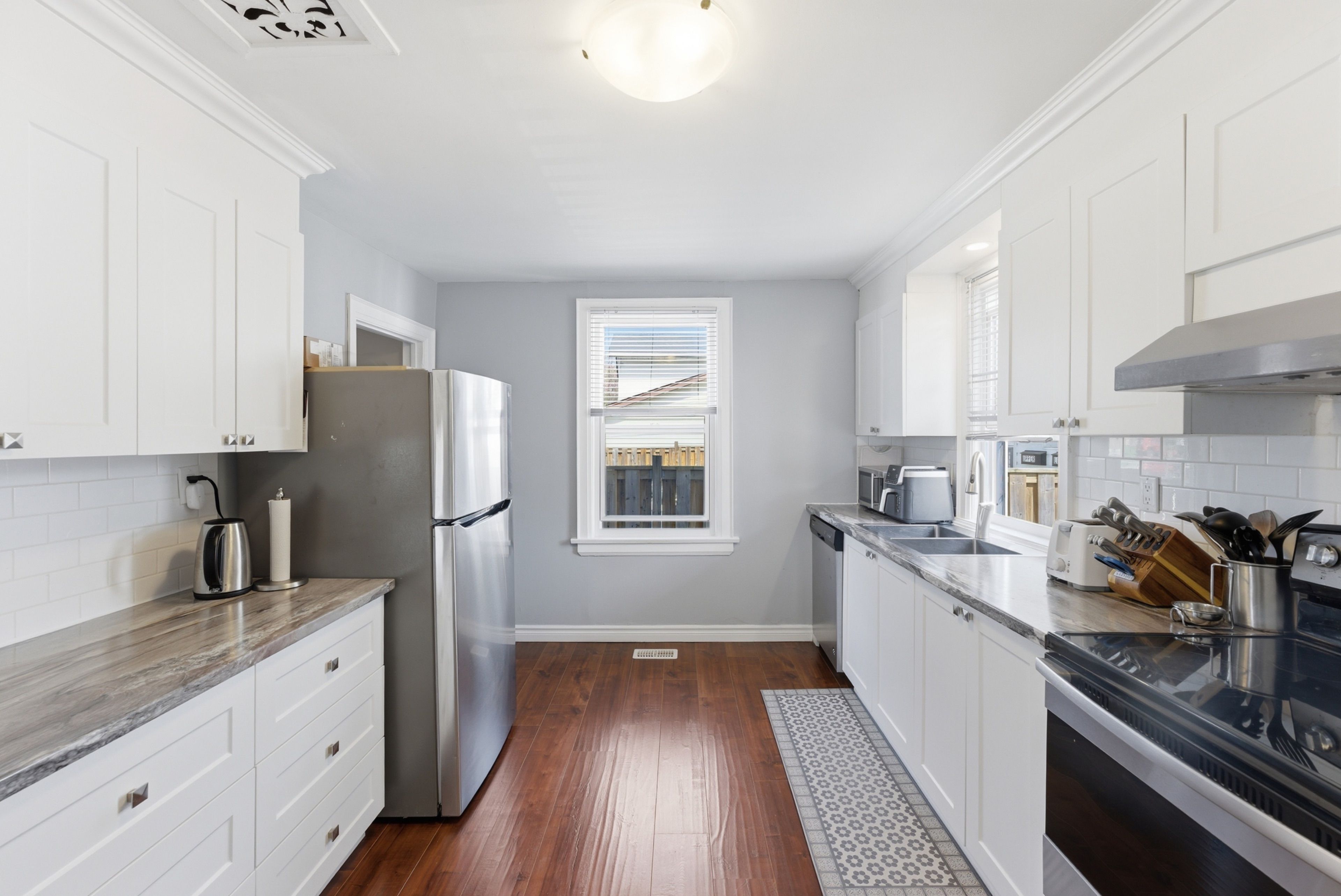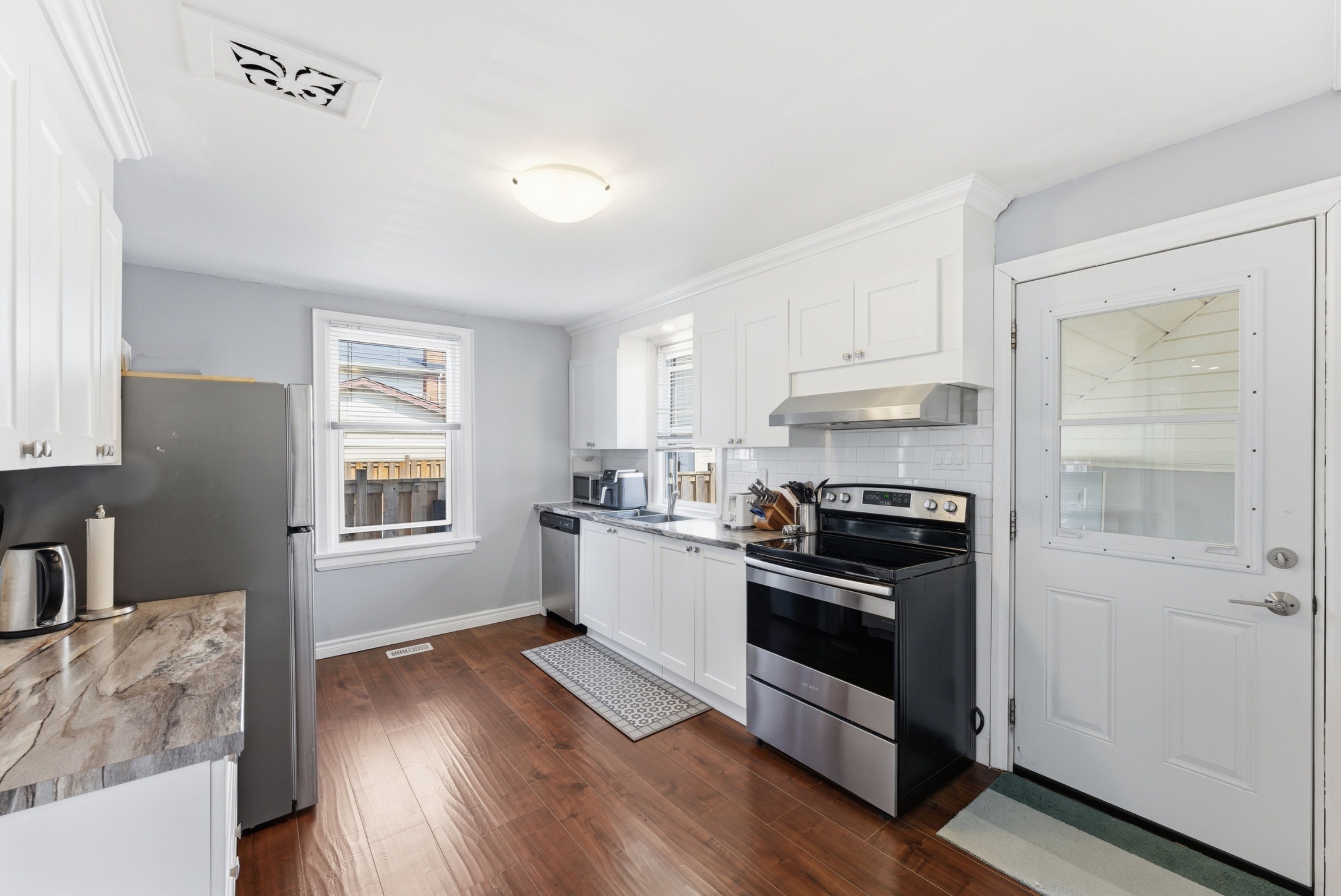 • Updated kitchen with ample cabinetry and contemporary design.