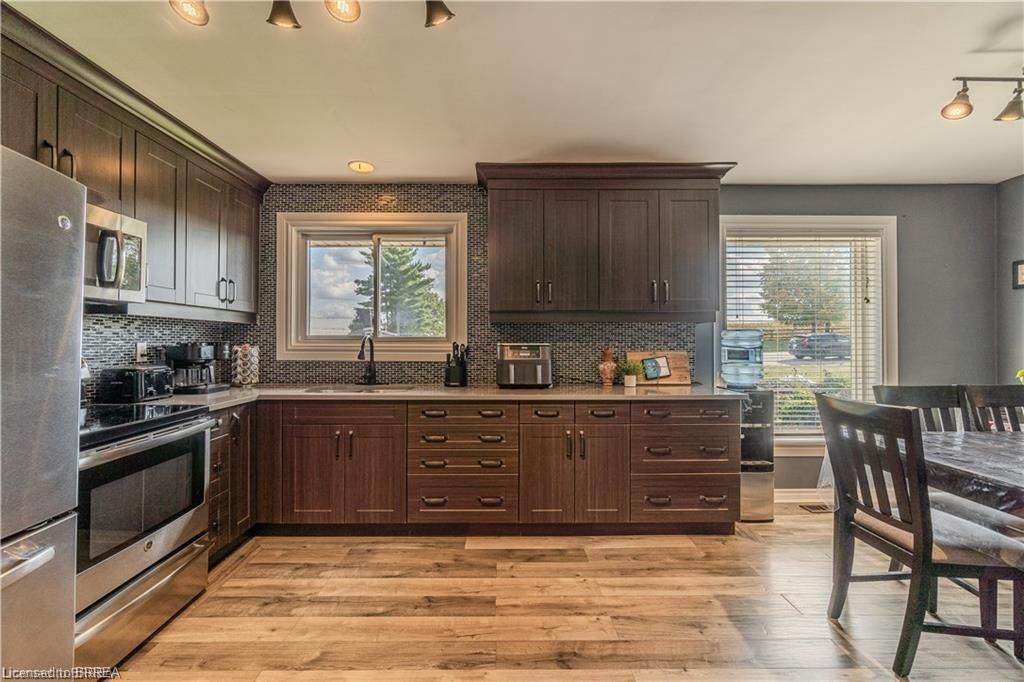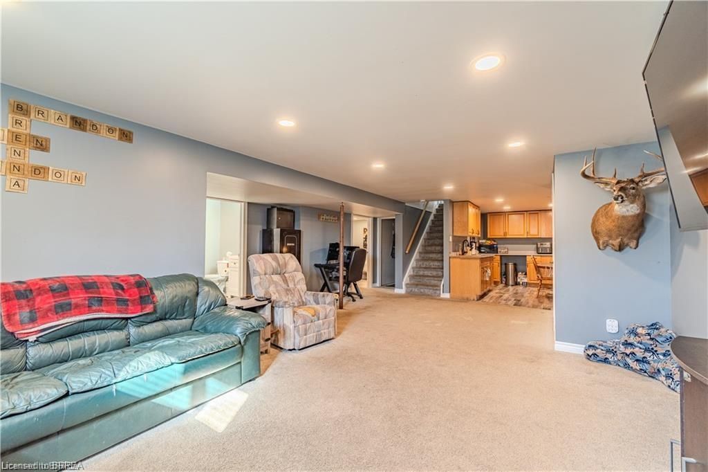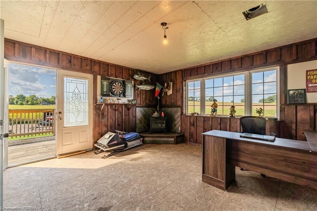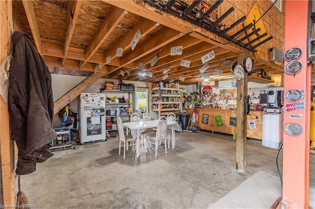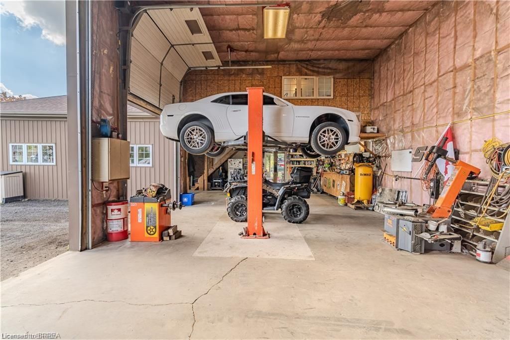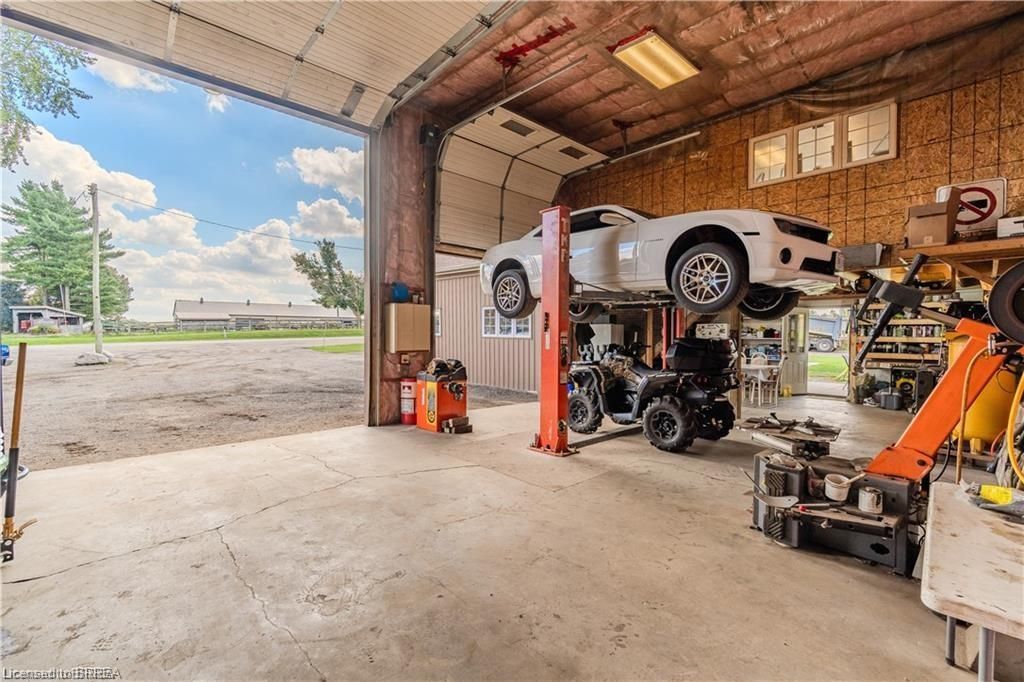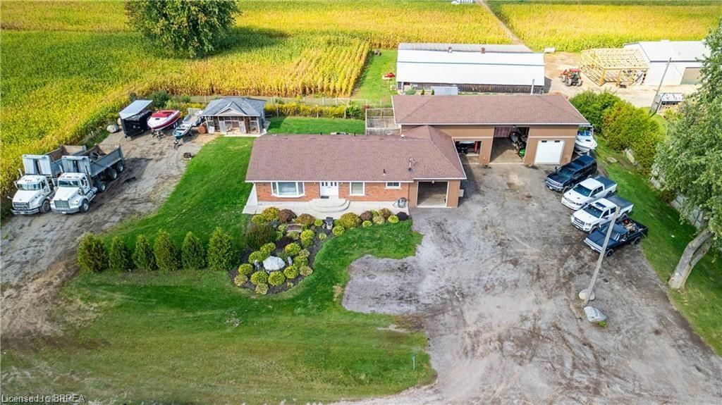 Why keep paying for off-site workshop or storage space when you can have it all right at home? This incredible country property offers the ideal setup for tradespeople, hobbyists, or those simply wanting plenty of space for all their treasured vehicles, tools, and toys - while enjoying the convenience of having everything right where you live. Set on a manageable country lot just minutes from highway access and amenities, this well-maintained bungalow features a bright open-concept layout with 3 bedrooms, a newer kitchen, main floor laundry, and a spacious primary bedroom with ensuite. But the real bonus? A fully finished lower level with a separate granny flat perfect for multi-generational living or combining housing costs with family members. Whether you bring aging parents, adult children, or even a business partner, this setup offers privacy, independence, and significant financial savings by sharing expenses under one roof. For those needing serious workspace, the property includes a massive 66' x 22' workshop with three roll-up doors- one oversized 14'h x 12'w and two 7' x 9' - ideal for trucks, trailers, or equipment. There's also a large attached garage and an upper-level office with a private deck and peaceful views, perfect for remote work. (kindly check with county regulations regarding allowable uses). With ample parking for all your vehicles and toys, plus a chicken coop and dog kennel, this property blends the best of country living with unmatched functionality. This property offers a rare opportunity to make it all happen in one place. Located just a 5-minute drive to the beautiful town of paris and close to all the amenities in brantford, this home offers the perfect balance of rural peace and urban convenience.