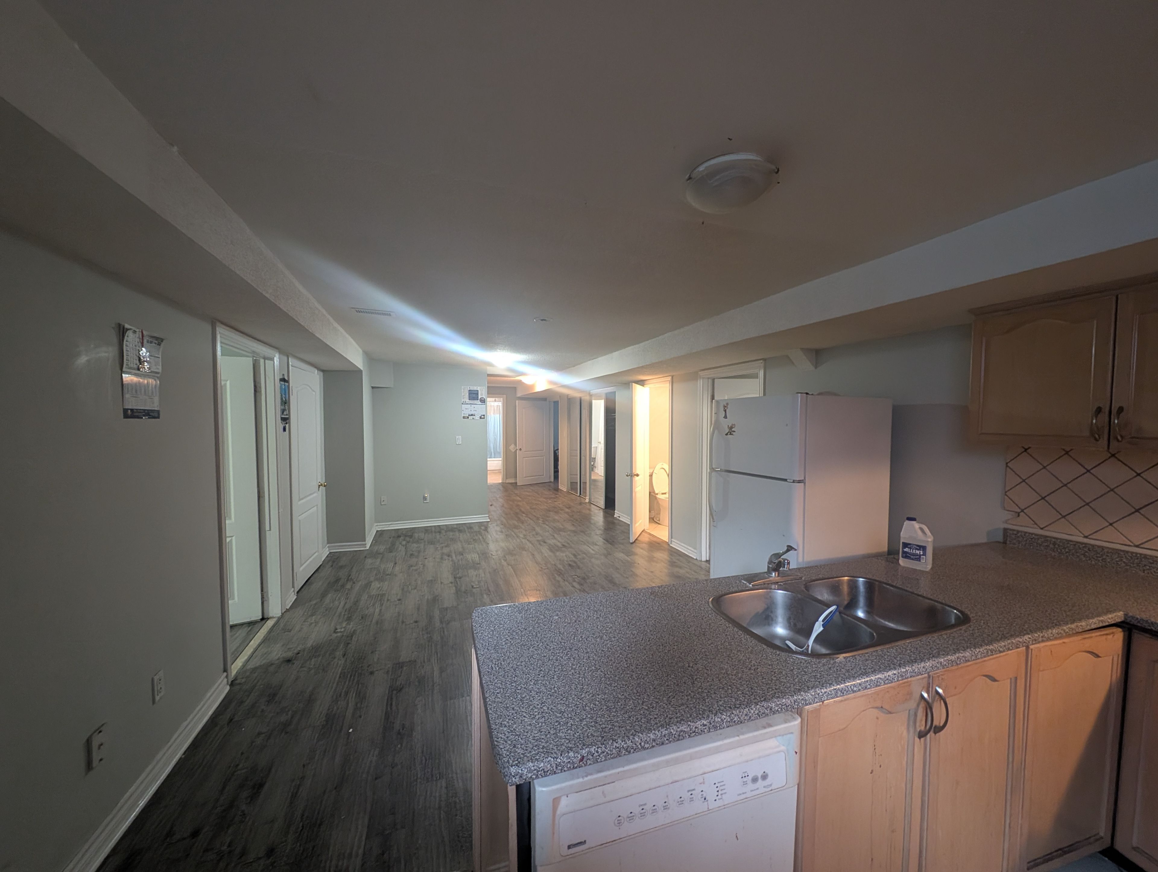 • Basement with separate entrance, two bedrooms, and additional kitchen.