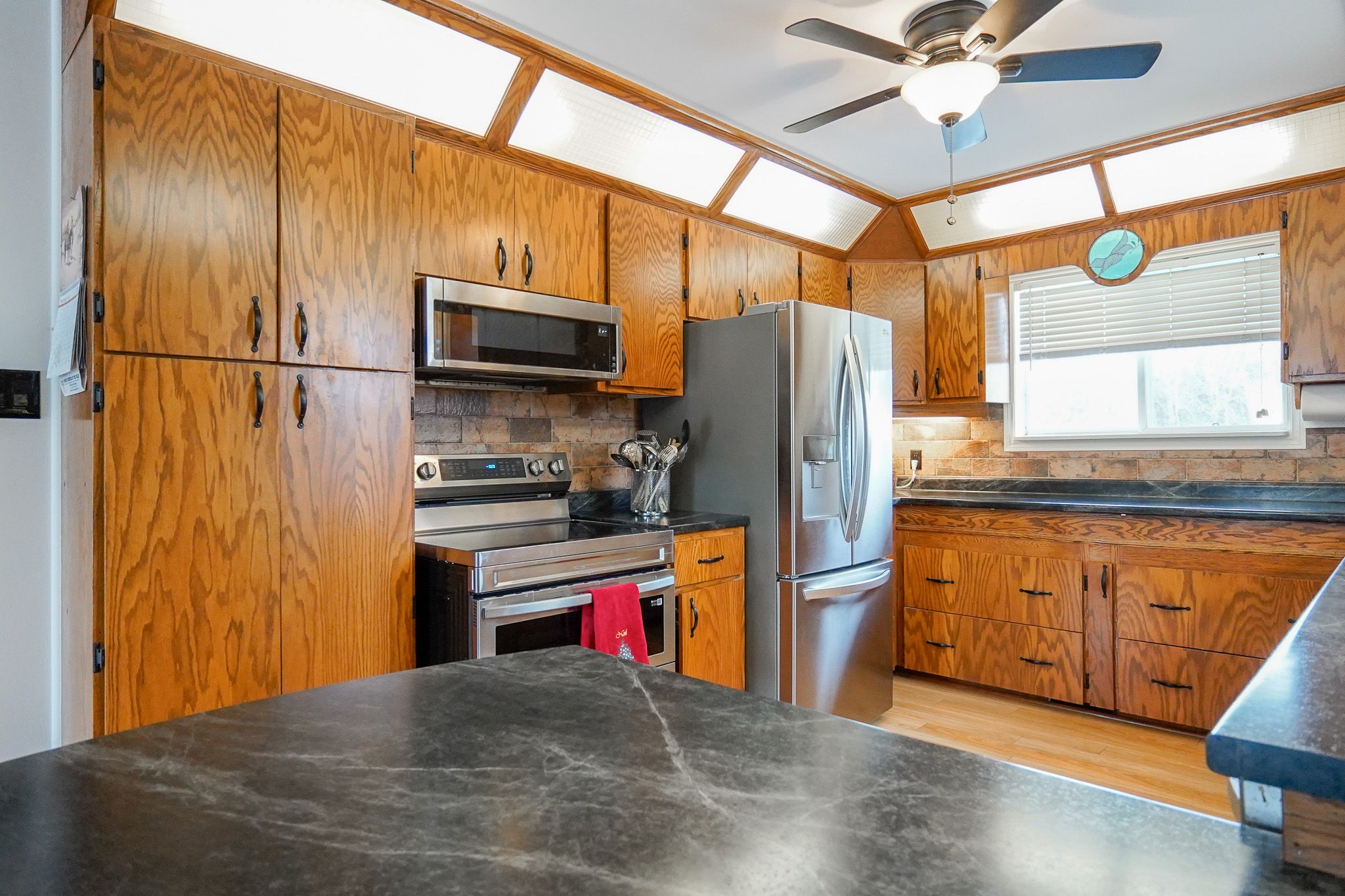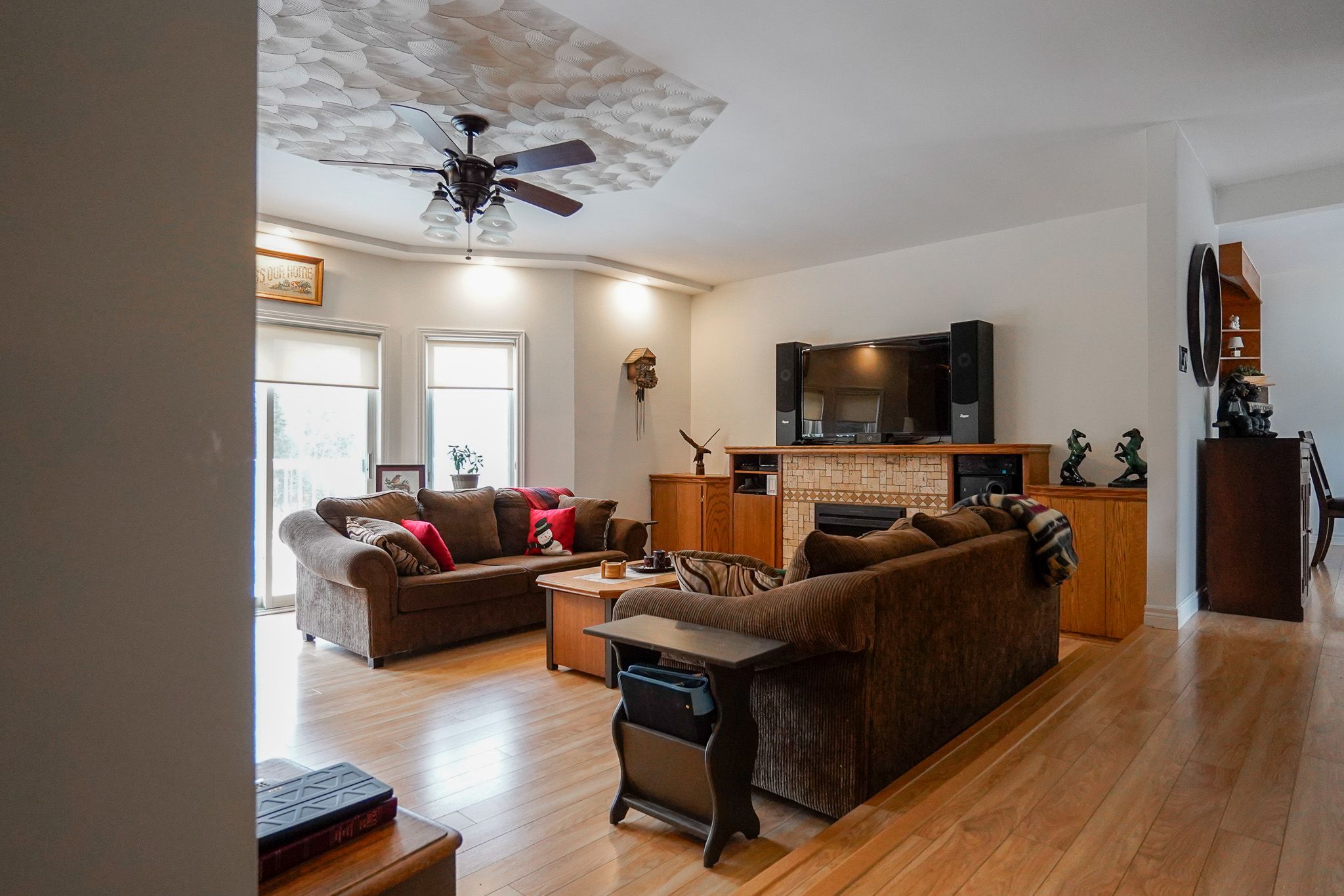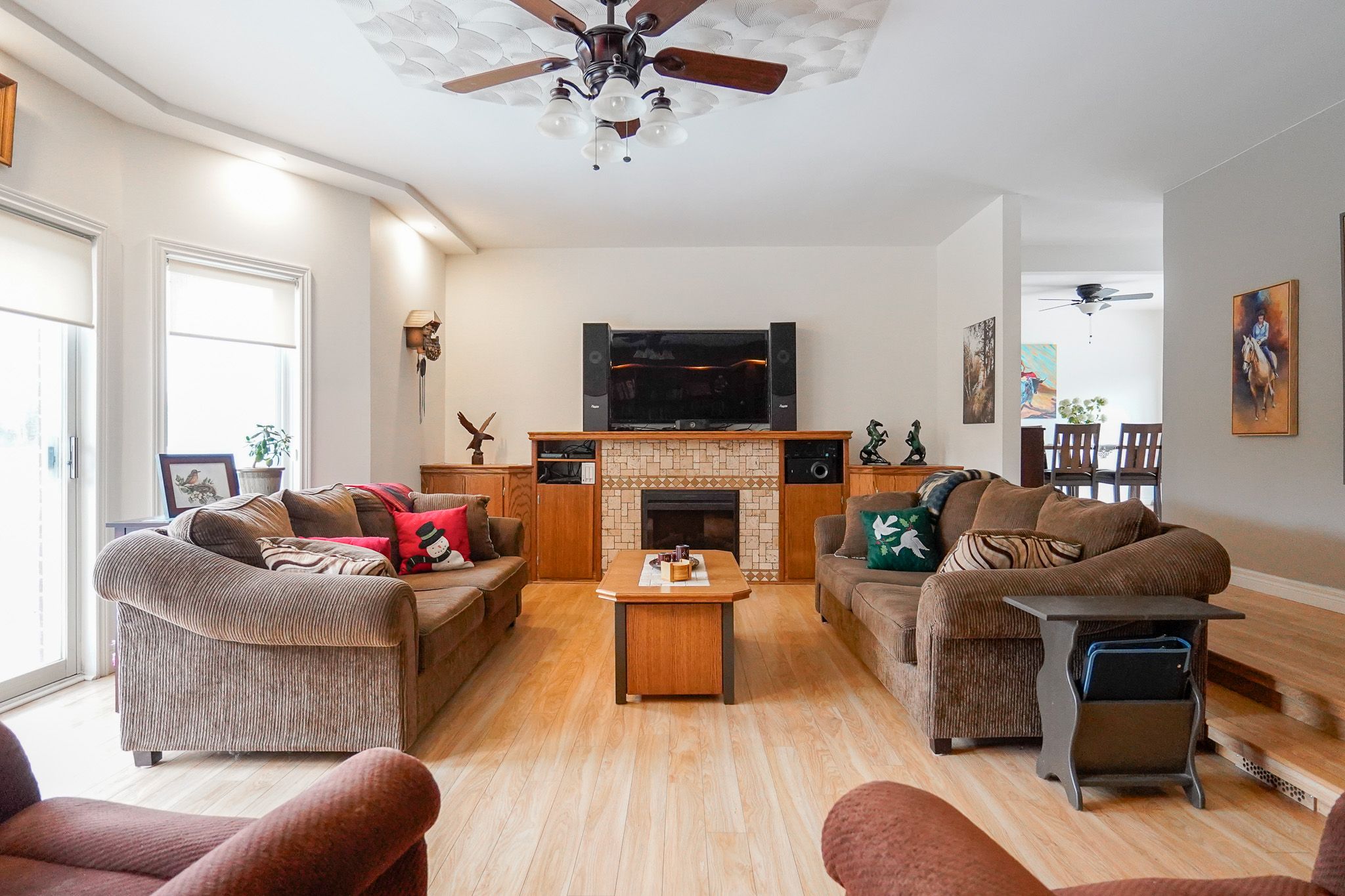 This custom built country home truly has it all. Sitting on over 9 acres has privacy, wonderful views of the landscape, self-contained rental suite, above ground pool and a massive 24' x 48' heated shop. The main home has 3 bedrooms and two bathrooms including an ensuite, walk in closet and access to the back deck in the primary bedroom. Sunken living room with custom wood work having secret storage. There is also a walk in mudroom, main floor laundry, dining room and large kitchen with stainless steel appliances and peninsula. There is also a recroom in the lower level. The apartment has its own entrance but could easily be made part of the home again. Currently on a month to month tenancy with the long term tenants paying $1,100 per month. There is a full kitchen and bathroom, living room, bedroom and bonus room/den. Taxes currently base on operating a business from the shop but are in the process of being reduced as it is no longer running. This home is perfect for a growing family, multi-generational family or someone looking for a large shop with so many options for use. There is in floor heat in the lower level, combination oil/wood forced air for the home that could be converted to propane and the shop is heated by propane. Have a look today, you won't be disappointed. Summer photos and floor plans also available.