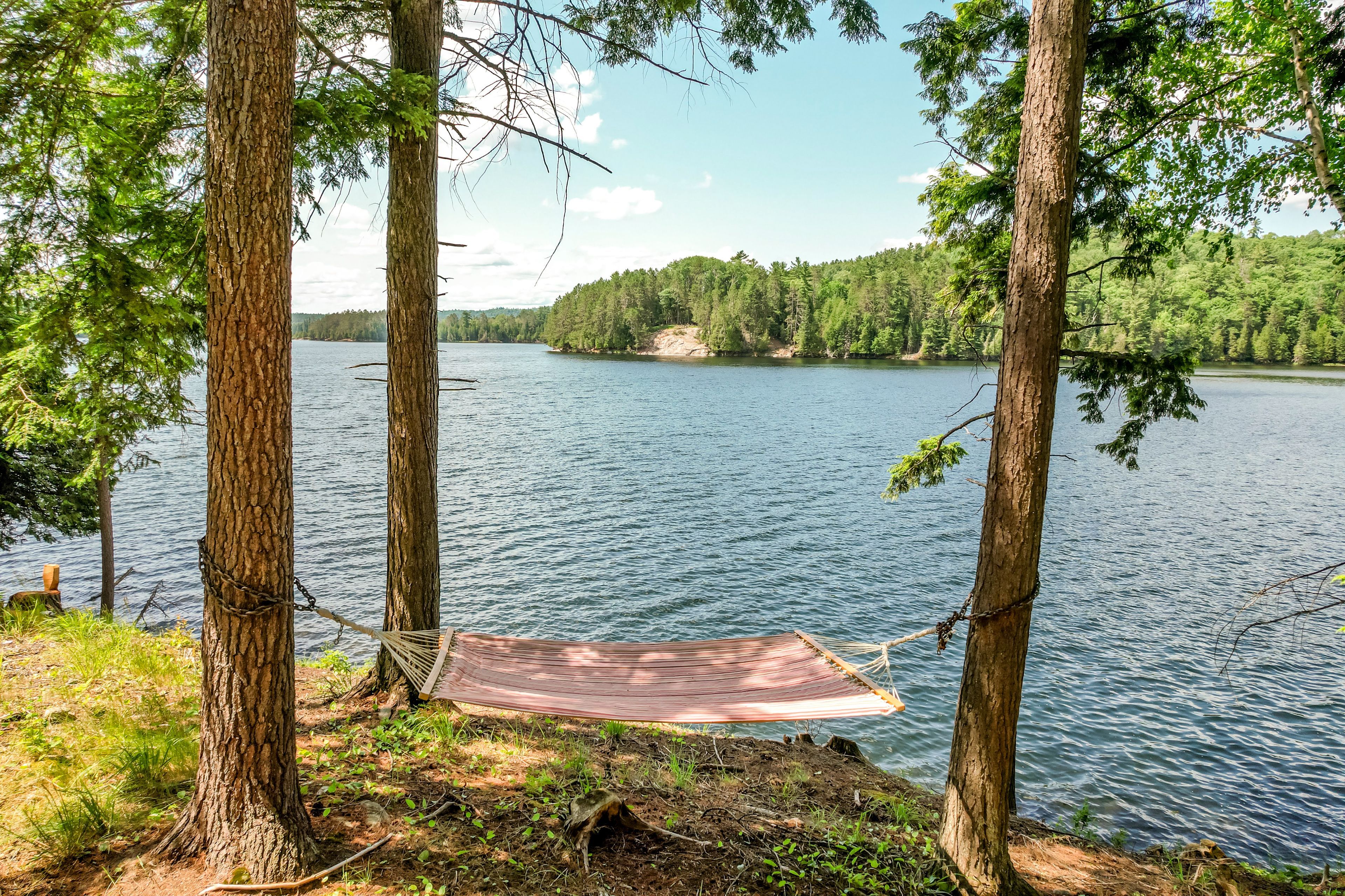• Secluded lakeside cottage on a private 1-acre lot for true solitude.