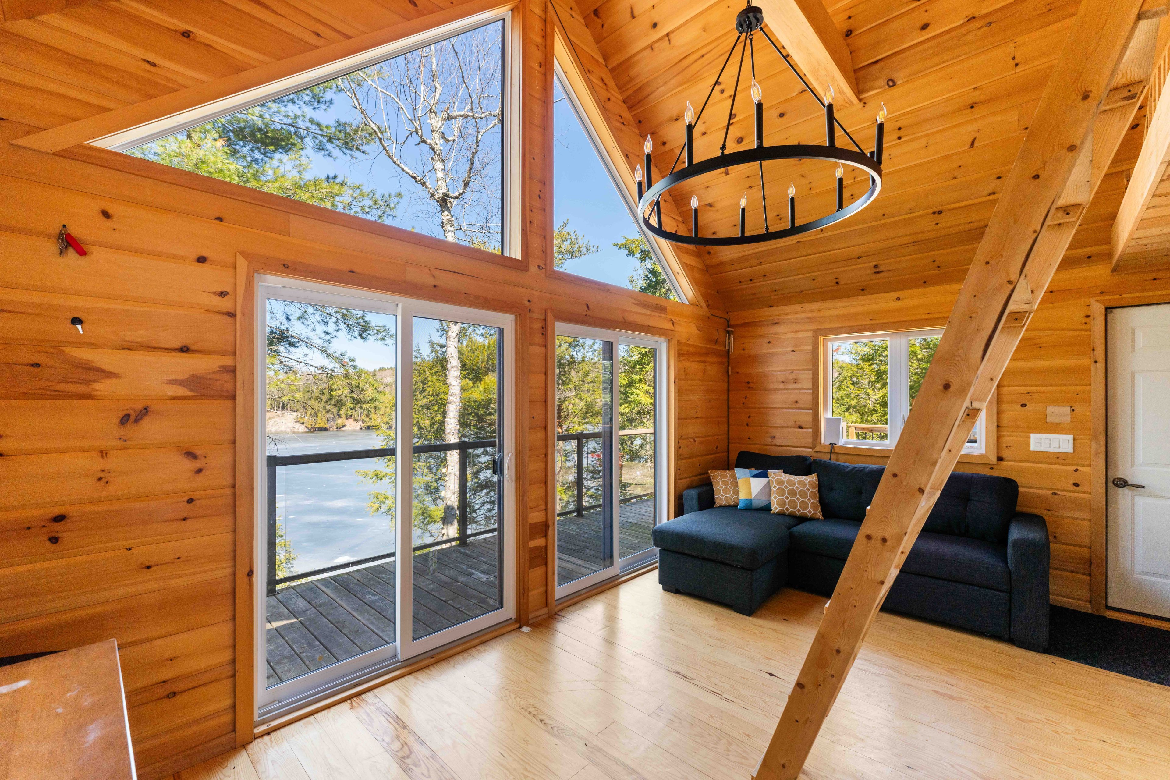 If your heart longs for wide-open skies, quiet waters, and days untouched by screens, this secluded lakeside sanctuary on pristine moccasin lake is the escape you've been waiting for. Set on a private 1-acre lot with untouched crown land across the water, this custom 2017 log cottage wraps you in true solitude. Floor-to-ceiling windows frame breathtaking sunset views, while the expansive deck gives you front-row seats to nature's nightly show. The lake itself is a dream for outdoor enthusiasts: deep, clean water right off the dock for effortless swimming; calm stretches perfect for kayaking and paddleboarding; excellent fishing; and the freedom to enjoy motorboats when adventure calls. Whether your day starts with a quiet paddle or ends with a sunset boat ride, this is a lake that invites you to live outside from dawn to dusk. Inside, two serene bedrooms and a heated bunkie welcome family and friends-close enough to share the magic, yet with space to breathe. Completely off-grid with alternative power, drilled well, septic, and propane heat, this retreat lets you recharge in comfort while living simply, quietly, and entirely on your own terms. This is where time slows, connections deepen, and the outdoors becomes part of daily life. Opportunities like this are rare-come explore the private haven where nature, comfort, and true escape meet.
