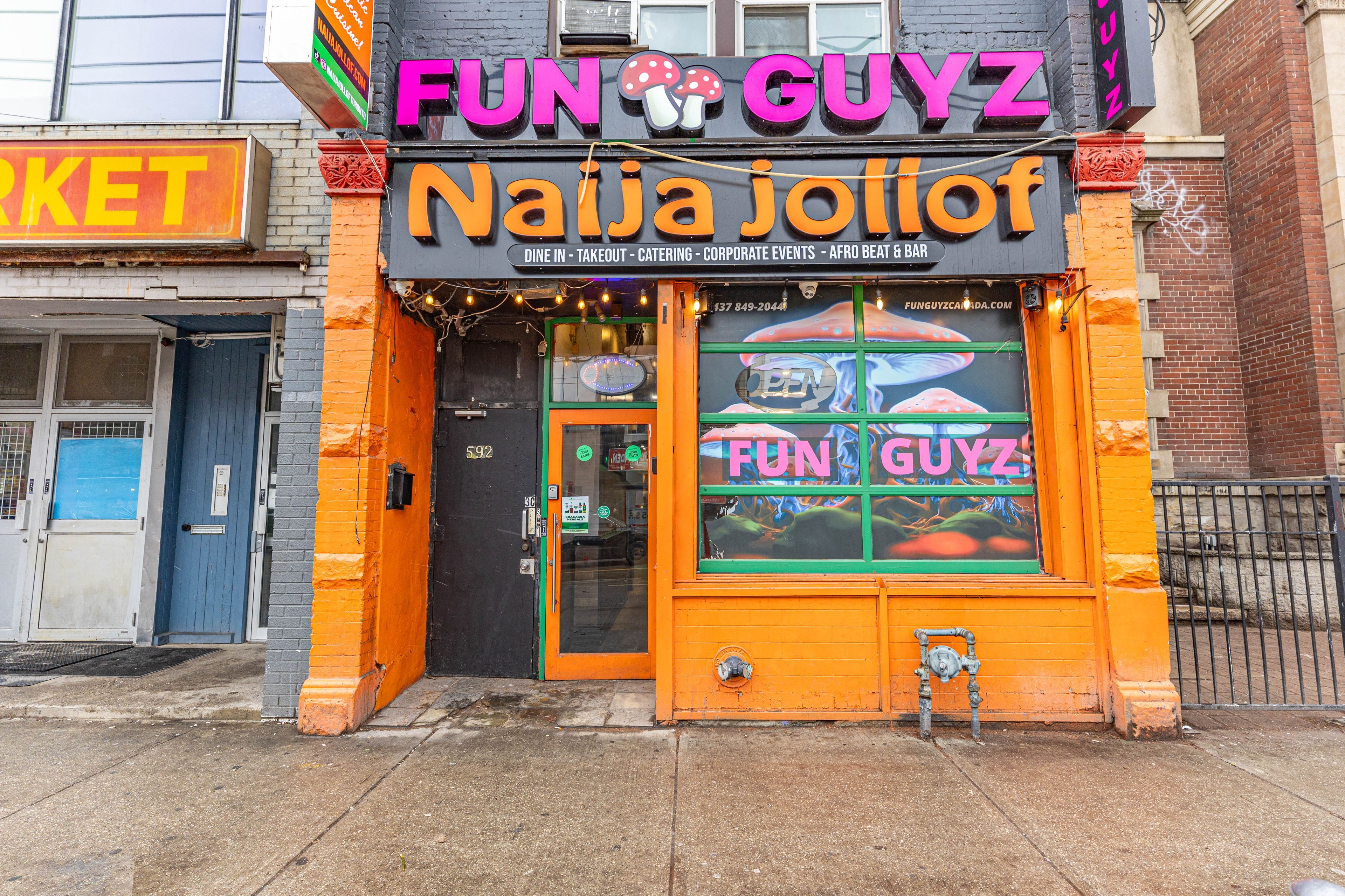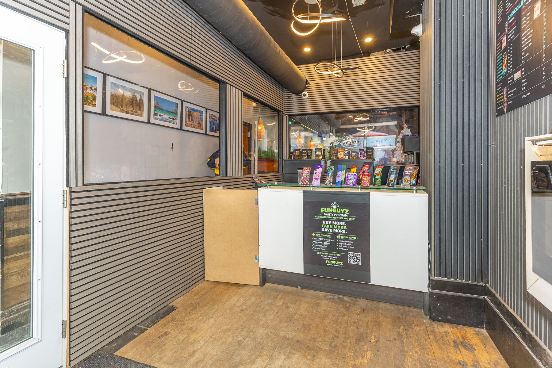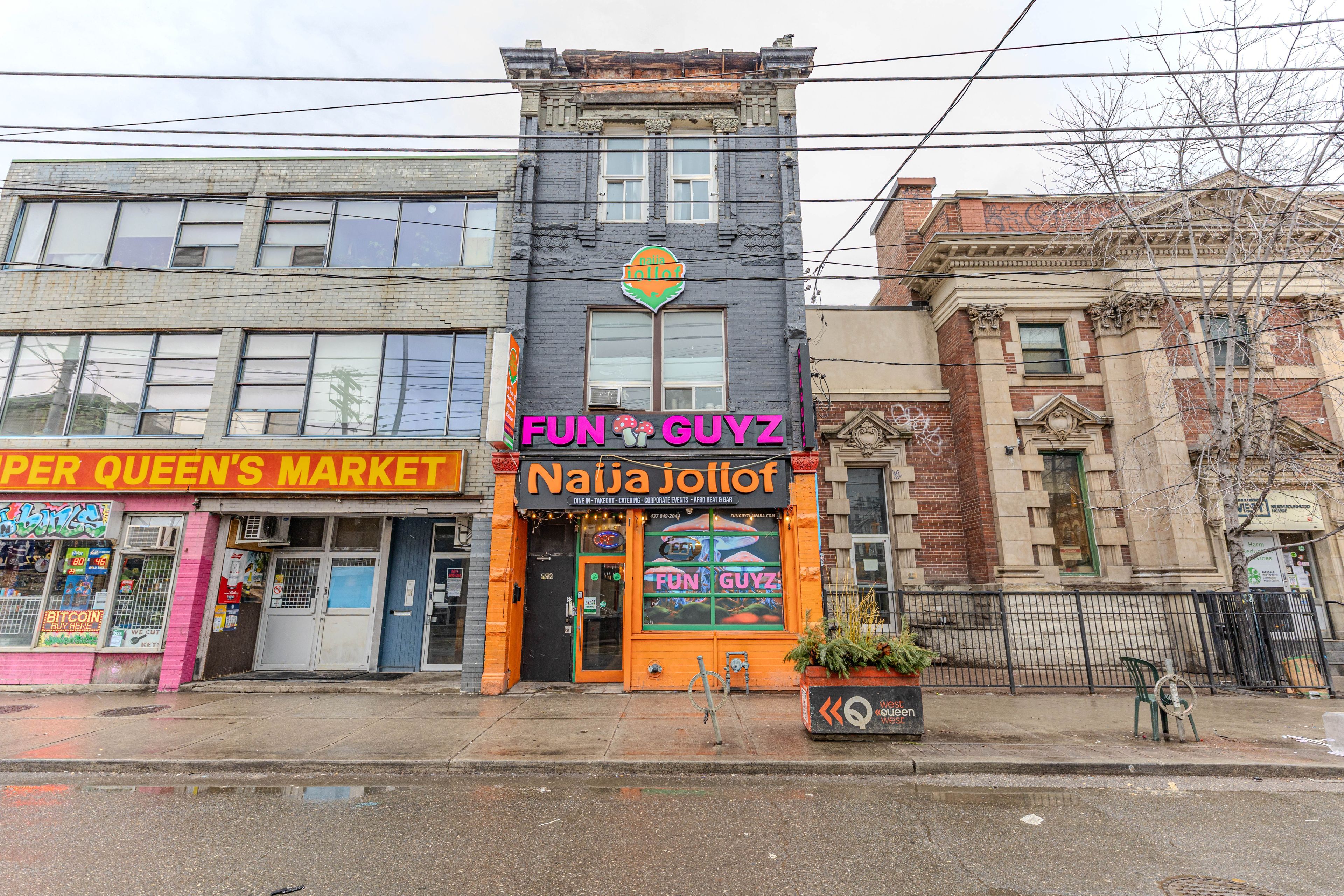 Prime queen st corner retail frontage with strong signage exposure and high pedestrian traffic. Newly renovated with a full roll-up garage-style front window, ideal for a walk-up or service concept. Front retail area only; rear kitchen and seating not included. Landlord open to all commercial uses.