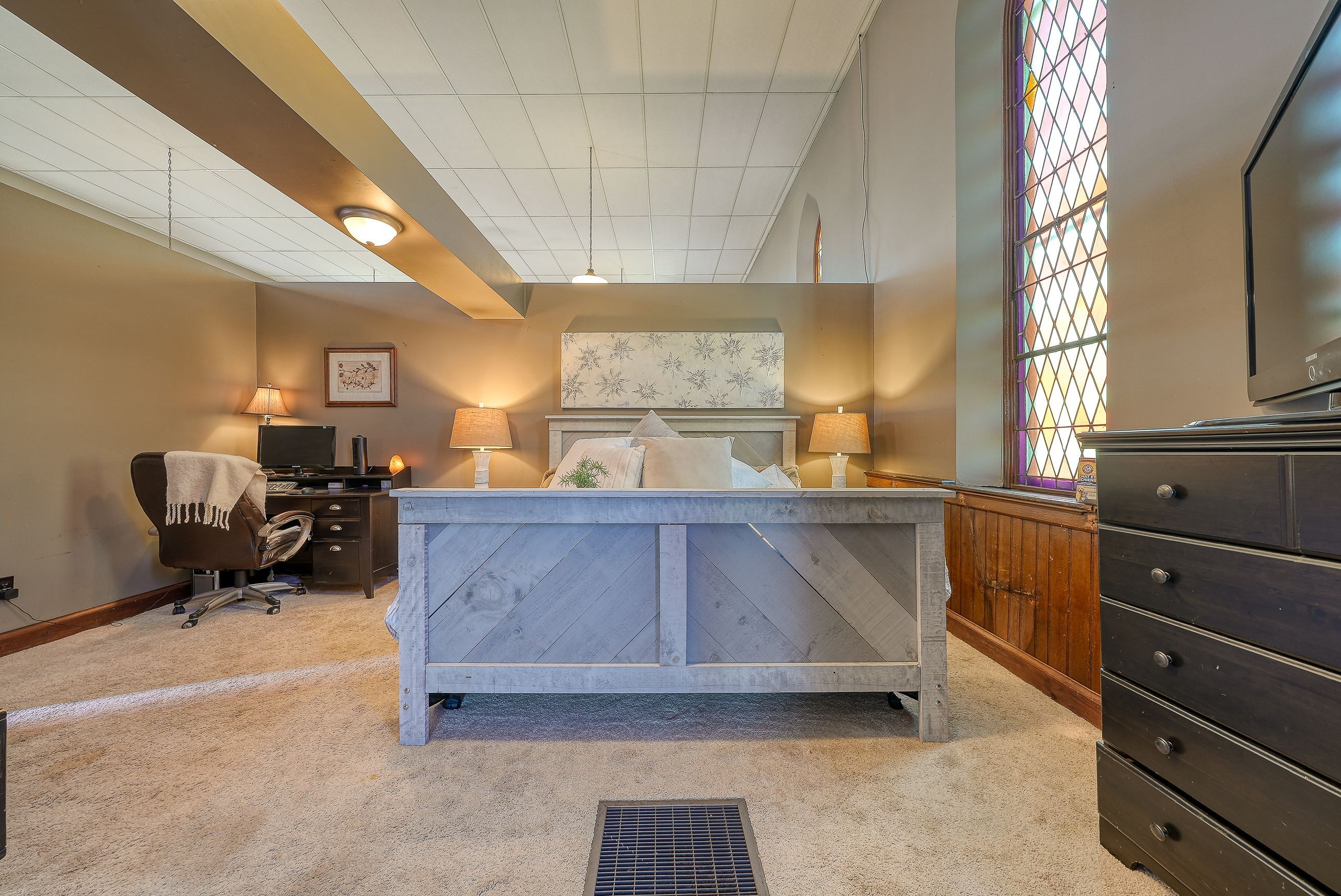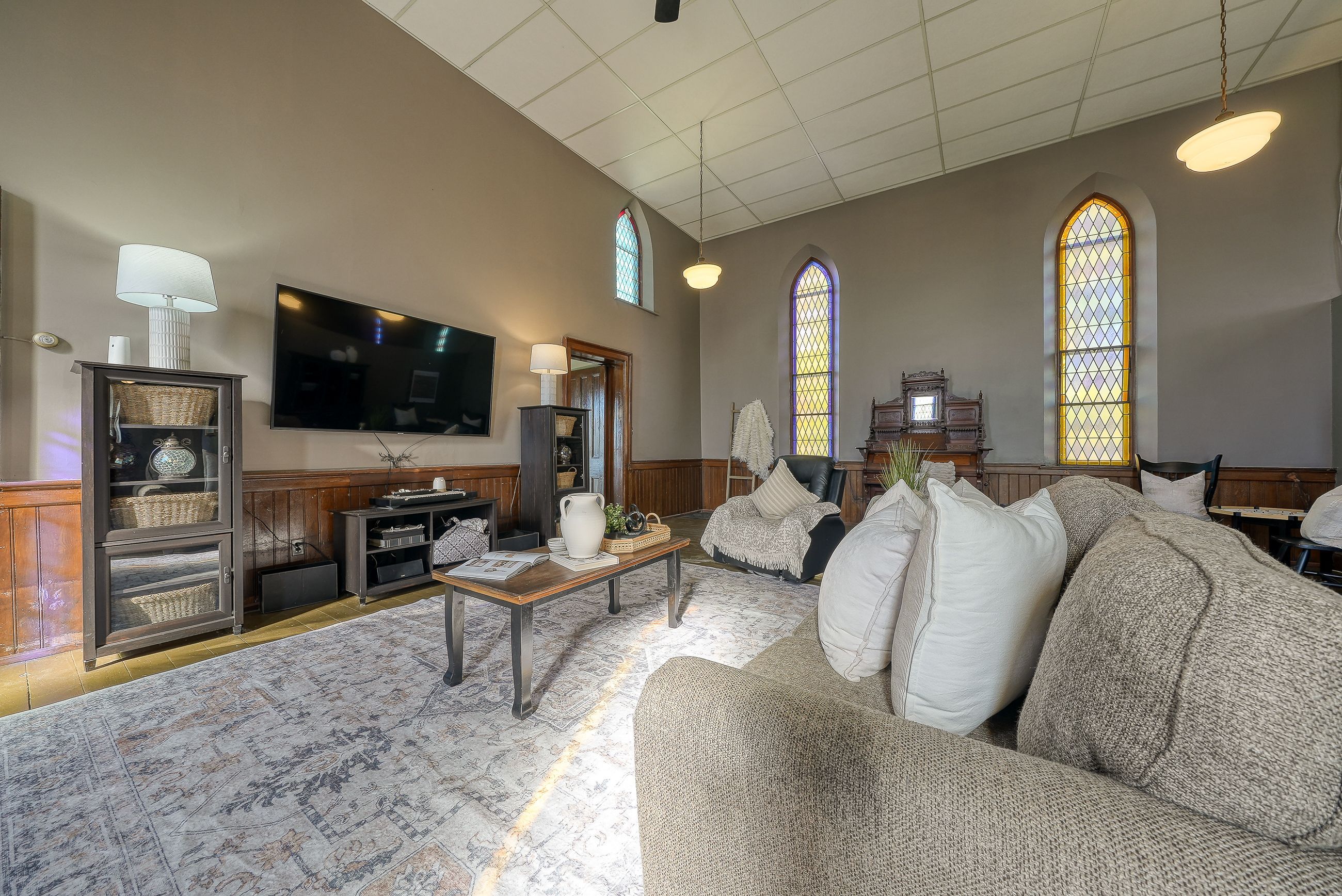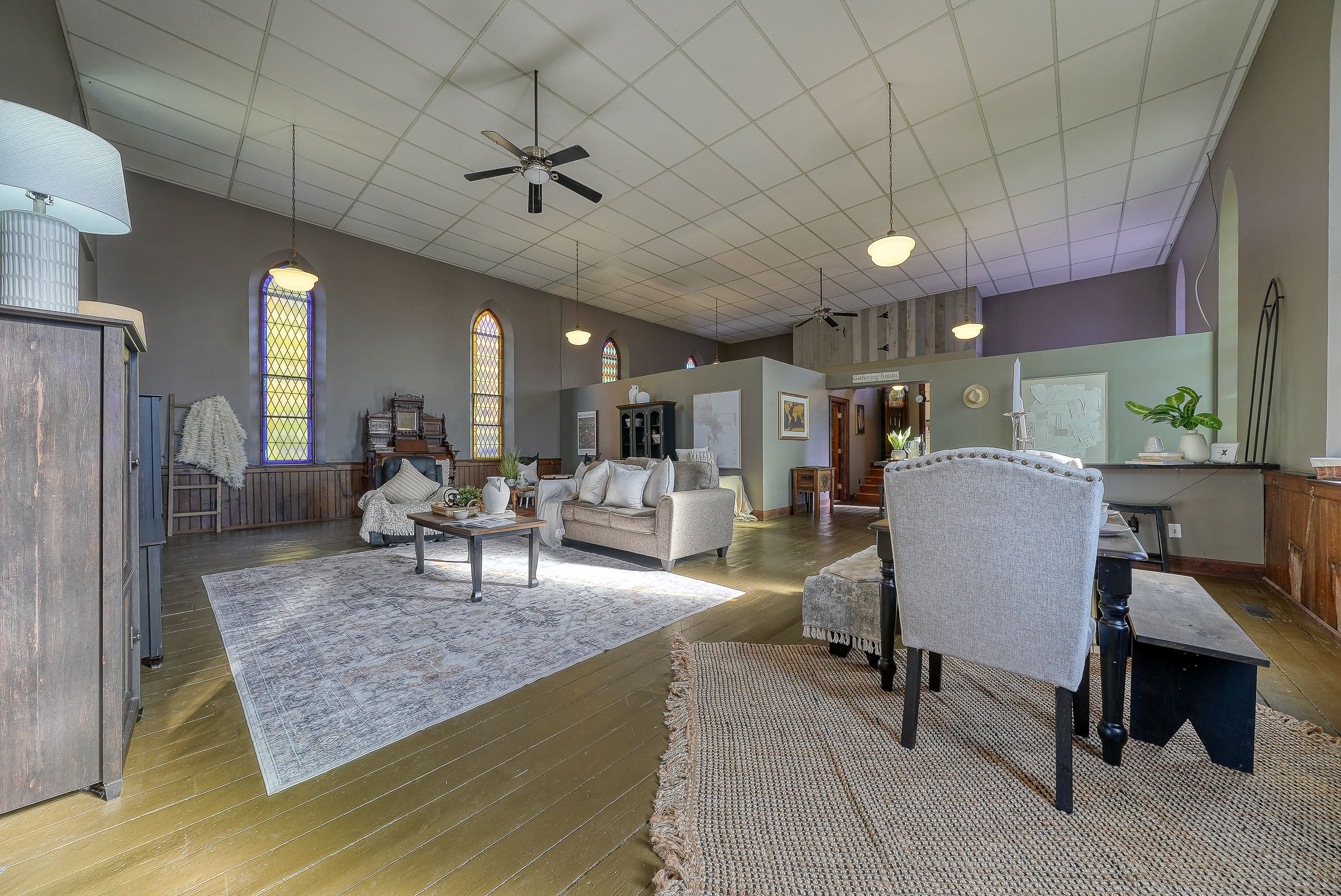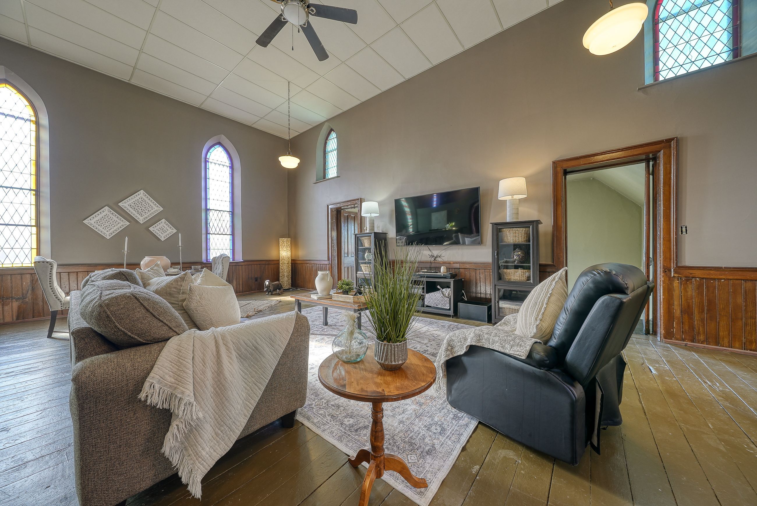 Gorgeous character home with historic charm -circa 1890. This impressive former church has been renovated into a residential home, offering over 3300 sq. Ft. Of finished living space across two levels. From its striking curb appeal to its blend of preserved natural finishes and modern updates, this one-of-a-kind property is sure to impress. Step inside to a welcoming front landing leading to the main living area, where you'll find a spacious living room, dining area, and a bar nook perfect for entertaining. The upper level also features two bedrooms, including a primary suite with a walk-in closet and a private walkout to the yard. The four piece bathroom is a very unique, showcasing soaring, cathedral style ceilings that highlight the homes historic character, along with a sunken tub, a truly unique and inviting space. The lower level offers even more versatility with a third bedroom, a recreational room currently used as a billiards area, and a convenient two piece bathroom... An ideal setup for extended family or guests. Original architectural details, including solid wood doors, stained glass windows, slate roof.. All enhance this homes rich heritage. Numerous updates over the years completed to accommodate modern day conveniences: gas furnace, air conditoning, wiring, plumbing, double hung windows in lower level, water treatment devices, and most recent its own water source-a new drilled well. Outdoors, enjoy your own private backyard oasis featuring a hot tub covered by a gazebo, fire pit area, above ground pool, shed with hydro, and a fully fenced yard... Perfect for relaxing or entertaining year round. Whether you're looking for a unique family home or a multi level generational living opportunity with separate entrances, this exceptional property delivers character, comfort, and endless possibilities. All measurements taken from public record and iguide.