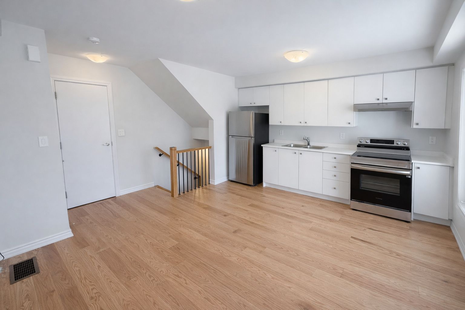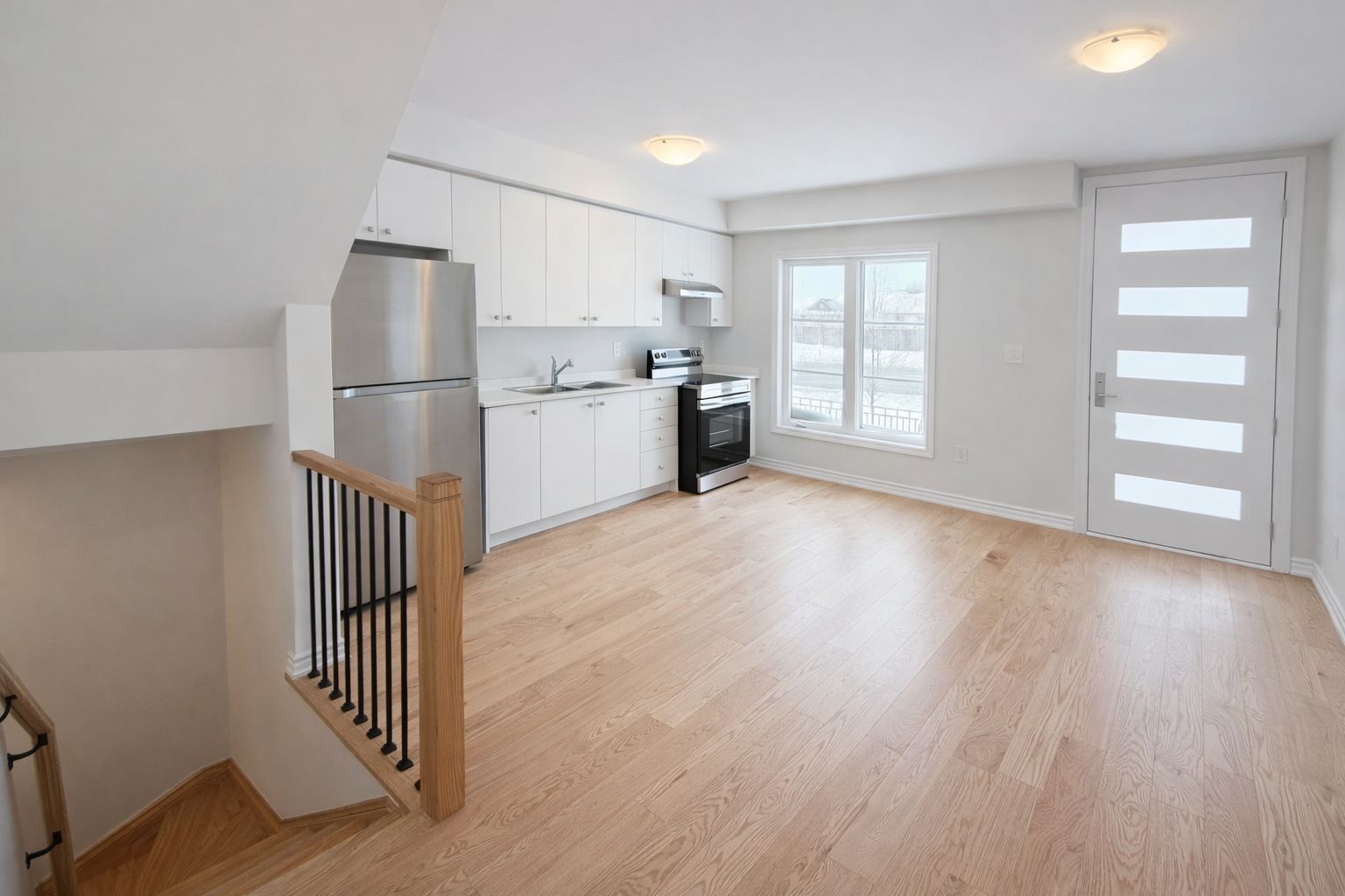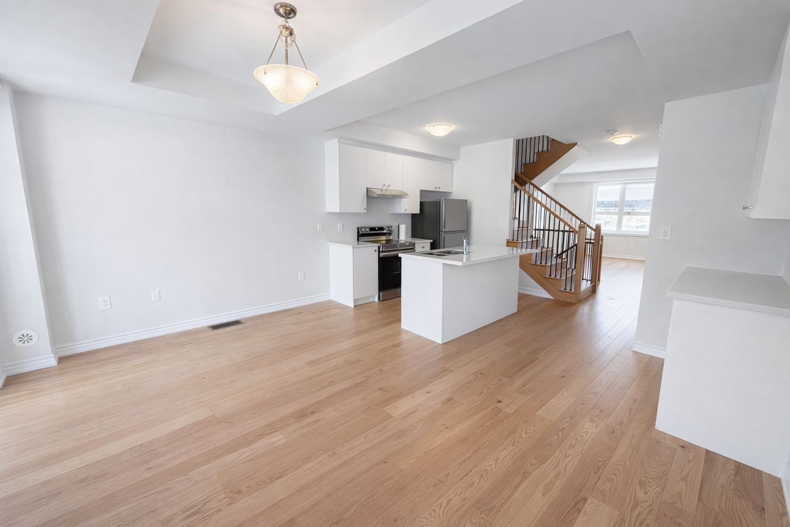 • Bright open-concept main floor with 9-foot ceilings and modern kitchen.