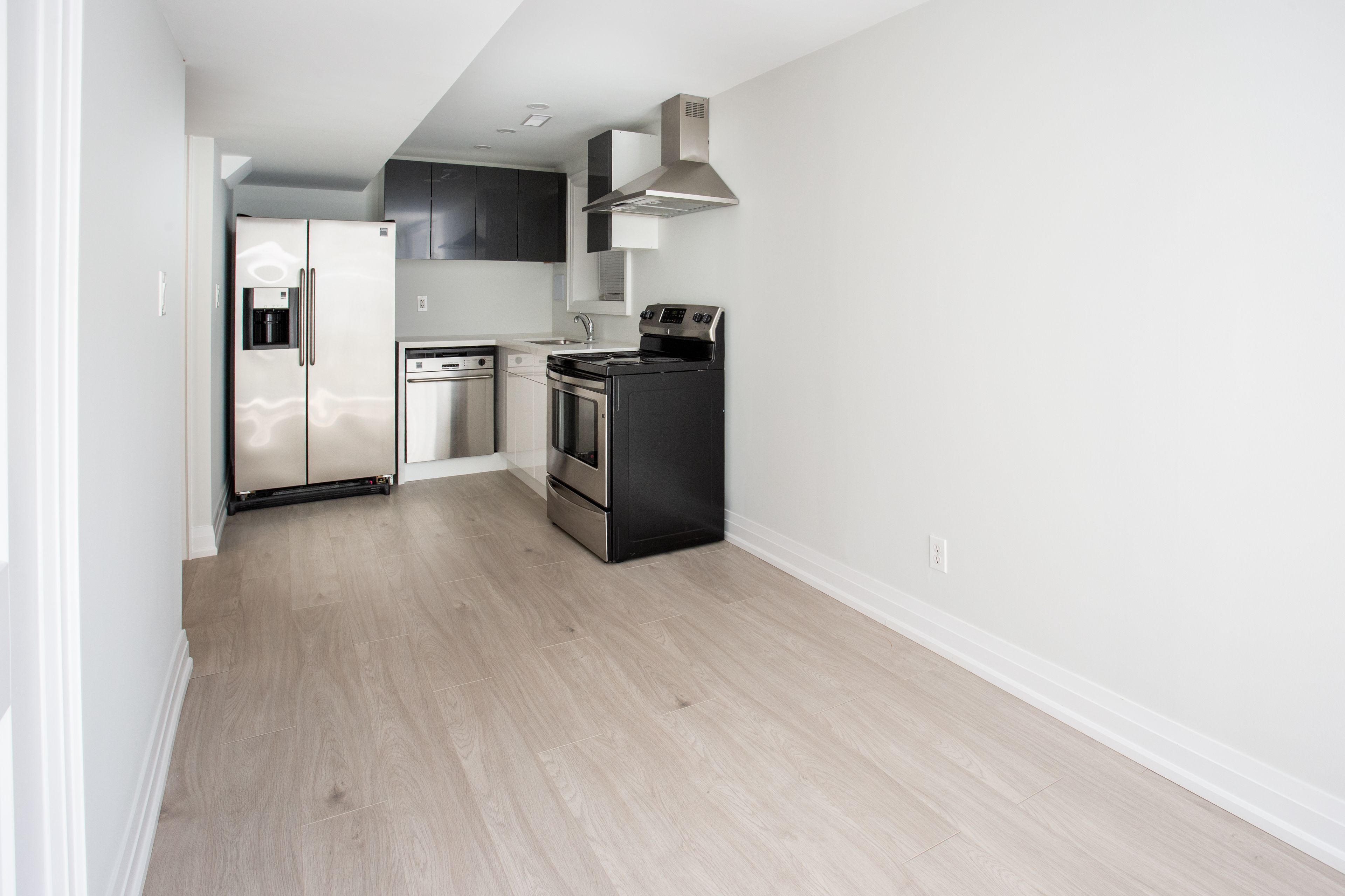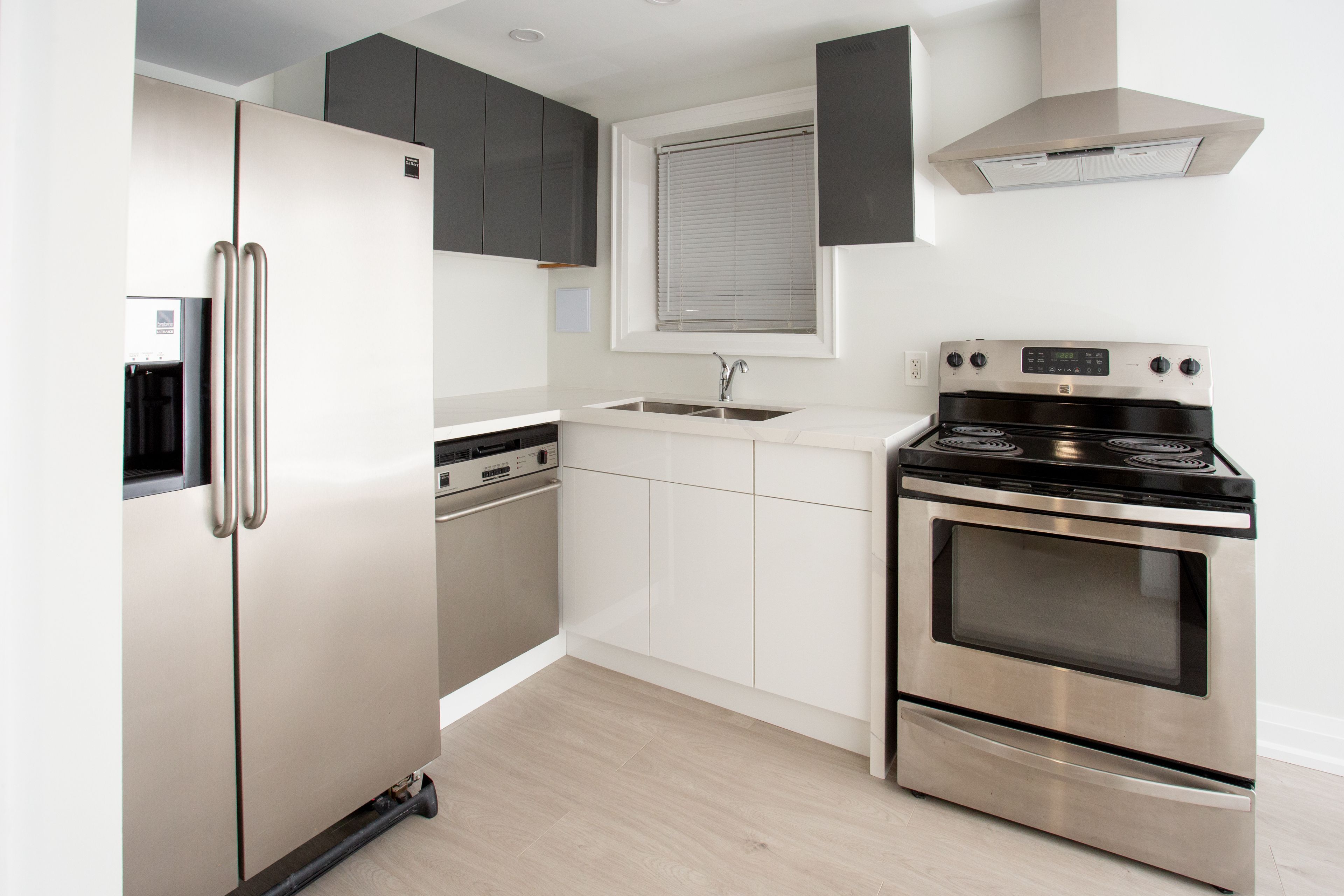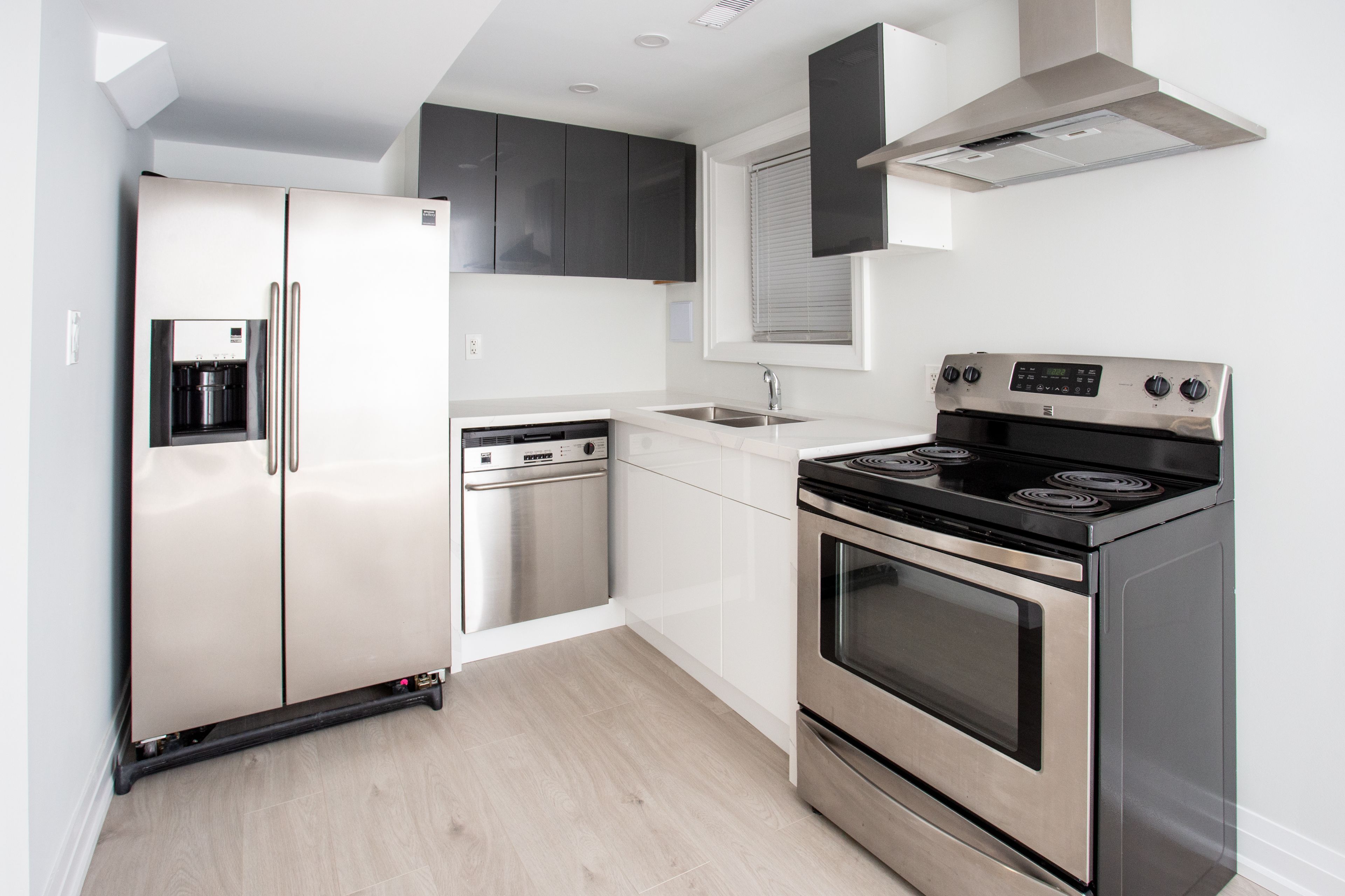 • Custom kitchen with premium stainless steel appliances perfect for cooking.