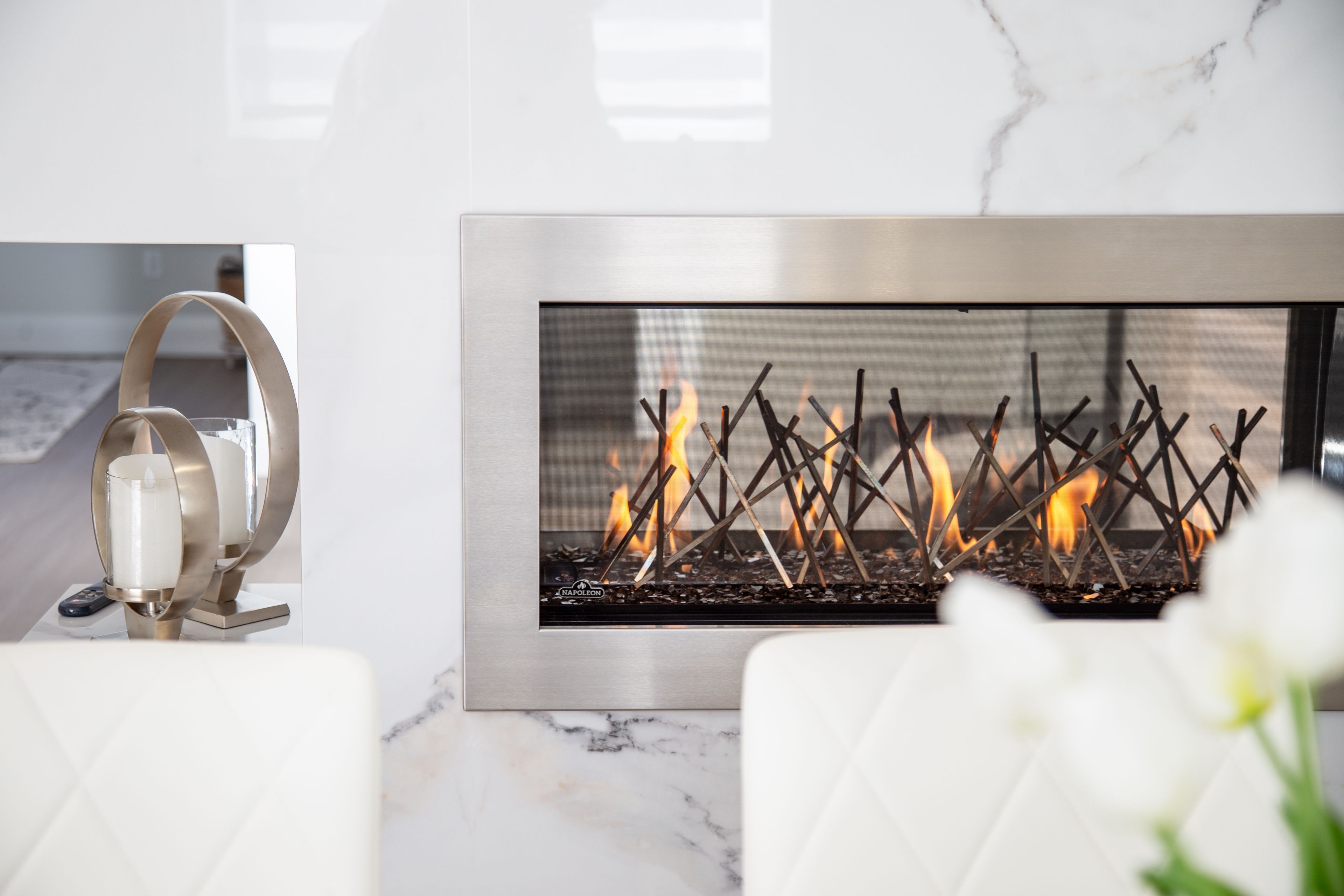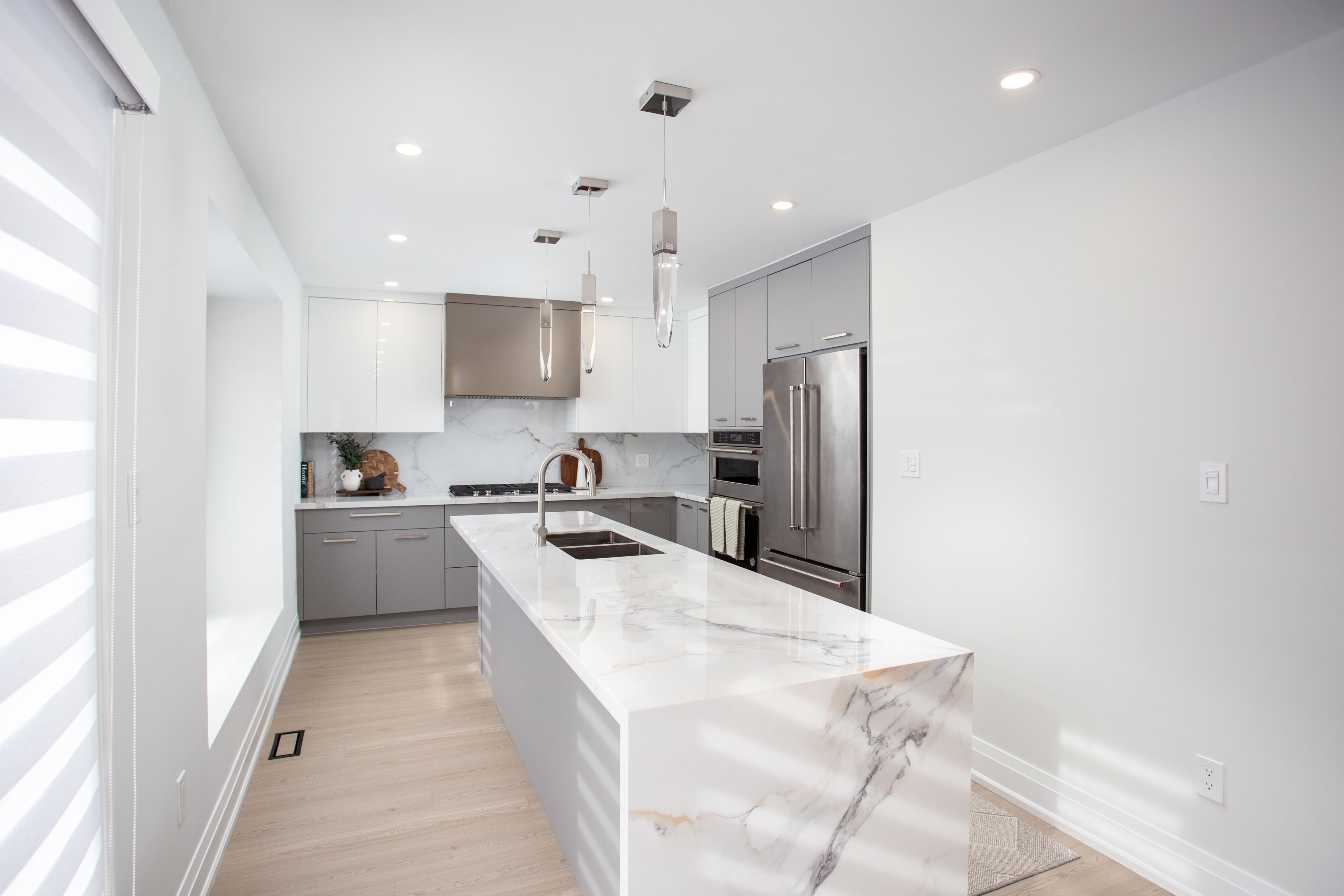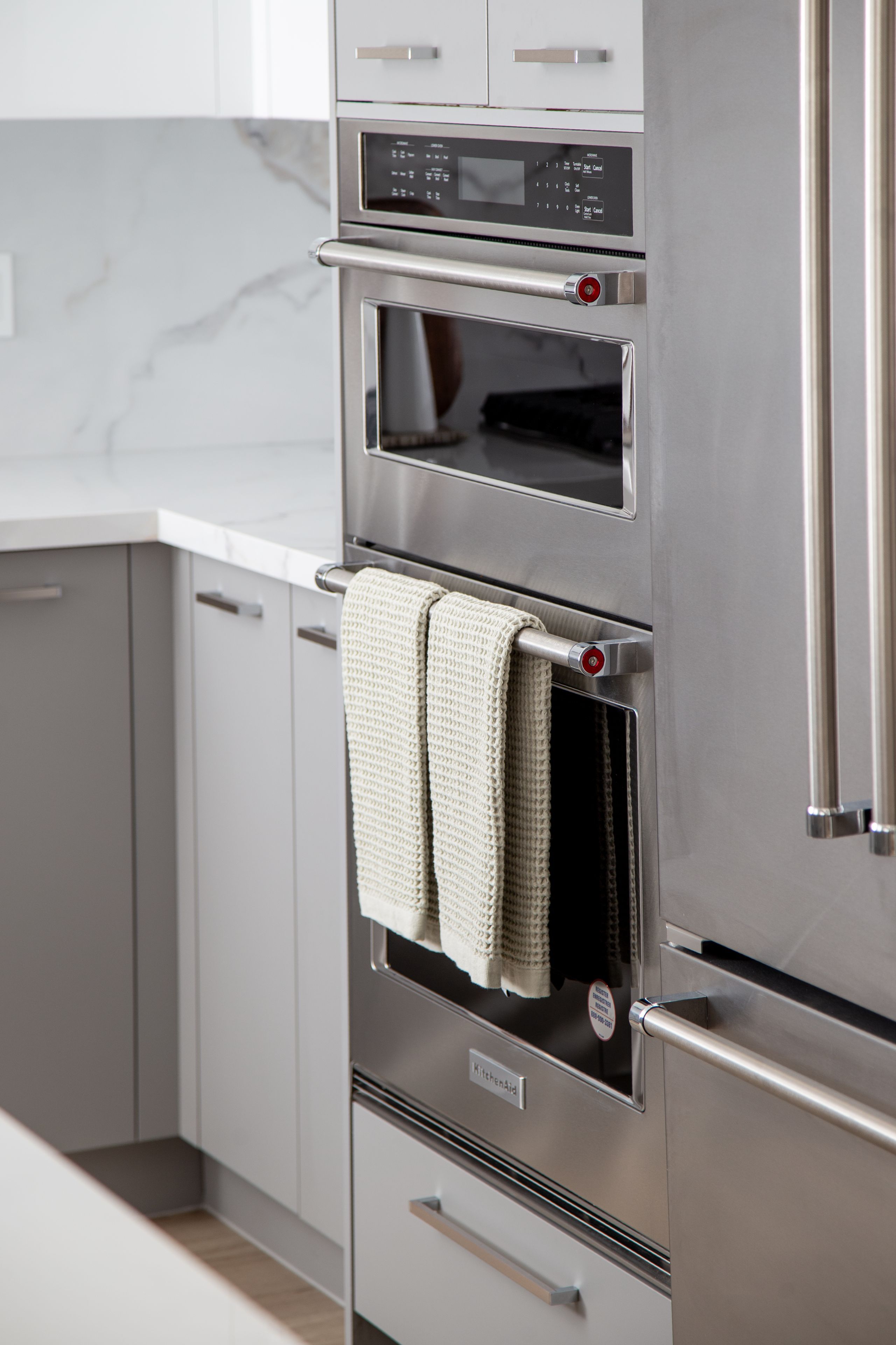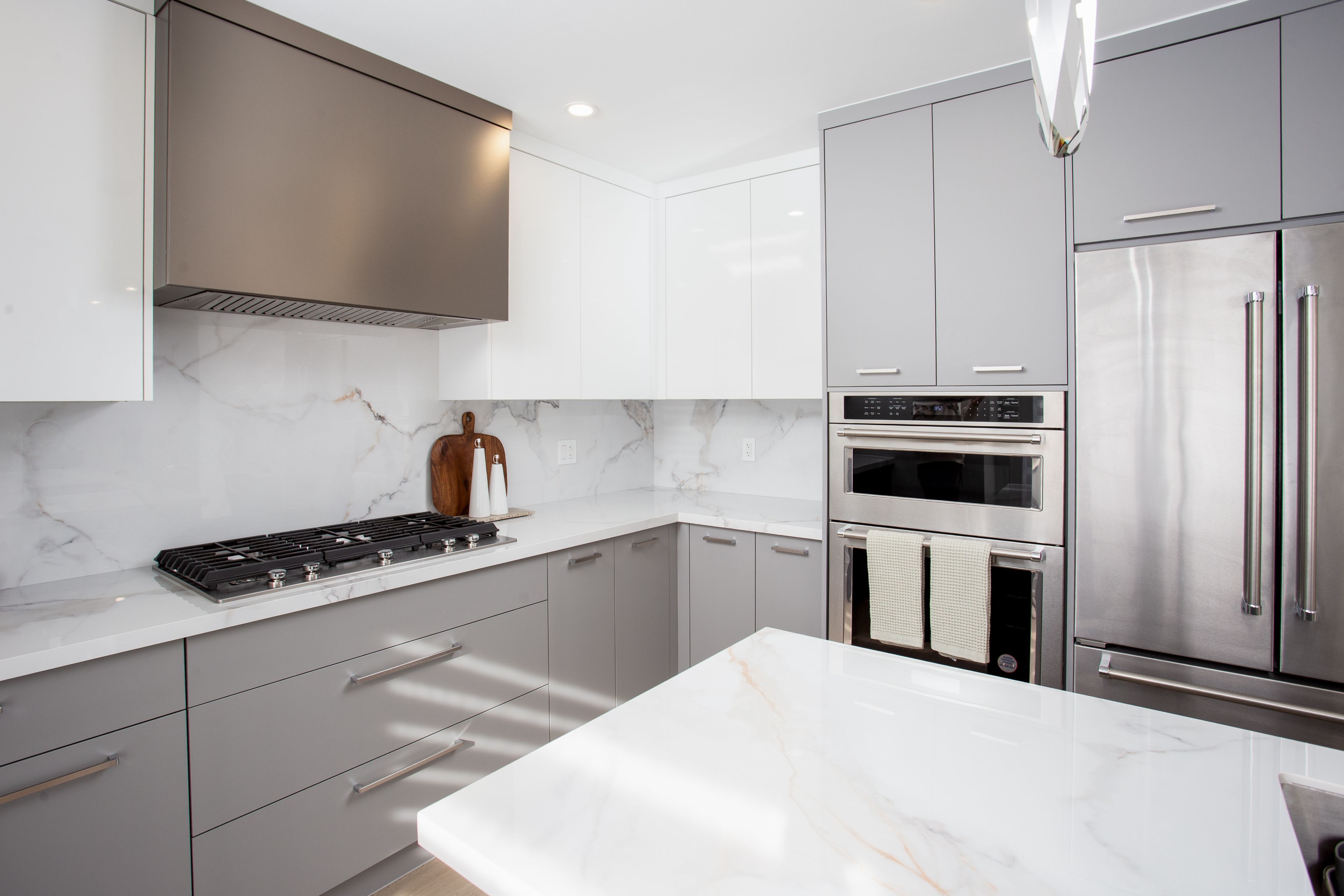 • Custom kitchen with premium stainless steel appliances perfect for cooking.