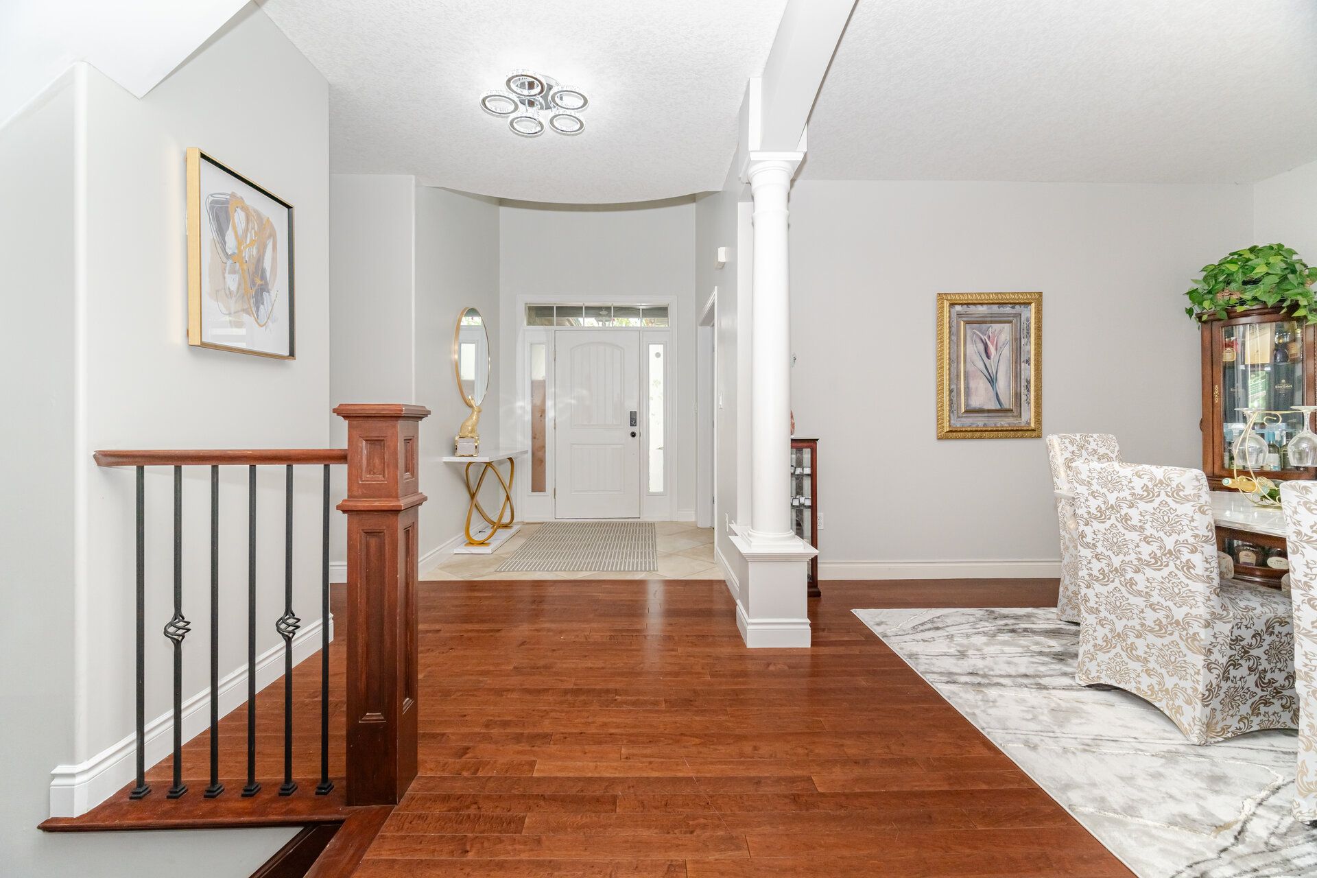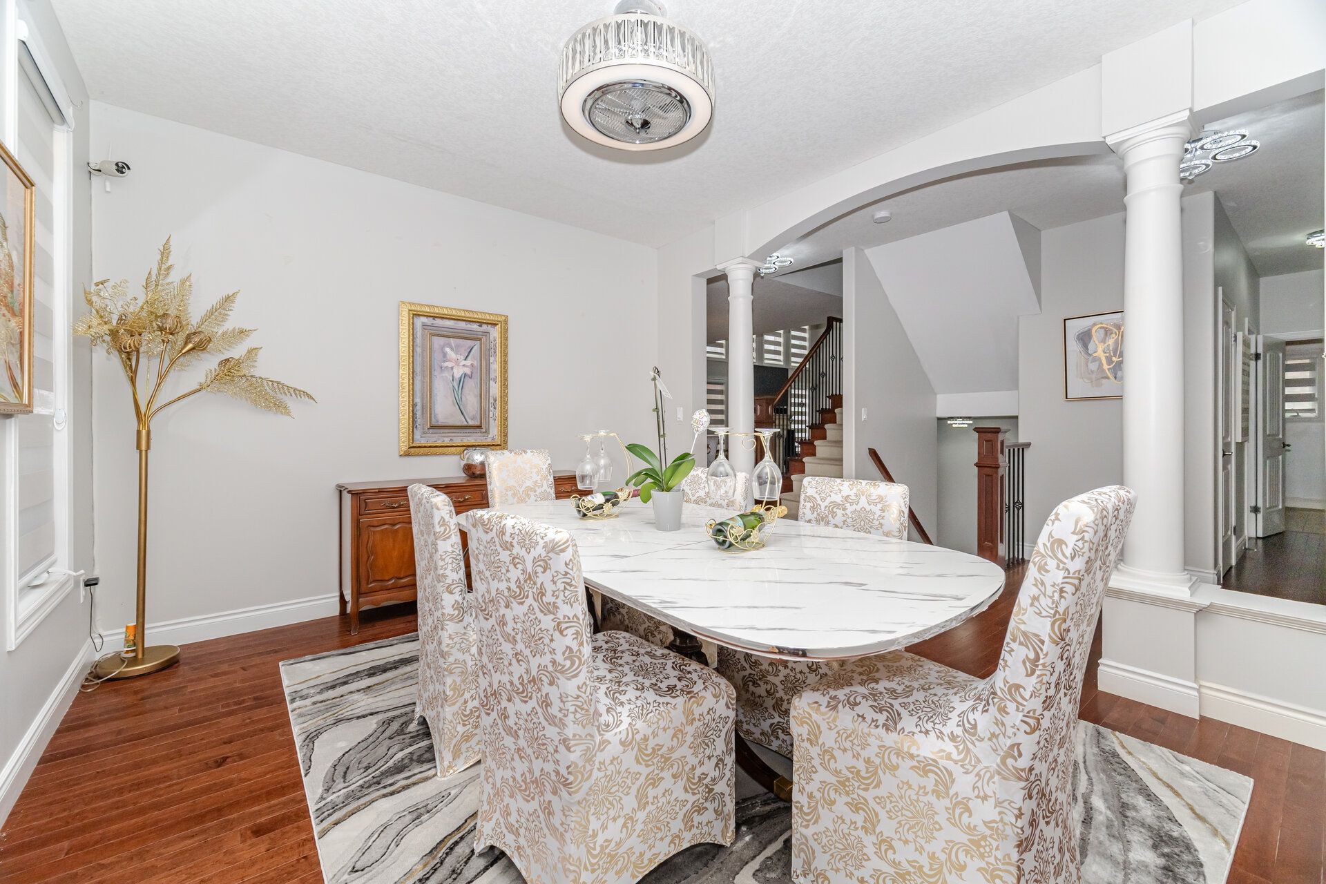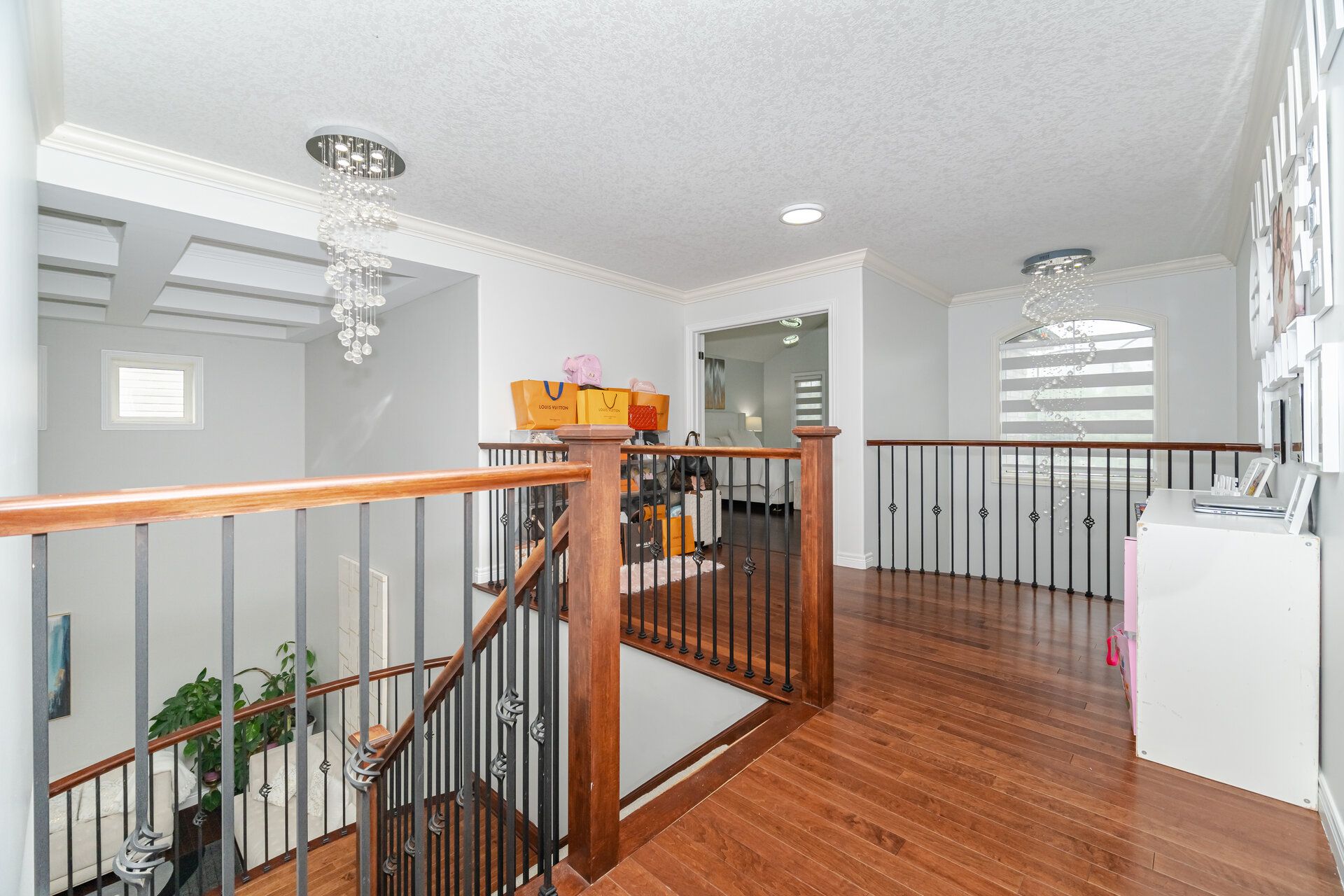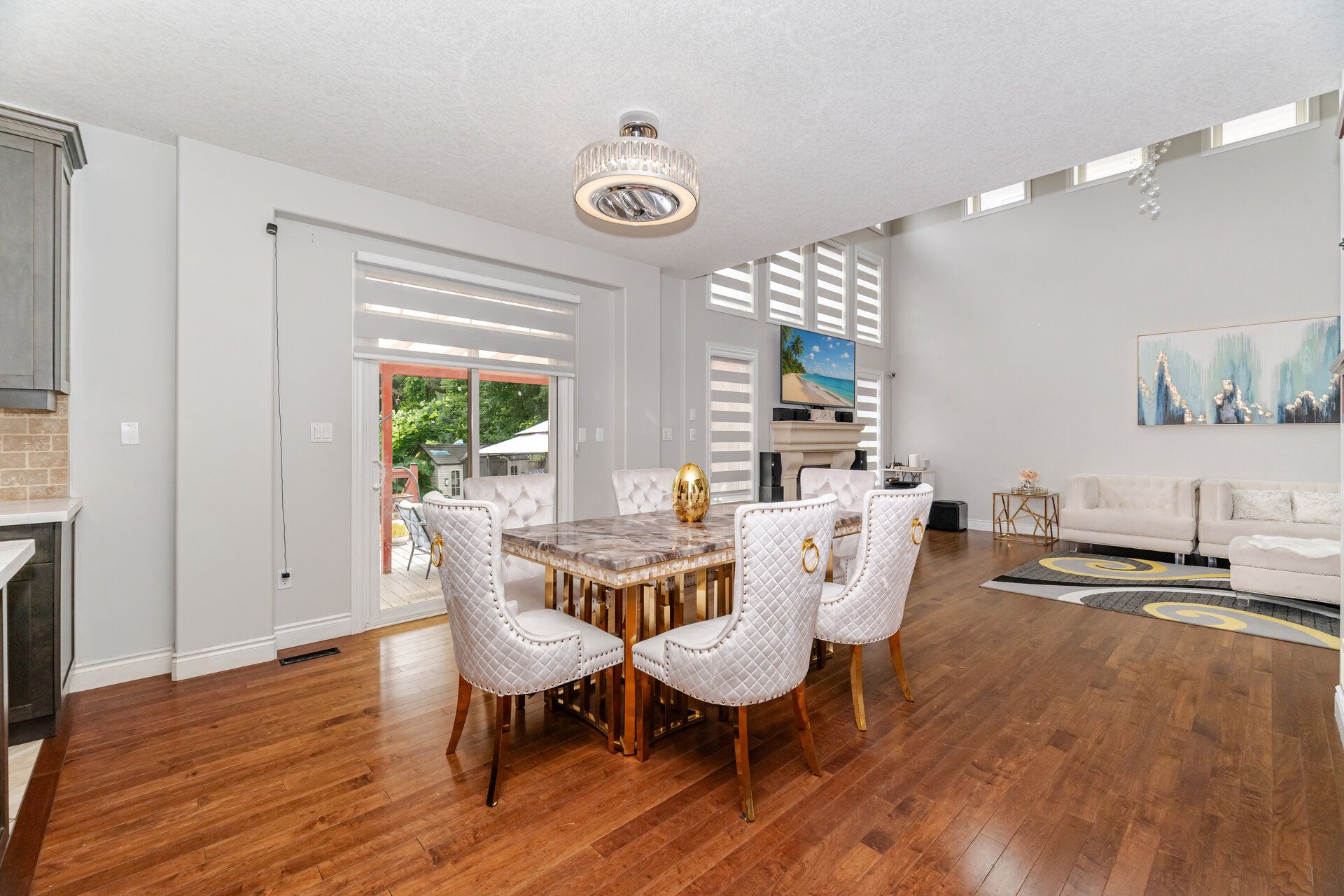Located in londons highly sought-after and quiet upland neighbourhood, this beautifully built 4+3 bedroom detached home offers nearly 4,500 sq ft of total living space and is just minutes from masonville mall, western university, jack chambers school, and all essential amenities. Featuring a thoughtfully designed layout, the home showcases gleaming oak hardwood floors, crystal chandeliers, and a spacious kitchen with custom quartz countertops, a center island, ample cabinetry, and a walk-in pantry, along with a breakfast area that walks out to a beautifully landscaped, tree-lined backyard with a large uv-covered deck. The open-concept main level includes a dramatic 18-ft ceiling in the family room with floor-to-ceiling windows, a formal dining room perfect for entertaining, a den with cathedral ceilings, and a convenient main-floor laundry. Upstairs, the oversized primary suite offers cathedral ceilings and a luxurious ensuite with double vanity, soaker tub, and glass shower. The fully finished basement features 3 additional bedrooms, a second kitchen, expansive family and game rooms, an office/workshop, and a full bath ideal for guests, tenants, or in-laws. Recent upgrades include hardwood and ceramic vinyl flooring, granite countertops, new appliances, fresh paint, and egress windows, making this an exceptional home in one of londons best neighbourhoods.