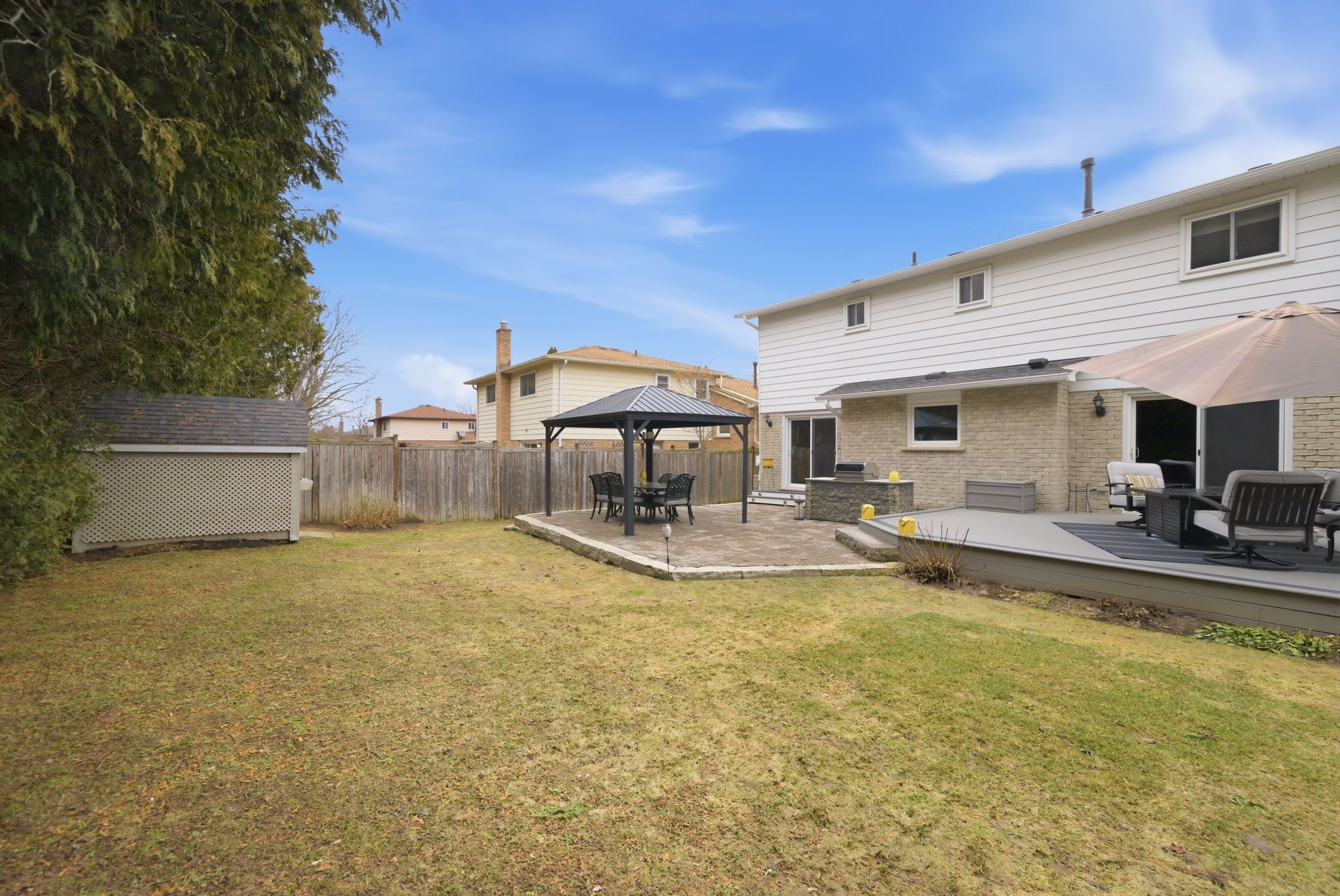 Well updated 4 bedroom, 2. 5 bathrooms, 2 storey home in established area of port perry backing to a wooded residential lot providing loads of privacy; bright airy custom updated kitchen with hardwood floors, quartz countertops, glass tile backsplash and centre island; spacious dining room open to living room - both with hardwood floors; walkout from dining to interlock patio; cozy main floor family room with gas fireplace/stacked stone surround(+/-2019) with walkout to composite maintenance free deck (+/-2023); large primary bedroom with updated(+/-2018) 3 piece ensuite with glass shower; renovated family washroom includes heated floor and recessed lighting(2024). Lower level complete with recreation room, home gym/ games room area with above grade windows. Neutral decor throughout. Backyard is configured allowing privacy to and from adjacent homes; barbecue area and plenty of space for entertaining; child safe walking distance to downtown, elementary and high schools, medical office building/hospital - no major roads to cross. This home demonstrates a pride of ownership throughout and is a perfect place to call home in port perry. Economical living with nothing to do but move in. Roof shingles (+/- 2012), new eavestrough, downspouts & leaf covers(+/-2021) gas furnace +/- 2023; updated vinyl thermal windows/door systems