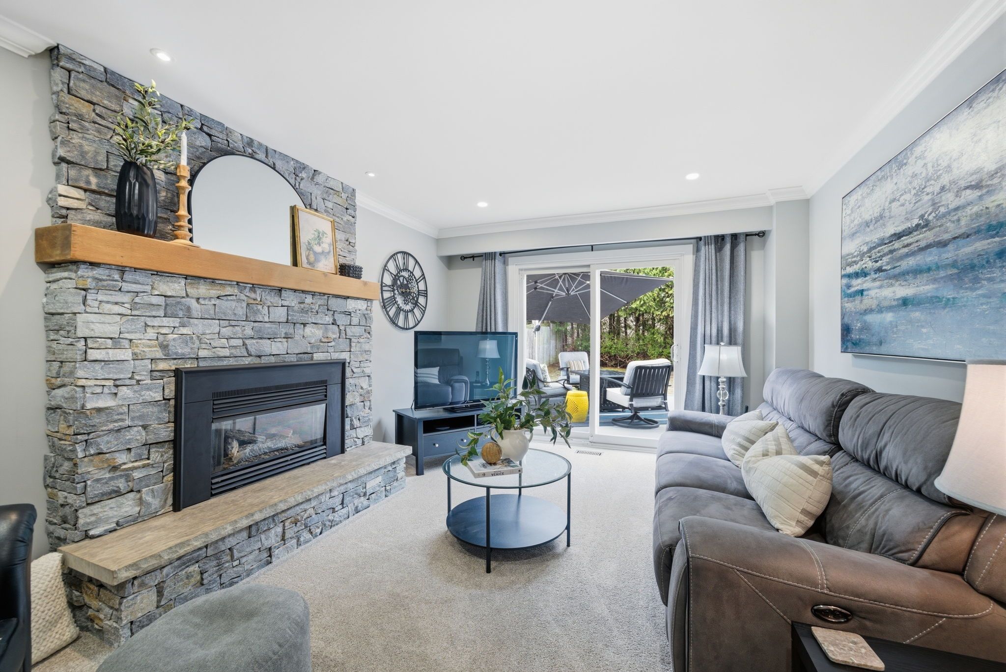 • Cozy family room with gas fireplace and deck access.