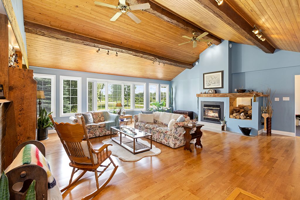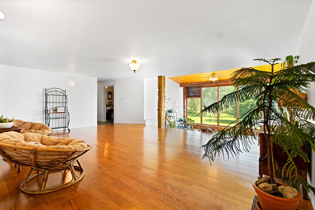 Escape to your own private sanctuary. This beautiful 4-bedroom, 3 bathroom bungaloft rests on 150 acres of land complete with barn. It perfectly blends rustic charm with modern comfort and offerhis endless opportunities for outdoor adventures and peaceful living. This unique bungaloft design features ample space for family and guests offering over 3500 sq ft of finished living space. The main floor boasts a family room with soaring vaulted, beamed ceilings, a cozy wood burning fireplace, and expansive windows that invite natural light. Theres an eat in kitchen, an oversized living & dining area, a huge solarium, 3 bedrooms, 2 bathrooms and a laundry room but wait, theres more. The upper-level primary suite is a private retreat, complete with a unique ensuite (requires completion) a w/i closet, and a walk-out deck for enjoying your morning coffee or stargazing at night. Hardwood floors, in-floor zoned heating, and walk-in closets in all the bedrooms add to the comfort and functionality of the home. Need more room? The unfinished basement with a walk-up entrance offers potential for an in-law suite or secondary dwelling. Explore your very own network of trails for hiking, atv riding, snowmobiling, and horseback riding. With lush hardwood forests, a tranquil creek for fishing, and open spaces for hunting, the recreational possibilities are endless. Spend warm evenings on the spacious deck, complete with 2 ornamental ponds, waterfalls, a beautiful gazebo all surrounded by gorgeous perennial gardens. Located just minutes from orangeville and shelburne where all of your amenities are accessible yet tucked away for ultimate privacy and tranquility. Nature, hobby farm, gardens... Just imagine! Endless possibilities.