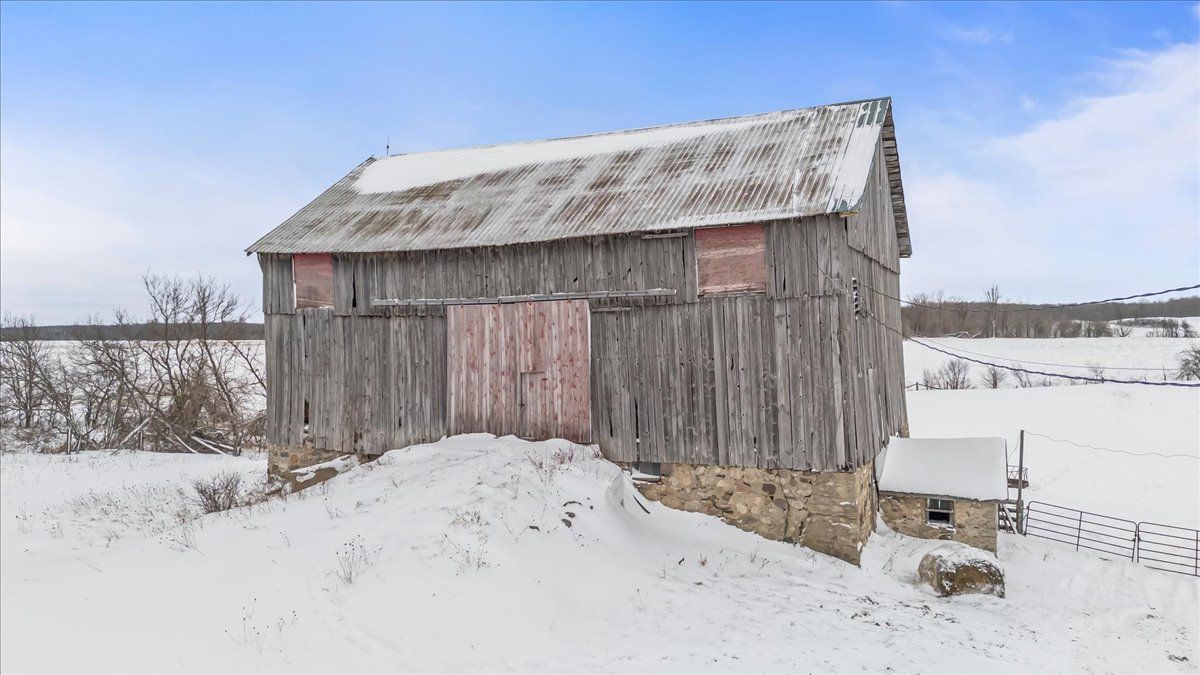 Just over 100 acres only 15 minutes from collingwood, offering a quiet rural setting with plenty of space to spread out. The property includes approximately 60 to 65 workable acres, 5 acres of pasture, and 25 acres of excellent hardwood bush, creating a mix of open land, privacy, and natural beauty. The soils are a combination of listowel silt loam and osprey loam, both known for good drainage, strong nutrient holding capacity, and suitability for crops. The home is a solid red brick two-storey built around 1900 with about 1,600 sq ft of living space. It features five bedrooms, a 3 piece main floor bathroom, and a 3 piece ensuite on the second floor, along with original hardwood floors, older windows, a metal roof, a covered front porch, and a back mudroom. The layout works well for families or anyone looking for a country home with character. The stone foundation with poured foundation addition is in good condition and the basement includes the laundry area, a cold room, and the forced air oil furnace with convenient exterior access. Outbuildings include a 20' x 20' garage with a concrete floor, a 30' x 60' drive shed with two large doors and a dirt floor, and a traditional bank barn with water. This is an excellent farm with a practical and workable setup, and it also offers the space, and charm that appeal to residential buyers looking for a rural lifestyle with room to grow.