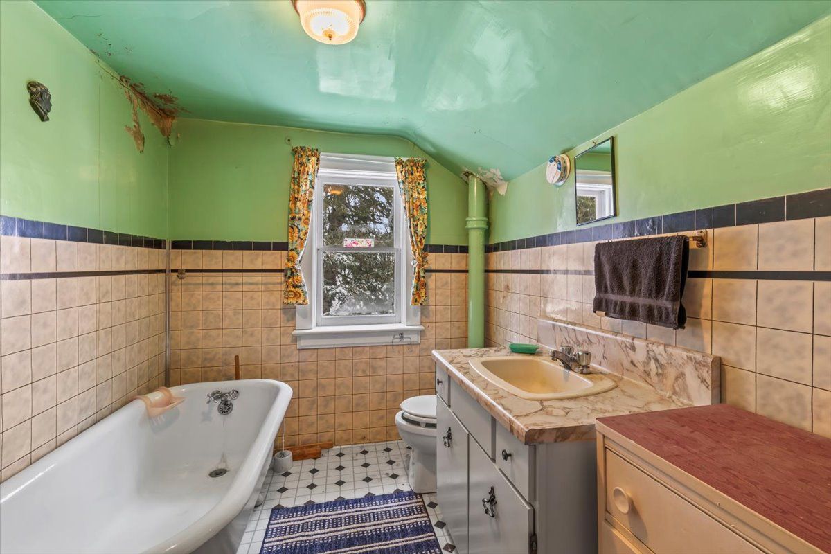 • Solid red brick farmhouse with five bedrooms and original hardwood floors.
