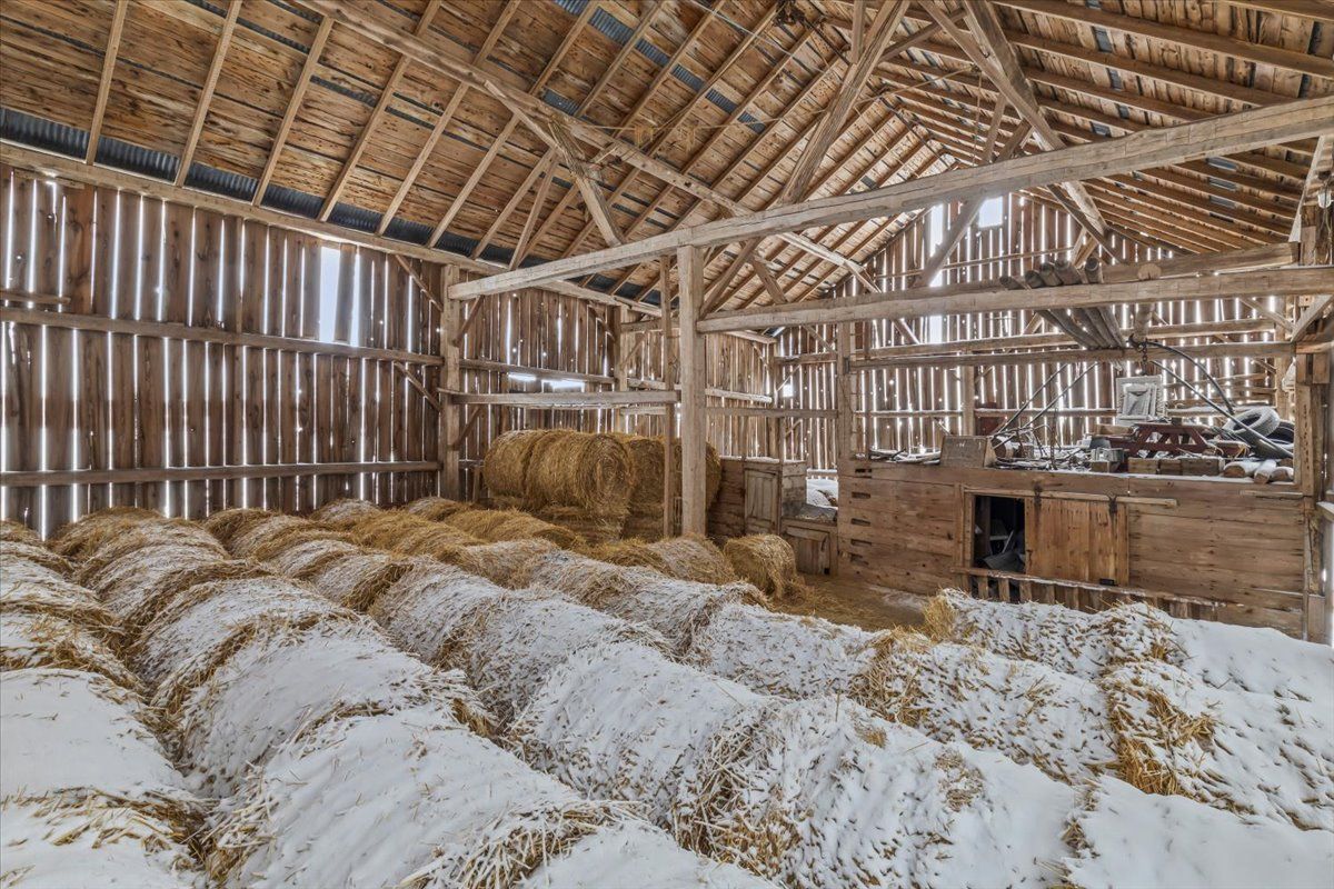 Just over 100 acres only 15 minutes from collingwood, offering approximately 60 to 65 workable acres, 5 acres of pasture, and 25 acres of excellent hardwood bush, with the balance made up of the home and outbuildings. The workable land is a combination of listowel silt loam and osprey loam soils, both known for good drainage, strong nutrient holding capacity, and suitability for crops. The house is a solid red brick two-storey built around 1900 with about 1,600 sq ft of living space and features five bedrooms, a 3 piece main floor bathroom, and a 3 piece ensuite on the second floor, along with original hardwood floors, older windows, a metal roof, a covered front porch, and a back mudroom. The stone foundation with poured foundation addition is in good condition and the basement includes the laundry area, a cold room, and the forced air oil furnace with convenient exterior access. Outbuildings include a 20' x 20' garage with a concrete floor, a 30' x 60' drive shed with two large doors and a dirt floor, and a traditional bank barn with water. This is an excellent farm with a practical and workable setup, quality loam soils, useful buildings, and a farmhouse ready for its next chapter.