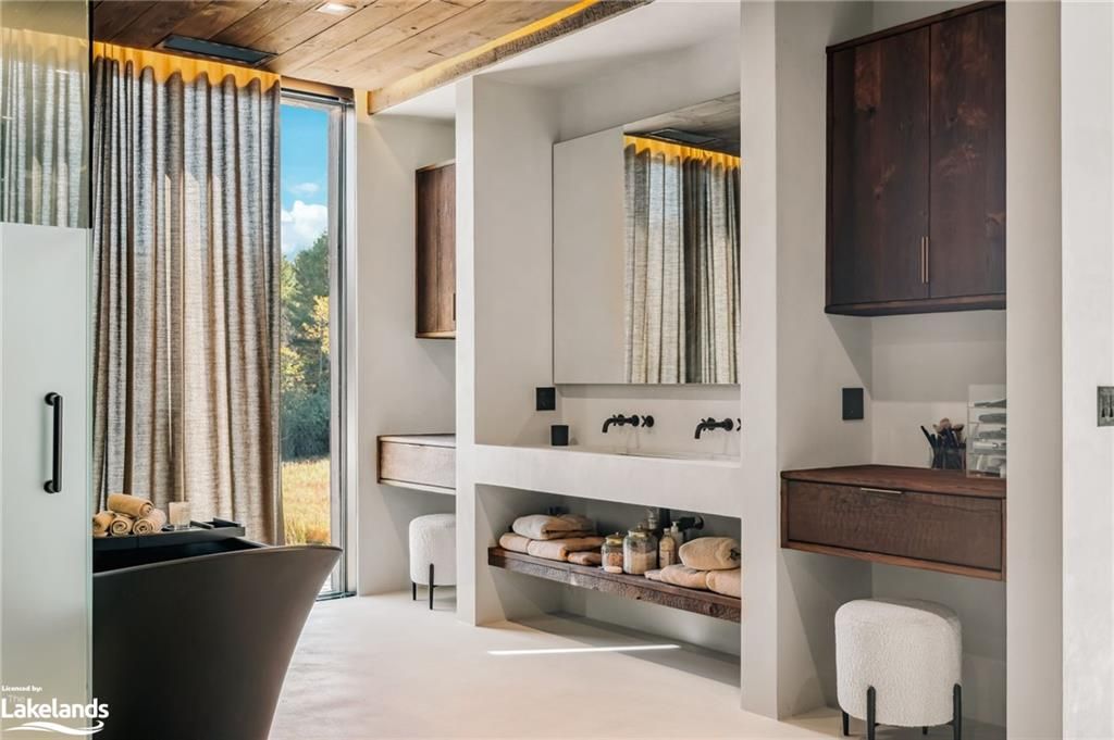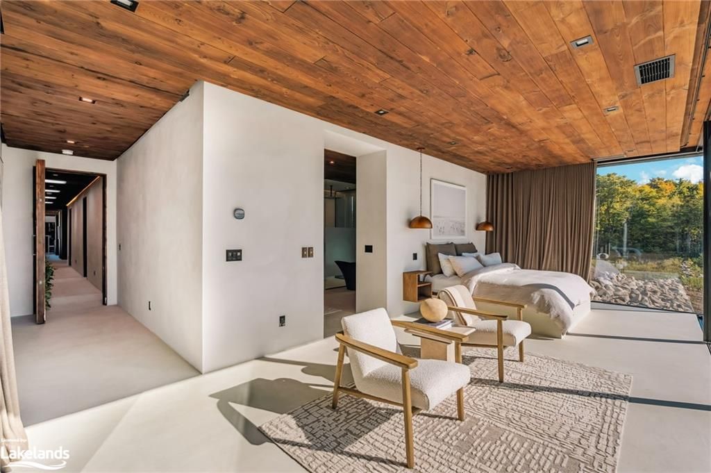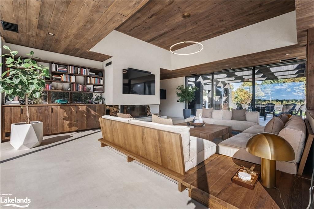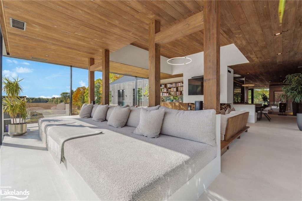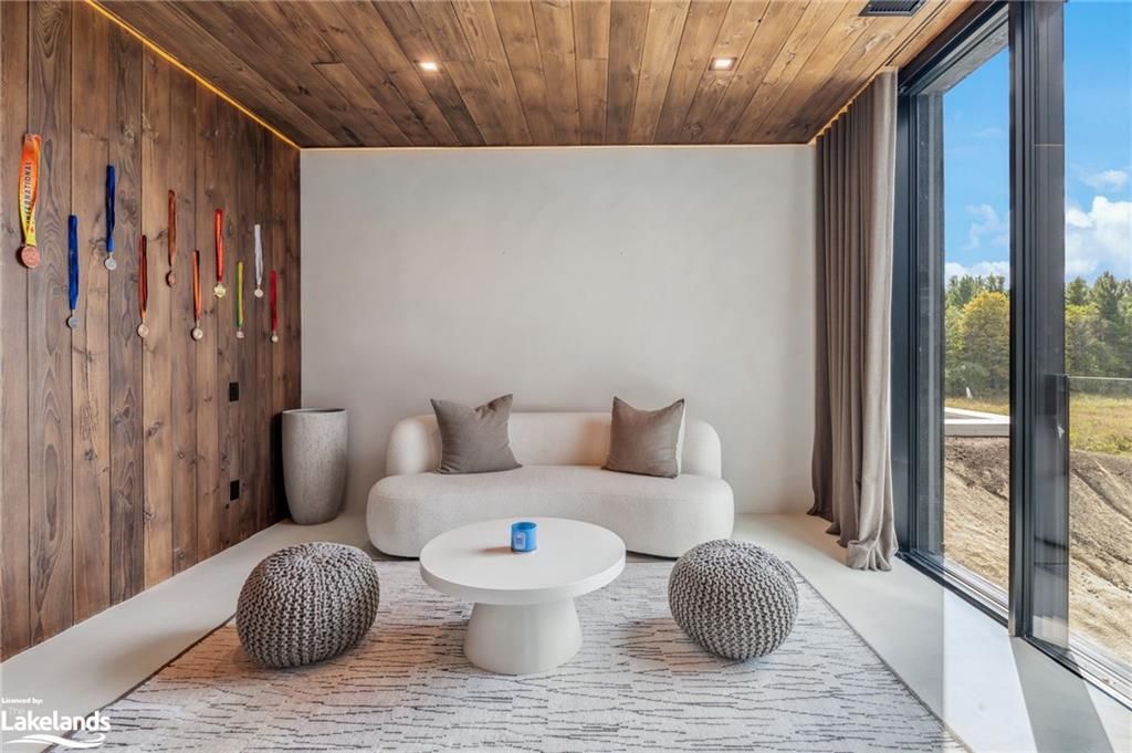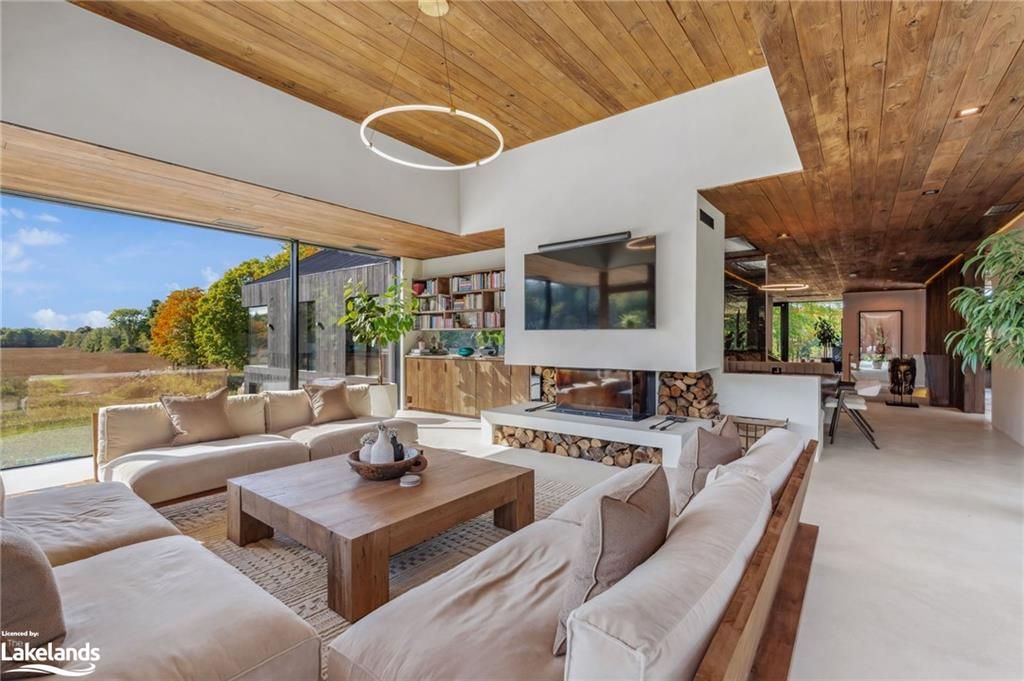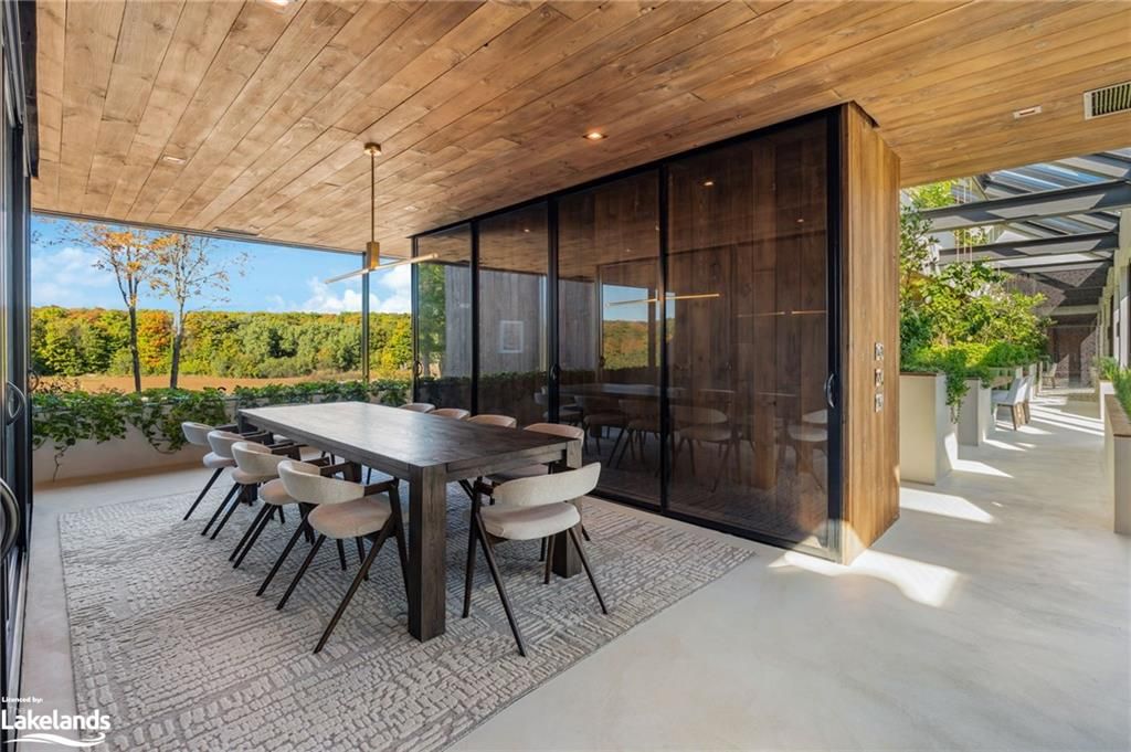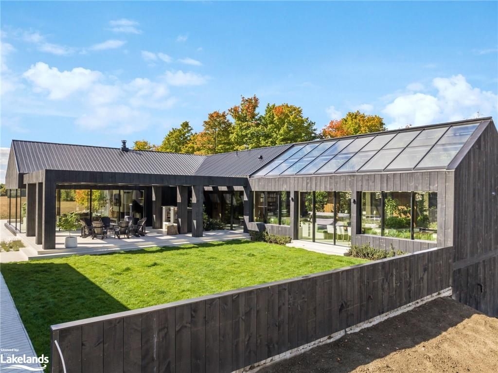Welcome to pearson's pastures, a 99-acre estate surrounded by managed forests & open fields just 10 mins from collingwood & 5 mins from osler bluff ski club. Striking exterior contrasts with natural landscape, while floor-to-ceiling windows flood home with light & offer breathtaking views. Designed by an expert in energy-efficient living, this sanctuary blends sustainability with elegance. Italian-imported micro-cement floors & shou sugi ban wood accents throughout. The 10,590 sq. Ft. Main residence is divided into three wings. In theeast wing, culinary excellence awaits with dual kitchensone for entertaining & the chefs prep kitchen. A lofted indoor garden above eating area with two banquettes creates an exotic, tropical ambiance. Dining room for wine collectors. Central wing living space, the cube, offers 360-degree views, with a cozy fireplace & a reading bench for quiet moments. The west wing, private quarters offer serene retreats. Three king-sized bedrooms, each with juliet balconies & ensuite baths, provide personal havens. The primary suite, with a 270-degree view, features a luxurious ensuite with a soaking tub, walk-in shower, & custom-designed furniture. The lower level offers a world of entertainment & relaxation, featuring a games room, home theatre, office & a private gym. For guests, 4 additional bedrooms, each with their own ensuite, provides ample space & privacy, making it ideal for extended stays. Outside, the luxuriously designed outdoor space invites you to indulge in the sun-soaked, pool & hot tub. Adjacent courtyard, perfect for hosting gatherings, features a high-end outdoor kitchen, creating the ultimate setting for al fresco dining & entertaining under the stars. 1 km of private trails, & 2 ponds enhance the outdoor experience. Every detail of this estate offers unparalleled sustainability, luxury & a deep connection to nature.