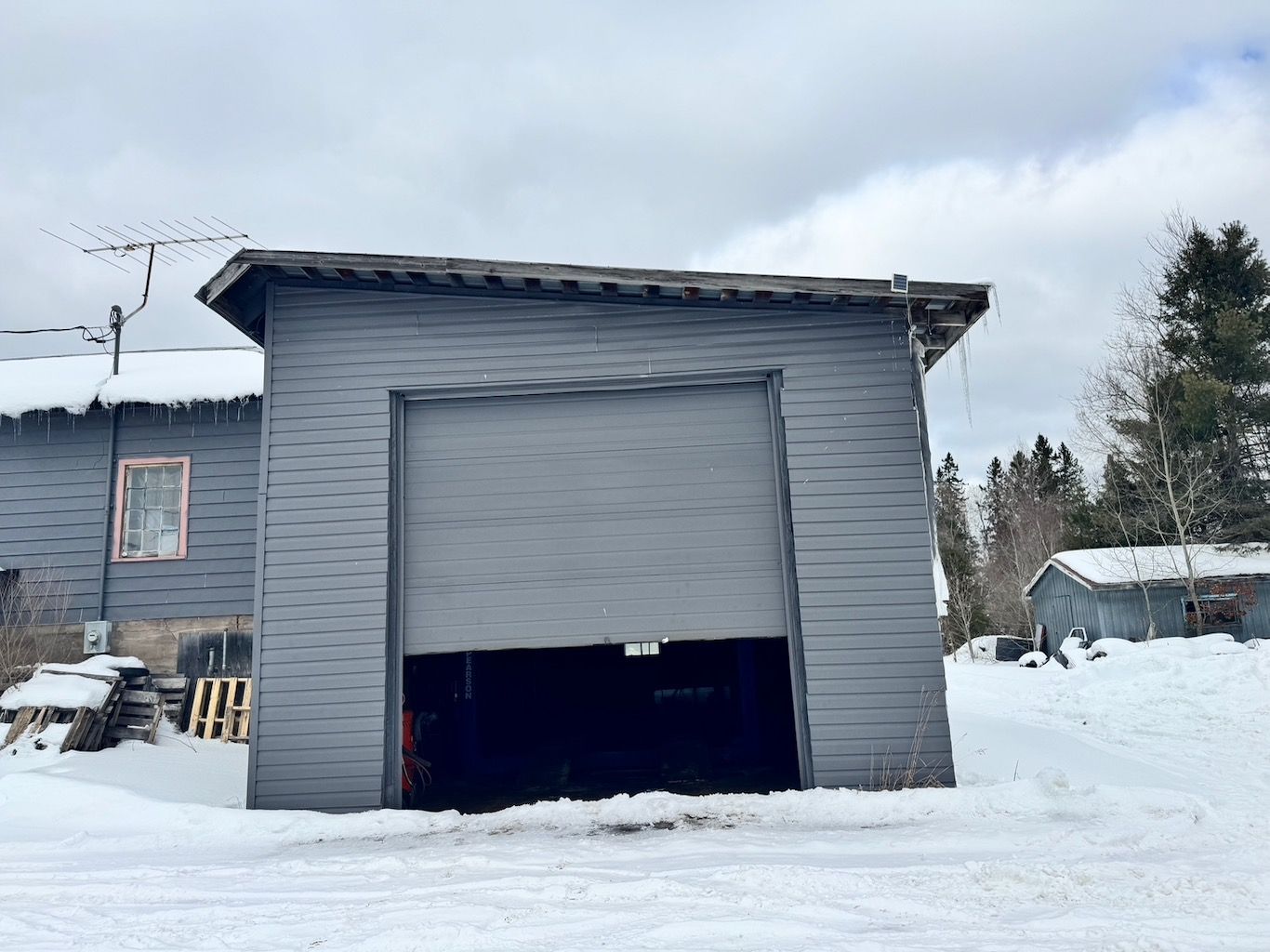 A rare opportunity to own and operate your own commercial property in the bustling town of palmer rapids! This highway commercial zoned property offers approximately 2,700 sq ft of versatile space, ideal for a mechanic shop, body shop, heavy equipment service, or a variety of other commercial uses. The main double-door bay is equipped with a bendpak lift (12,000 lb capacity) and a stenh0j ds 2 m & e lift (6,000 lb capacity). The rear bay, ideal for larger vehicles, includes a ben pearson lift with an impressive 33,000 lb capacity. A pitboss air compressor is installed with airline connections running throughout the shop for efficiency and ease of operation. The property features a newly installed well pump system & hot water on demand, refurbished clean energy furnace, plus separate heat and a/c for backup and summer cooling. Shingles were replaced in 2023, and the metal roof has been tightened and repainted. Inside, you'll find a welcoming office space and client waiting area, along with a 780 sq ft storage area off the rear bay. Additional detached storage buildings provide even more flexibility. The large fenced side and rear yard offer ample space for vehicles, equipment, and outdoor storage. Currently operating as a rustproofing, detailing, metal fabrication, this is the only property of its kind in the area - positioned next to a grocery store, liquor store, and beer store for strong local traffic exposure. An exceptional opportunity to grow your business or invest in a high-demand commercial space in palmer rapids. Selling the property as is, business not included.