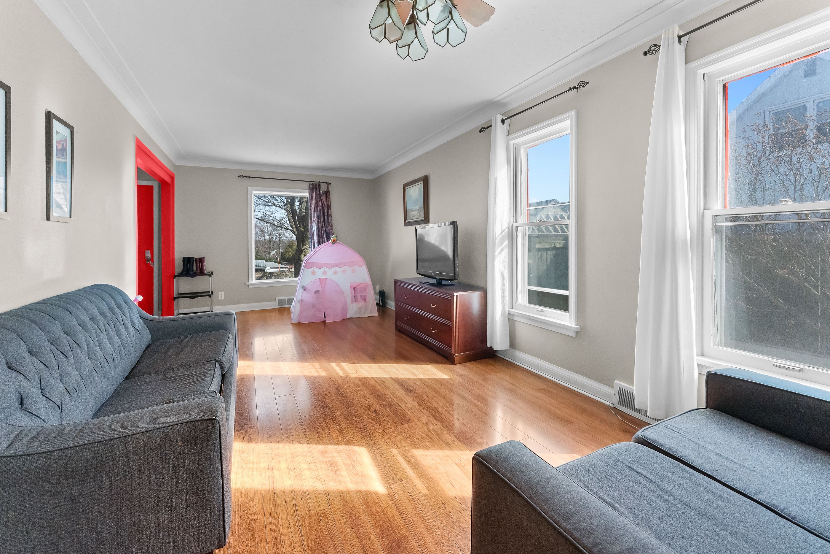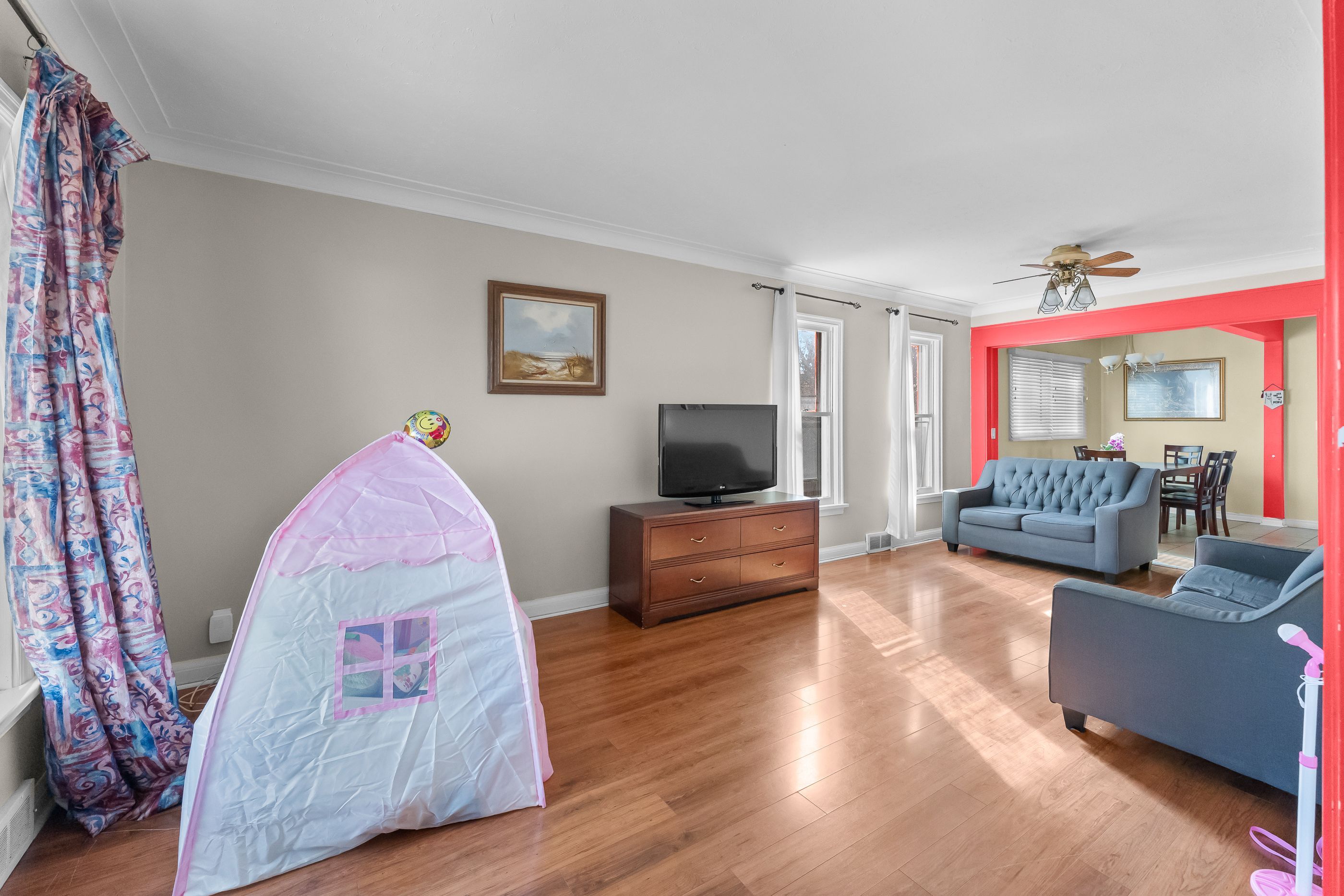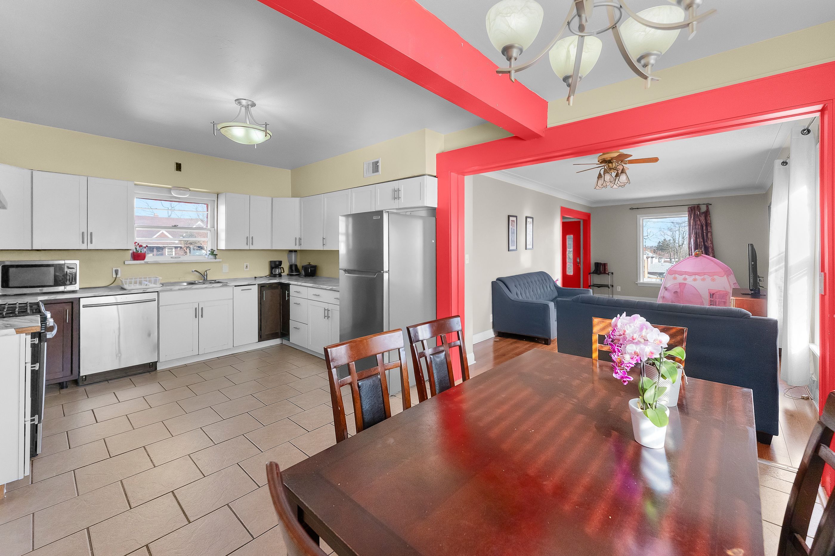 • Bright living room and family room perfect for entertaining.