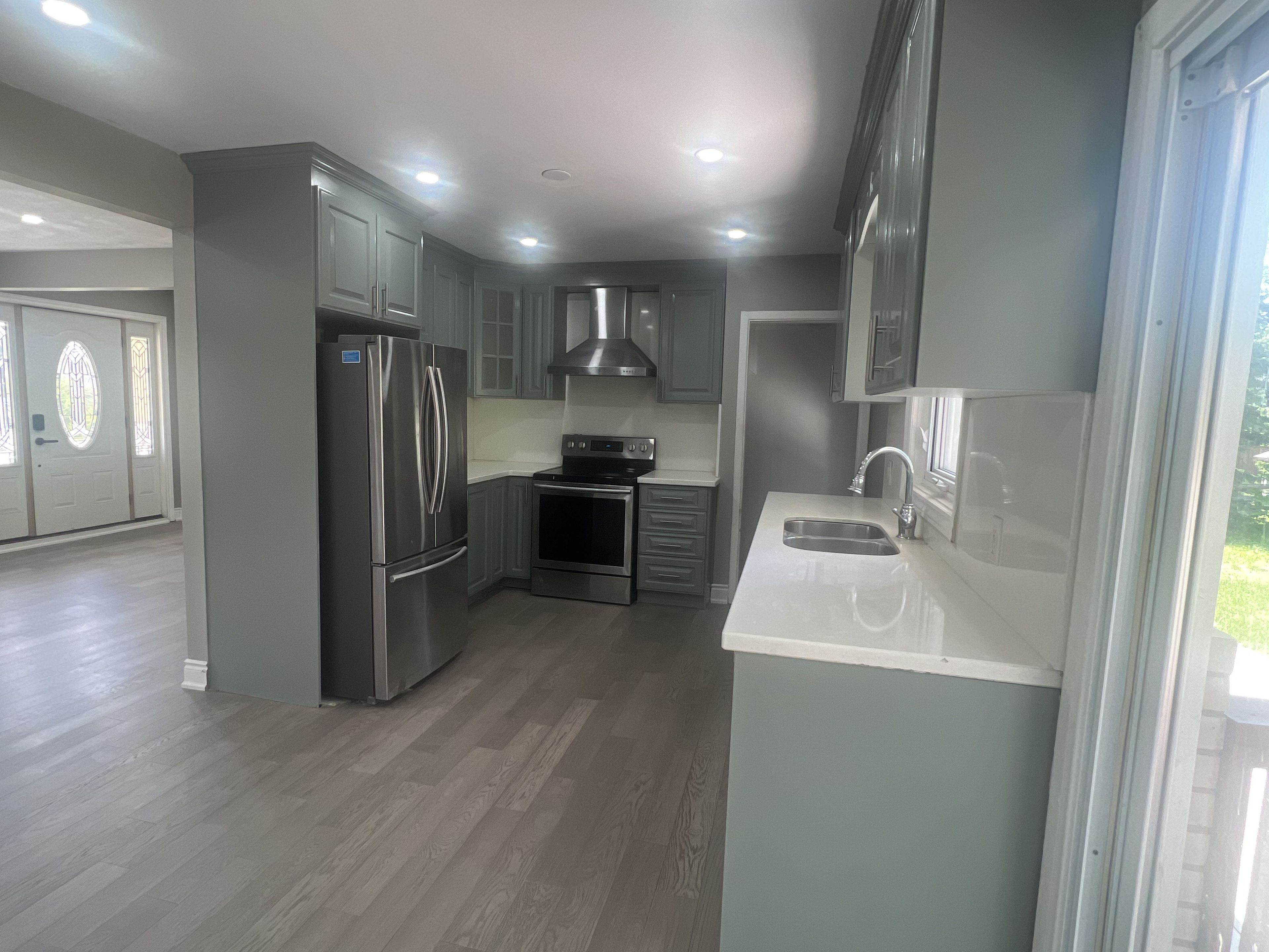 • Completely renovated with new hardwood floors and a modern kitchen.