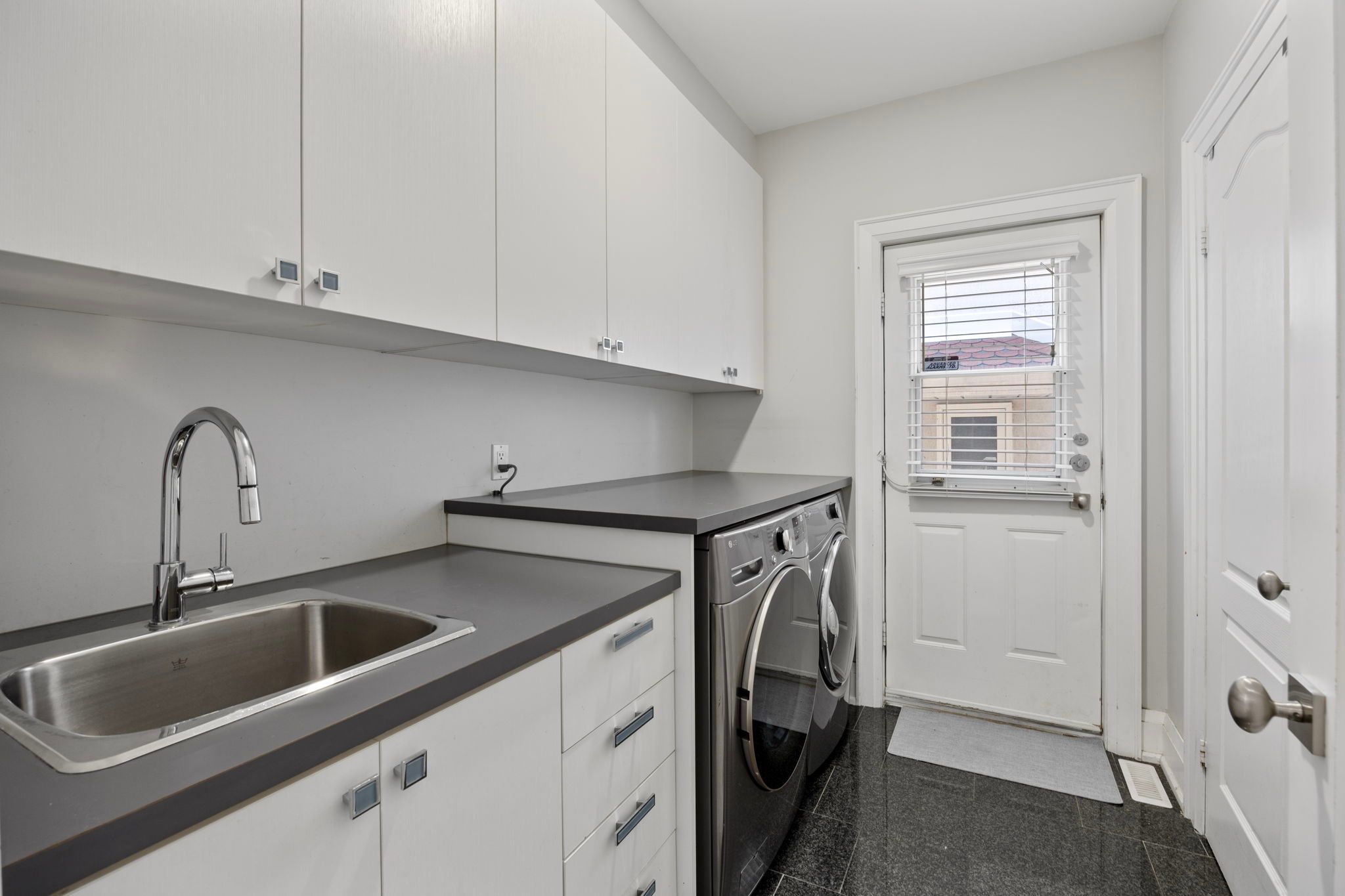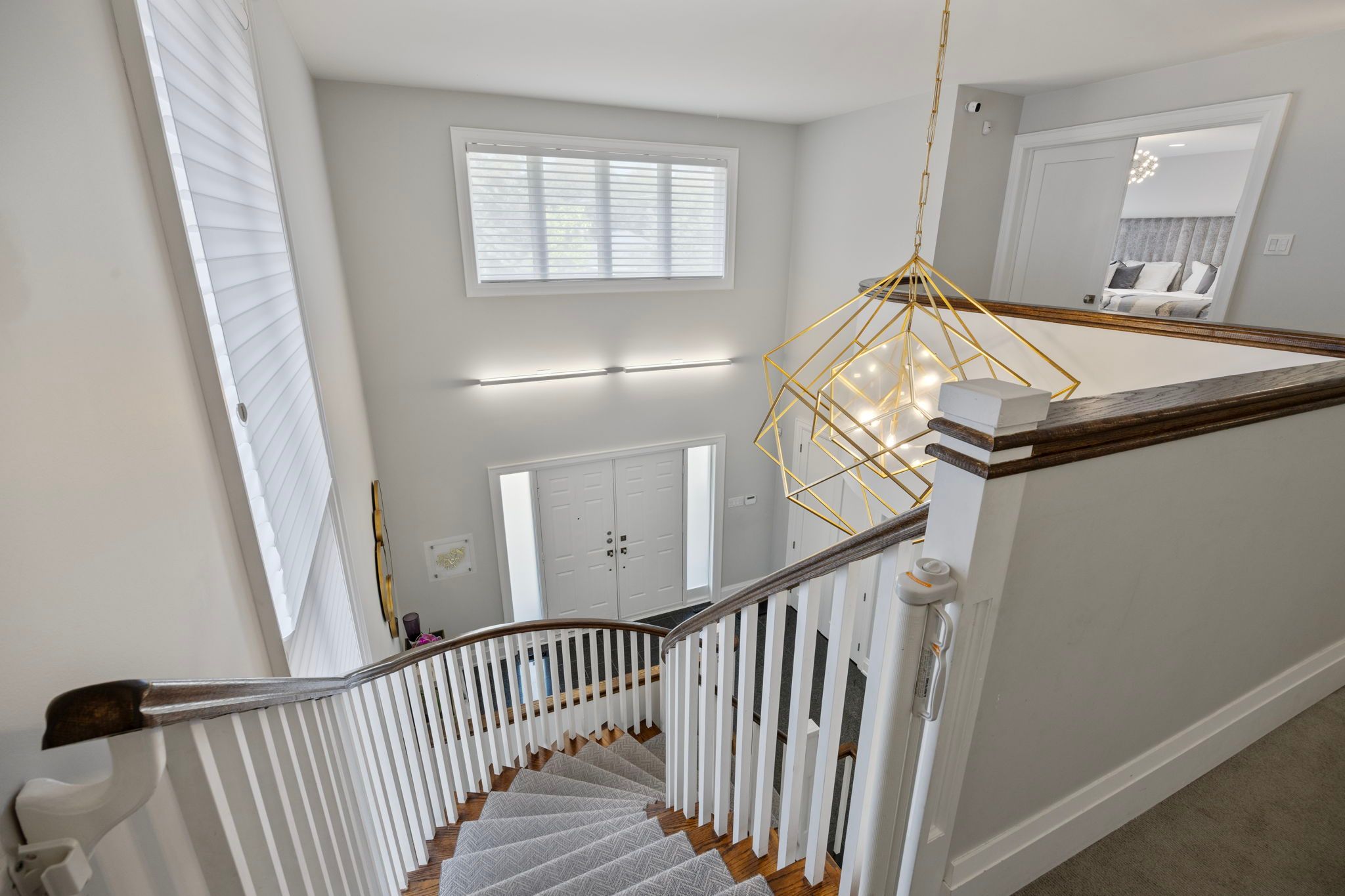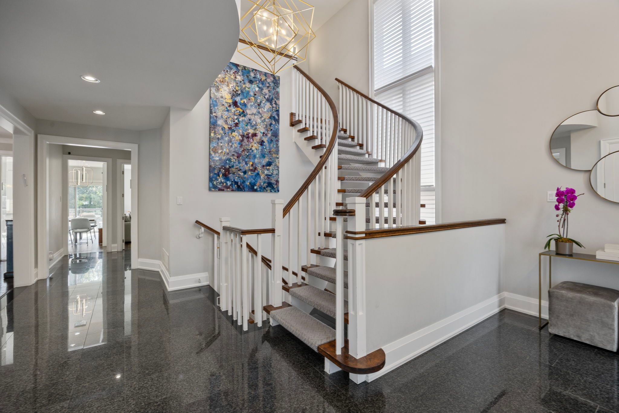 • Inviting two-storey foyer with granite floor and circular staircase.